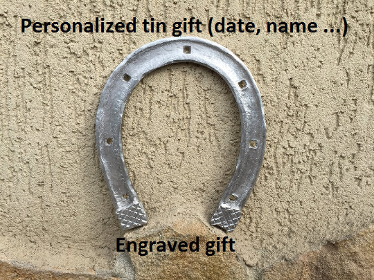 Here is a nice aluminium hand forged horseshoe. A nice present for a wedding, 10th wedding anniversary (aluminium/tin anniversary), for expressing love, for engagement, Valentine's Day and for many other gifting occasions!