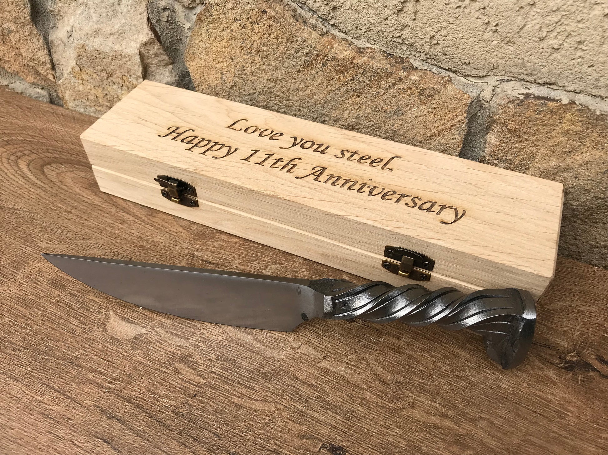 11th anniversary, railroad spike knife, iron anniversary, 11 year anniversary, forged in fire, dagger, present for him, railroad spike dagger