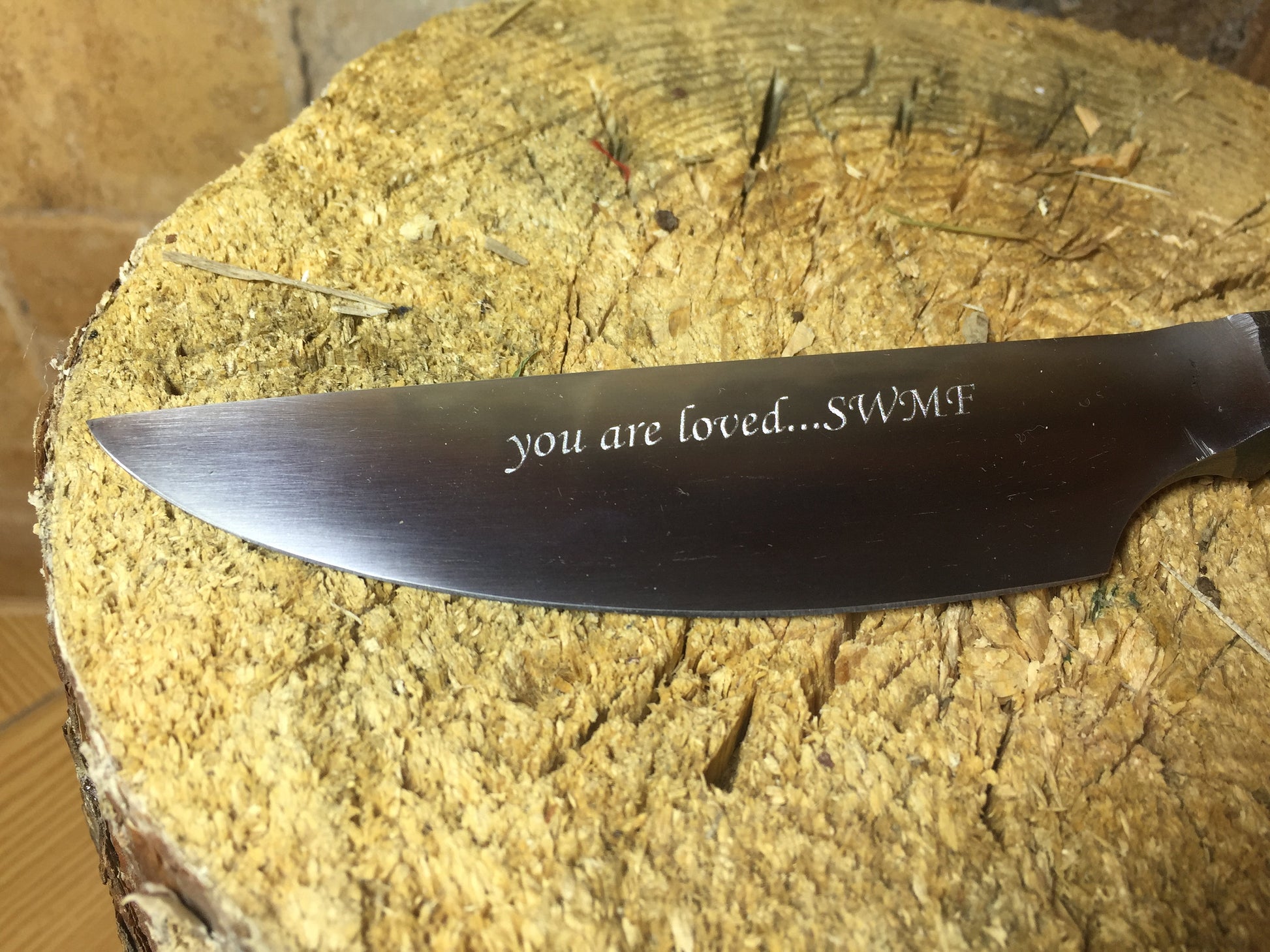 A knife can be engraved with a name/date on its blade (it will cost additionally 15 Euro).