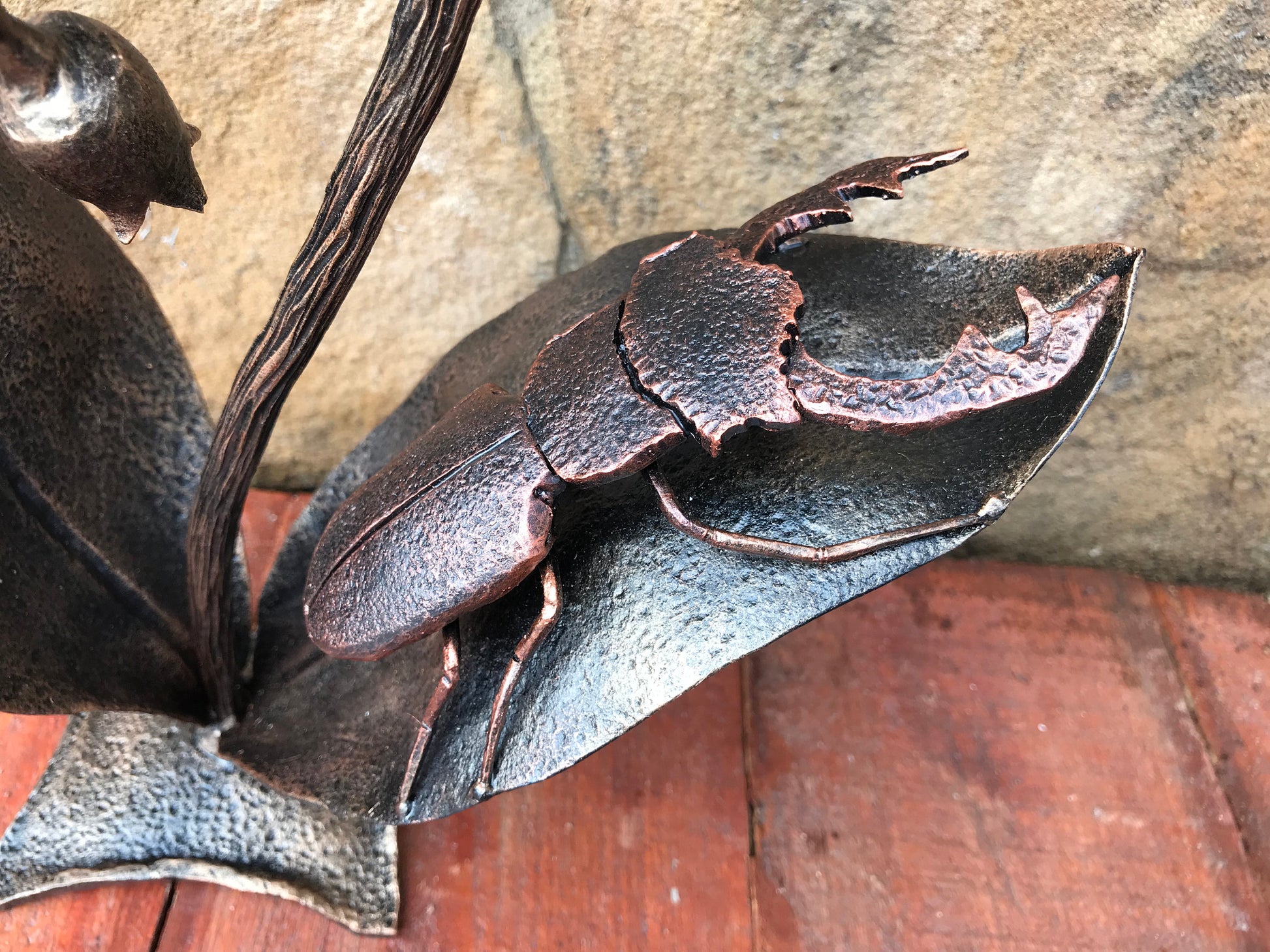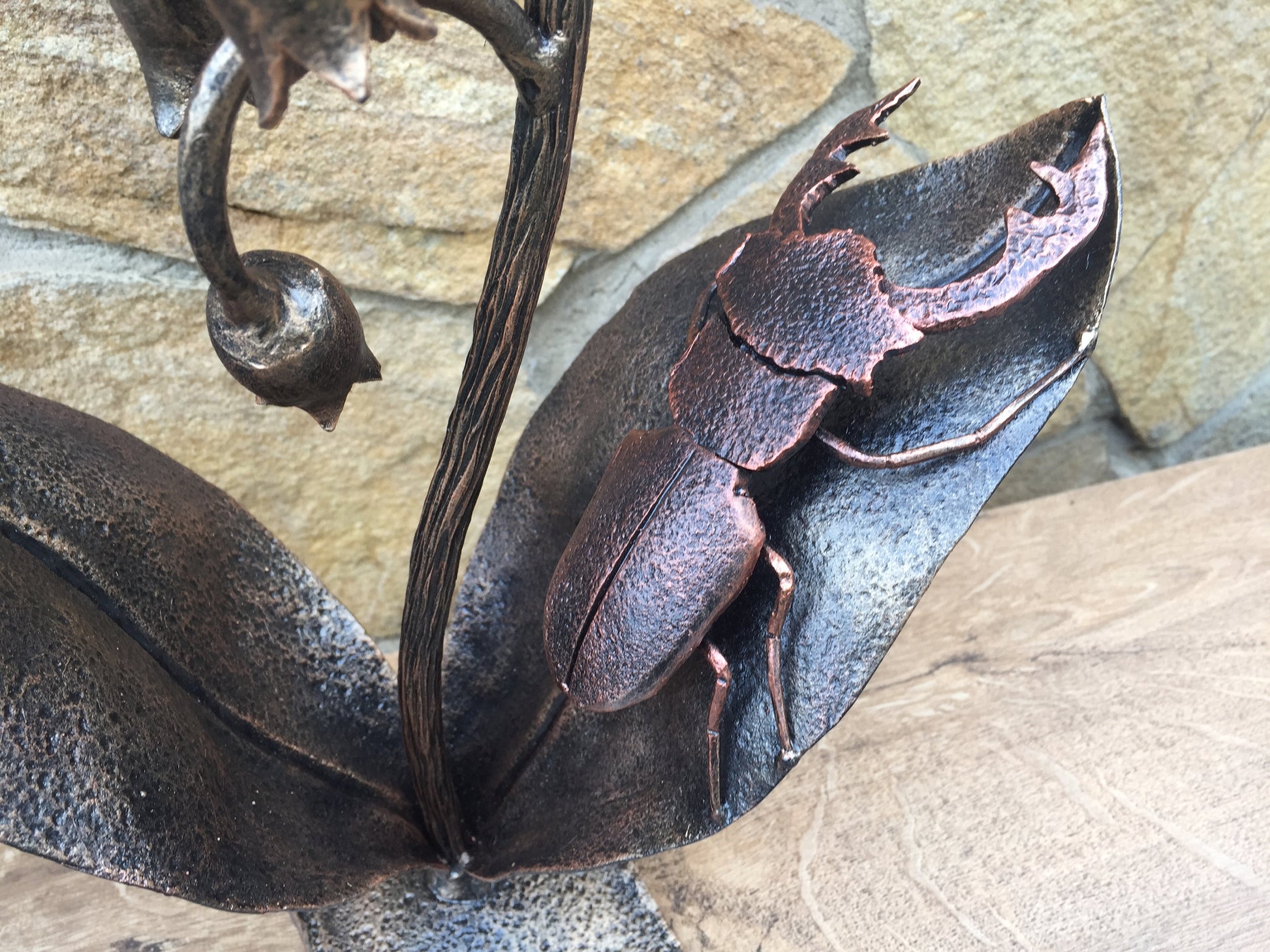 Colour: black painted and patinated (flowers - bronze patina, a beetle - copper patina). Very nice colours!