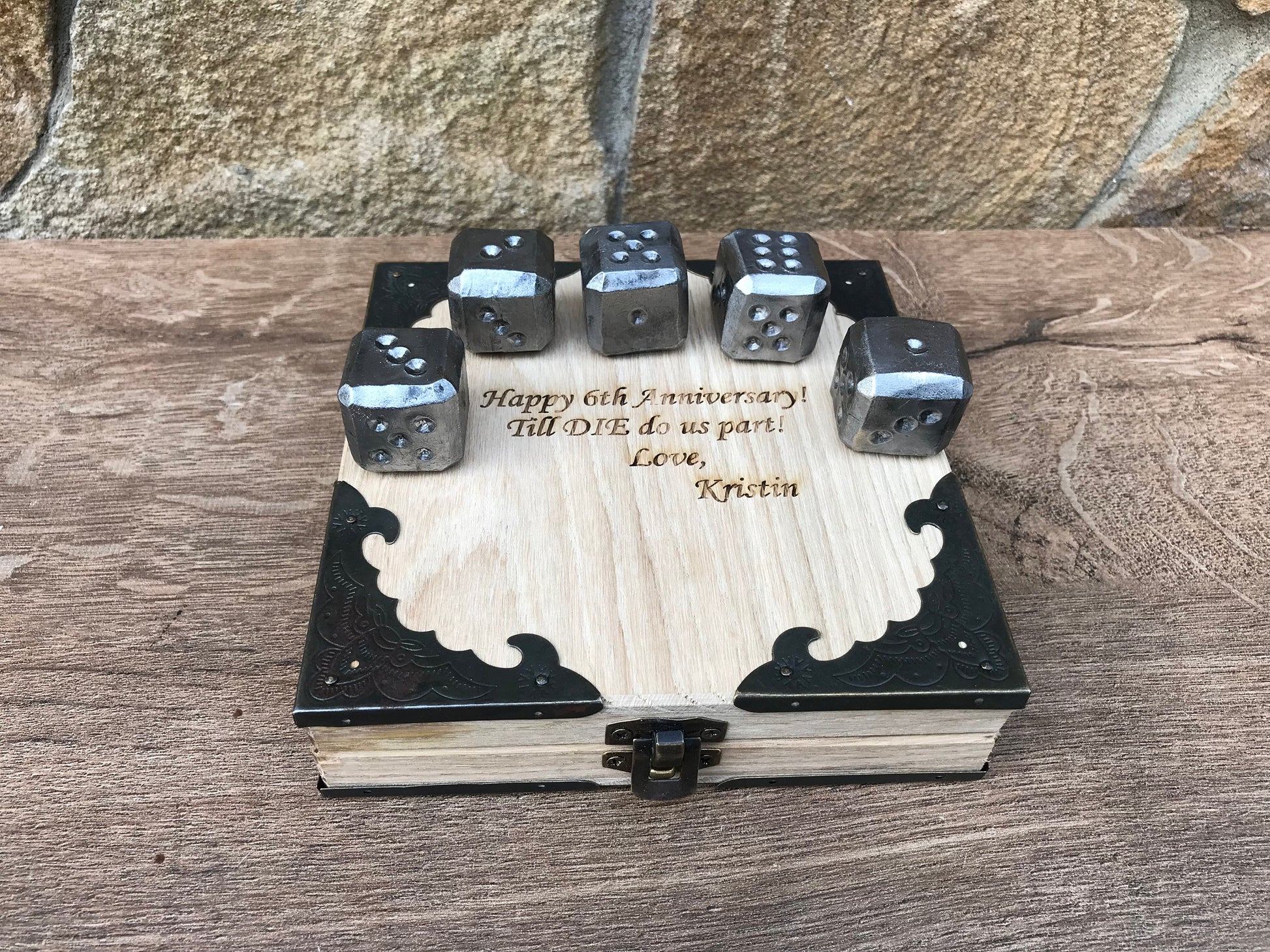 6th anniversary, iron anniversary, iron dices, iron gift, tabletop game, yahtzee, yardzee, iron wedding, iron anniversary gift, dices,gaming