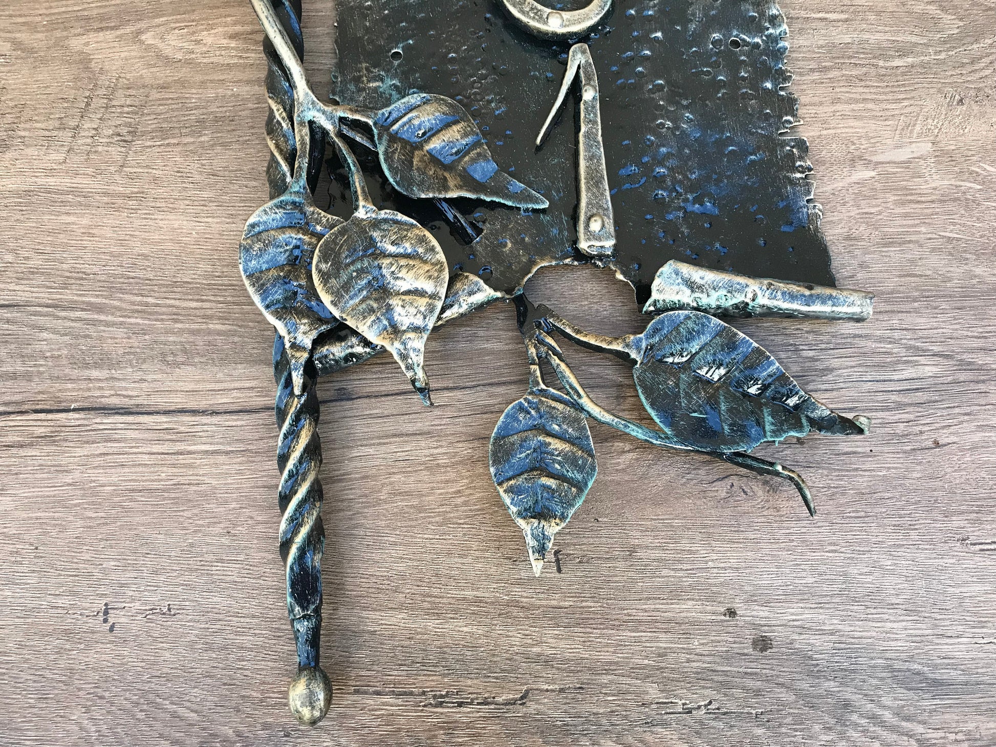 The way how it was created: we combine traditional blacksmith techniques, perfected over hundreds of years of experimentation and development, with modern forms and methods to produce beautifully distinct pieces of functional art. Each piece is forged at extremely high temperature and hammered by hand. Pliable when glowing hot, the iron is shaped into graceful, flowing forms. In our world of high technology, there is a distinct place for organic forms and hand-wrought metal design elements.