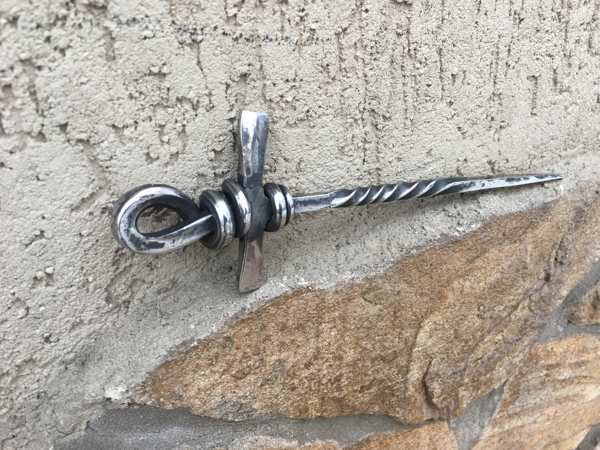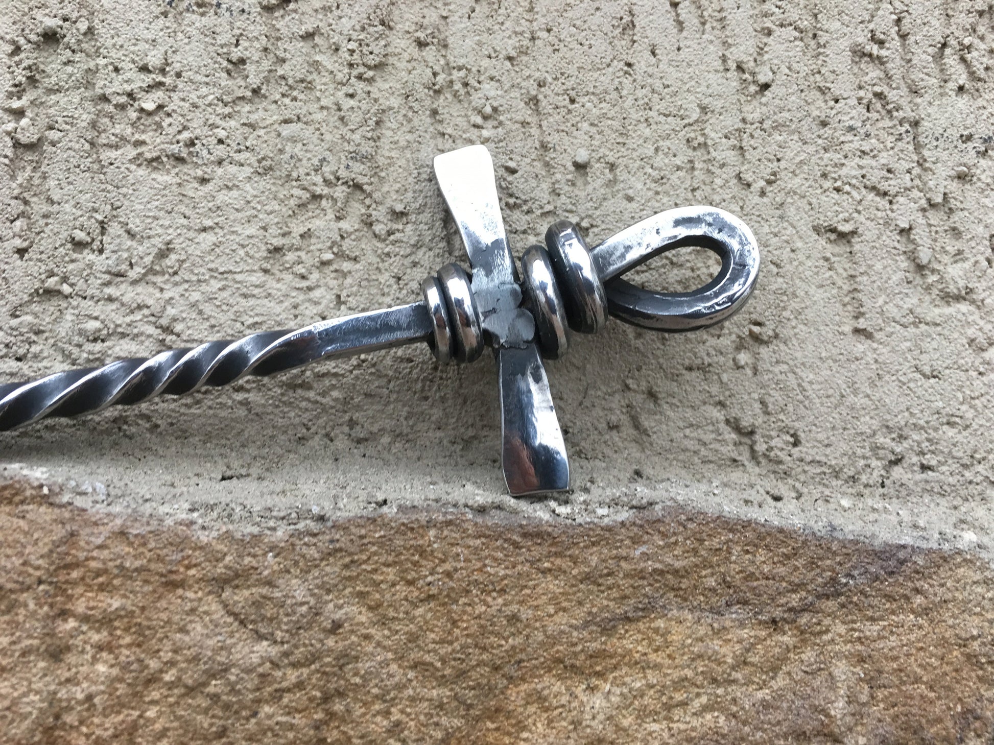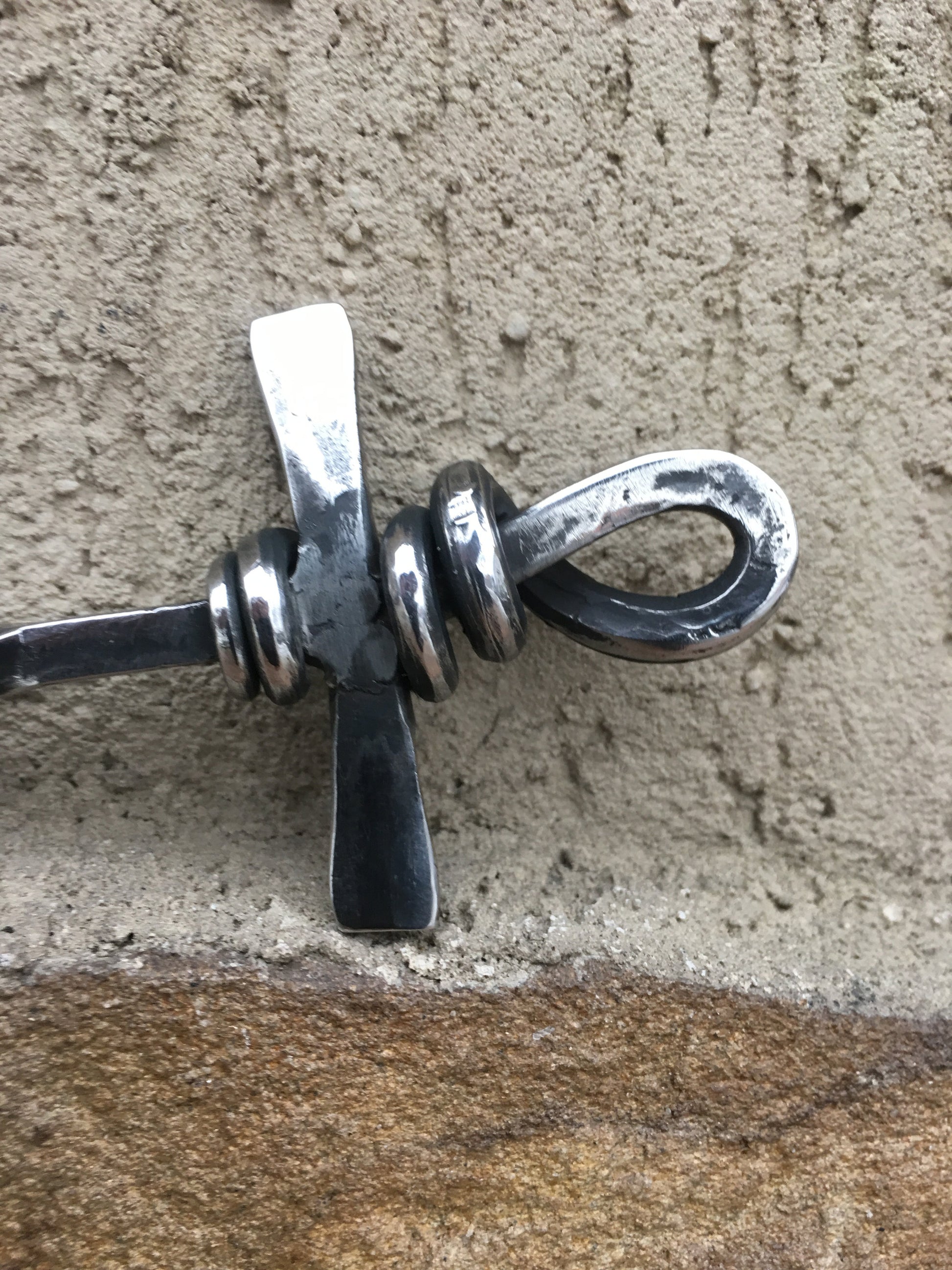 This ankh skewer is worked entirely by hand and made of stainless steel. It is a unique offer since it is made of stainless steel. Hand forged in stainless steel -- an elegant but rugged cutlery set, intended for use, while maintaining a pleasing aesthetic presence as well. These items are unique in form but universal in application, and will weather several generations of use. It will never rust! It is done from 100% stainless steel.