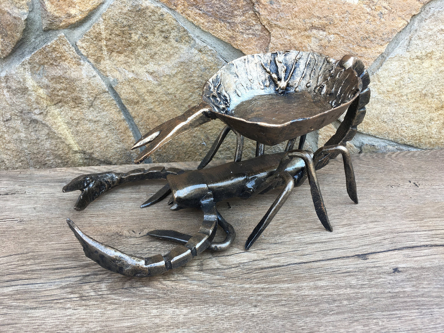 An ashtray can be not a usual ash tray but a masterpiece which decorates your house and outlines the features of your interior. Here is a hand forged ashtray in a style of a nice scorpion. It looks really like a real scorpion. A blacksmith handed over to this composition sharply the exact features of a real scorpion. The scorpion is very expressive with nice muscles made of steel.