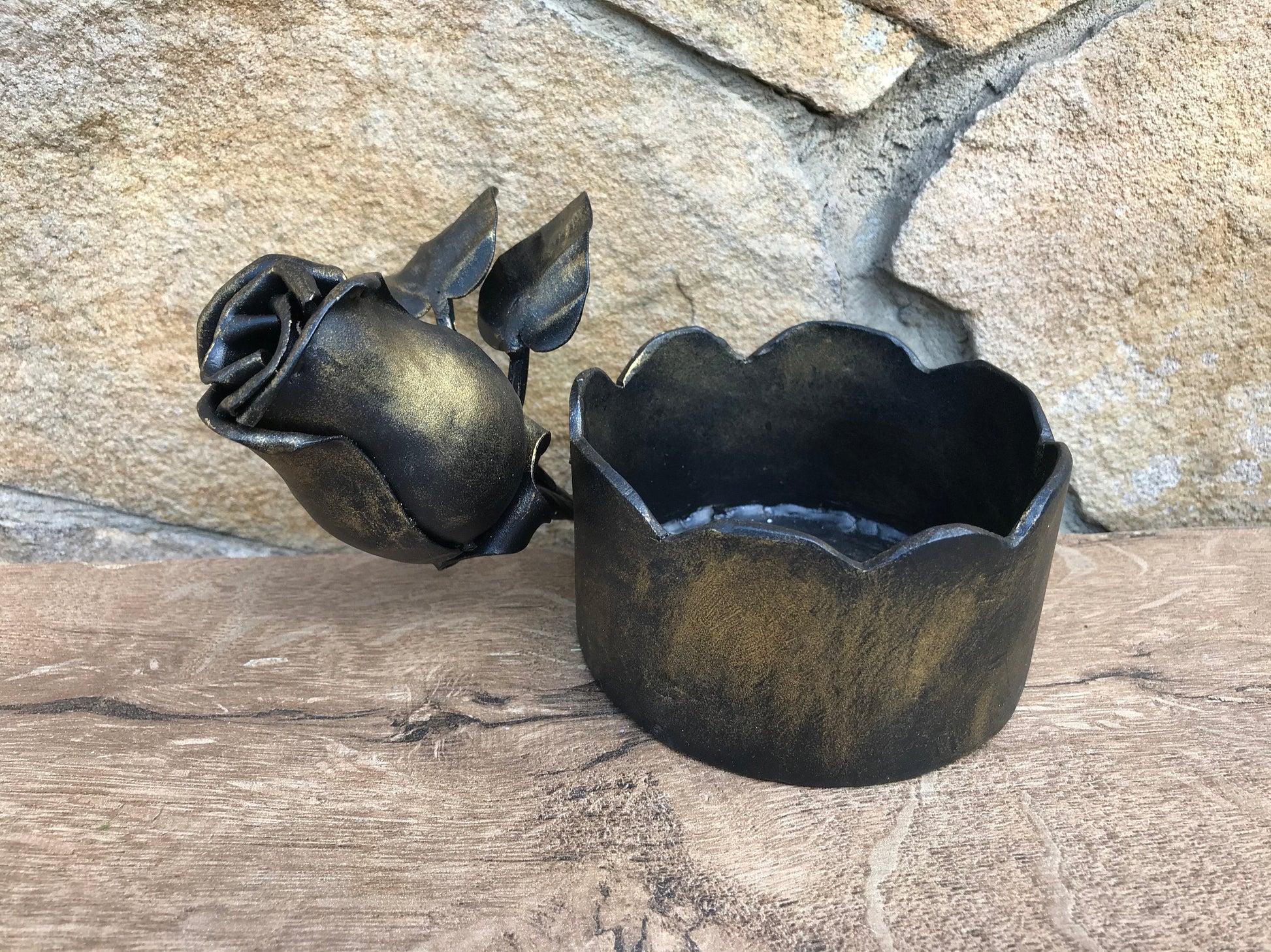 An ashtray can be not a usual tray but a masterpiece which decorates your house and outlines the features of your interior. Here is a forged ashtray with a rose.