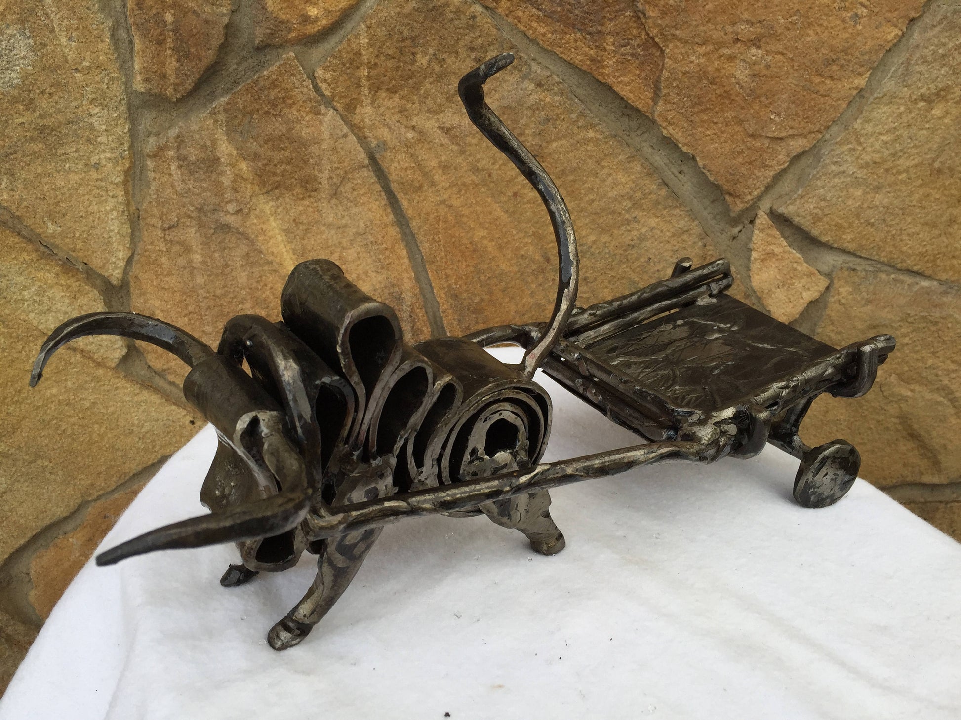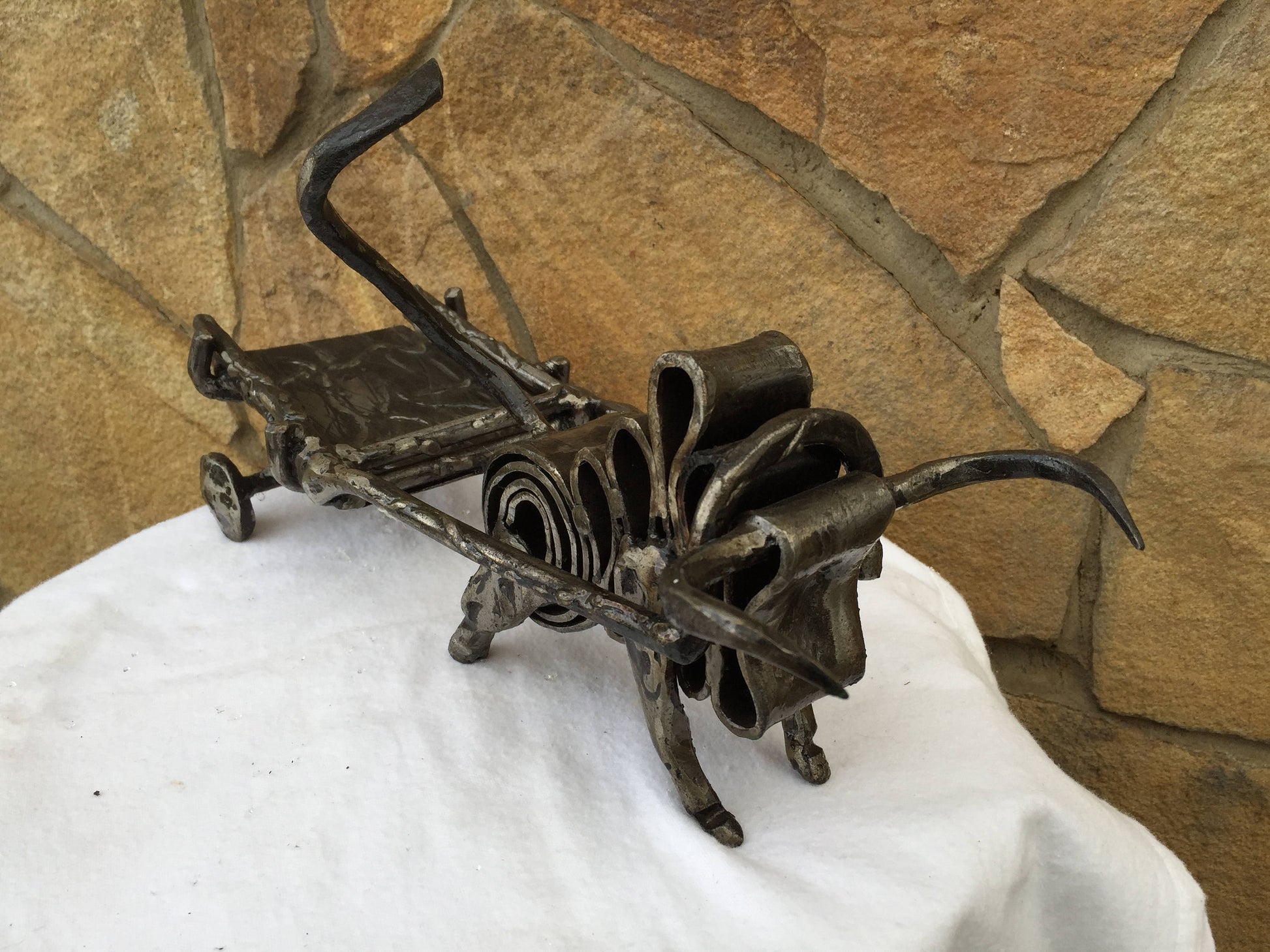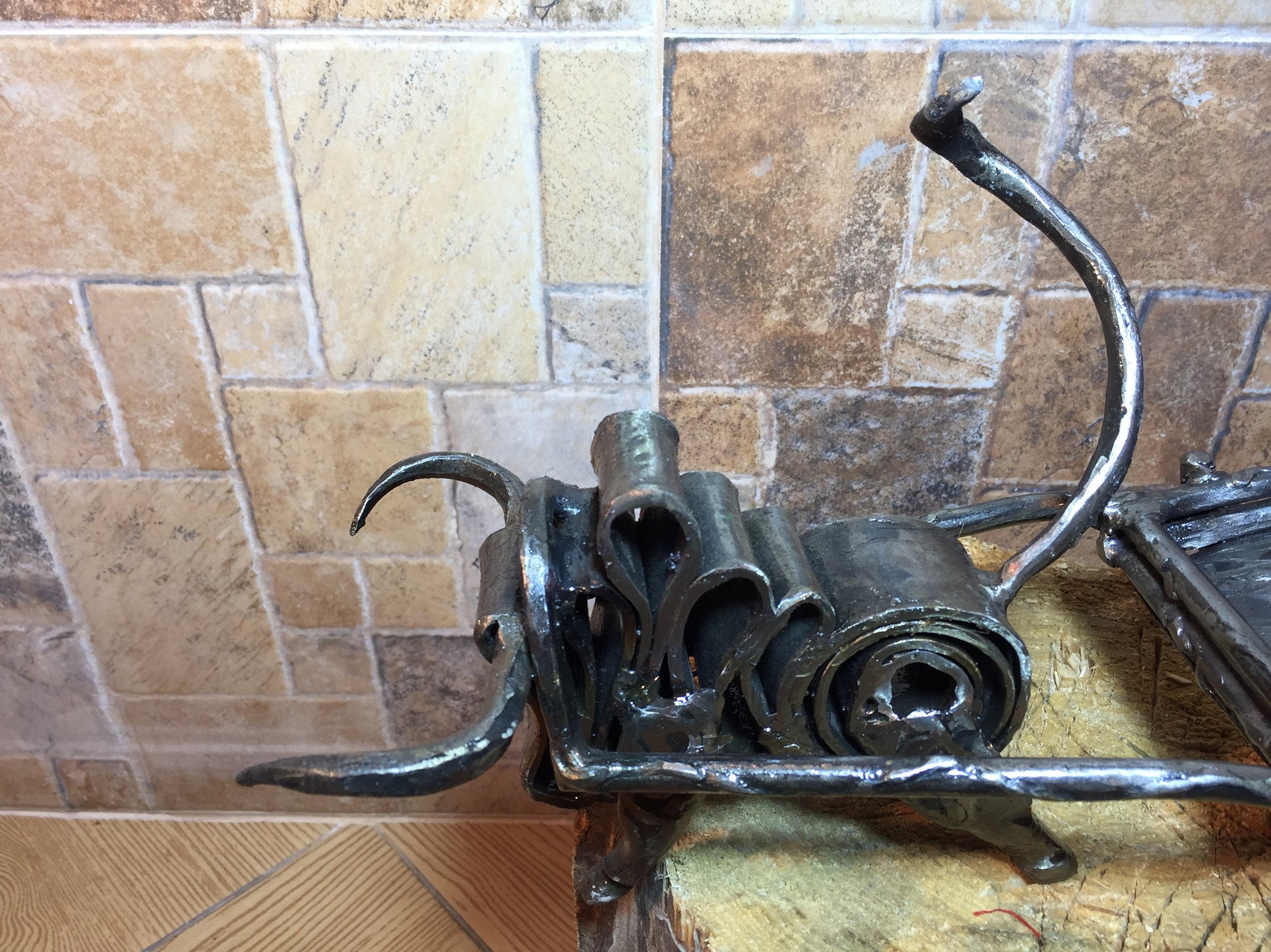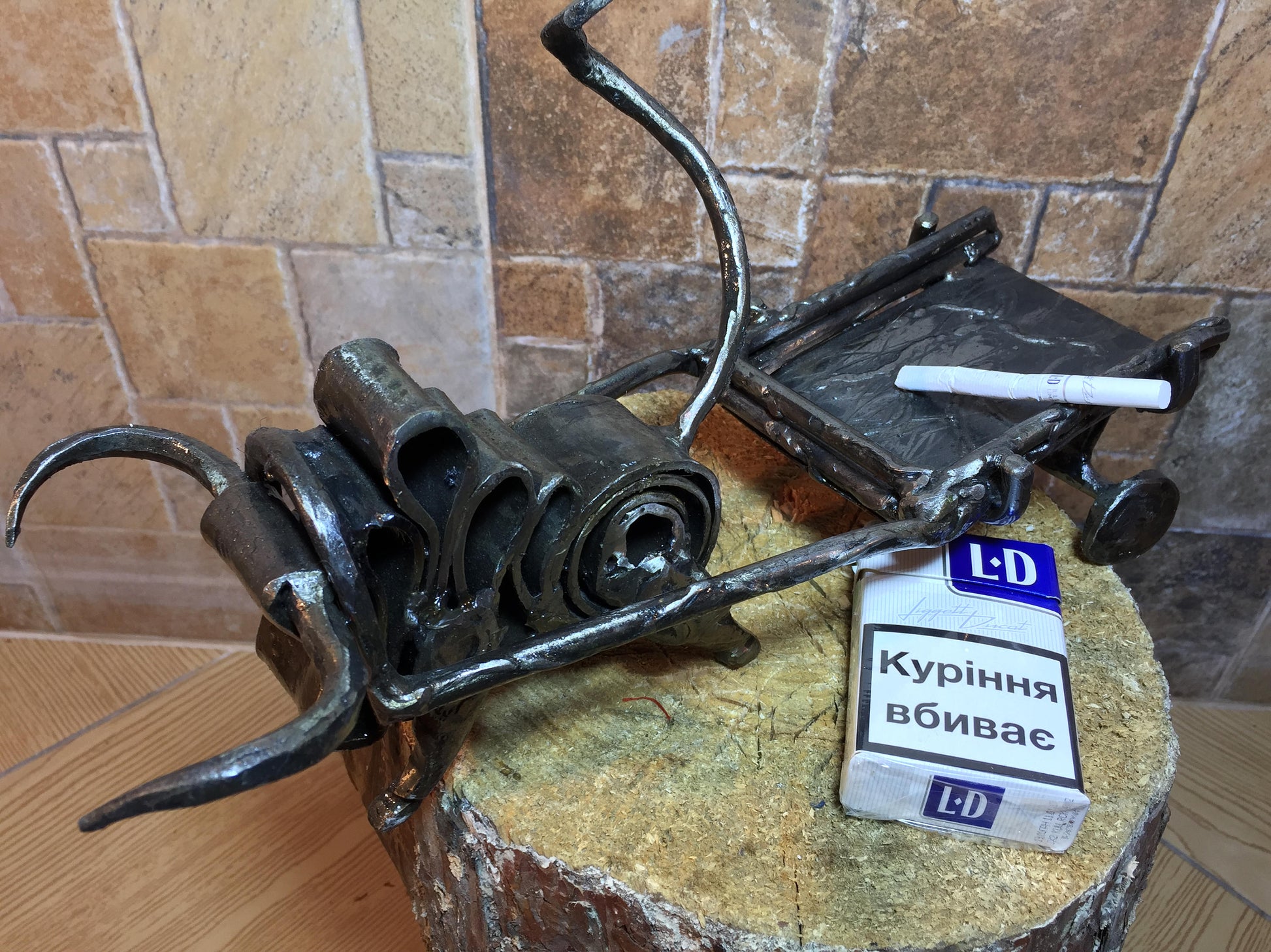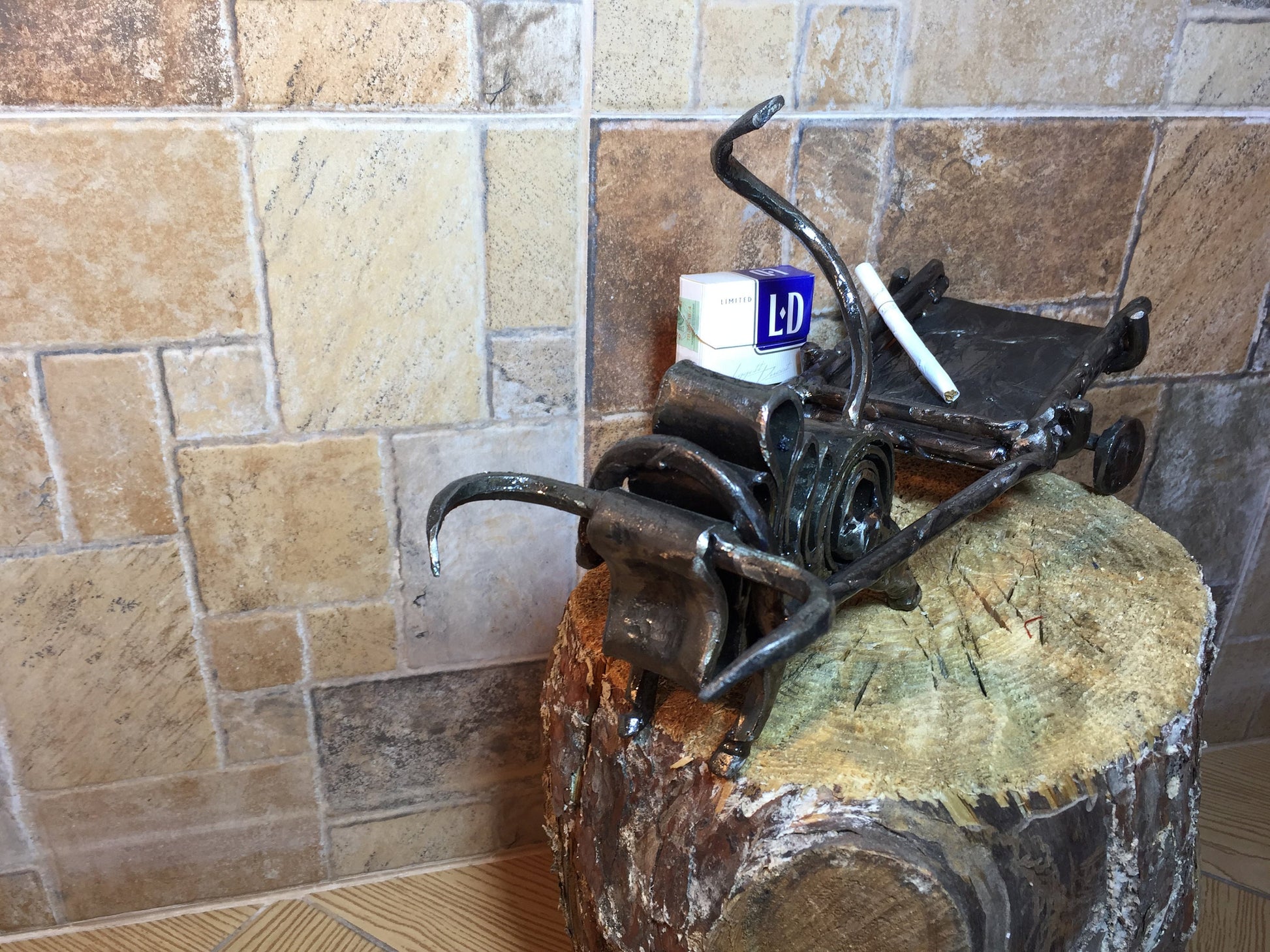 An ashtray can be not a usual tray but a masterpiece which decorates your house and outlines the features of your interior. Here is a hand forged ashtray in a style of a bull with a hammer holder.