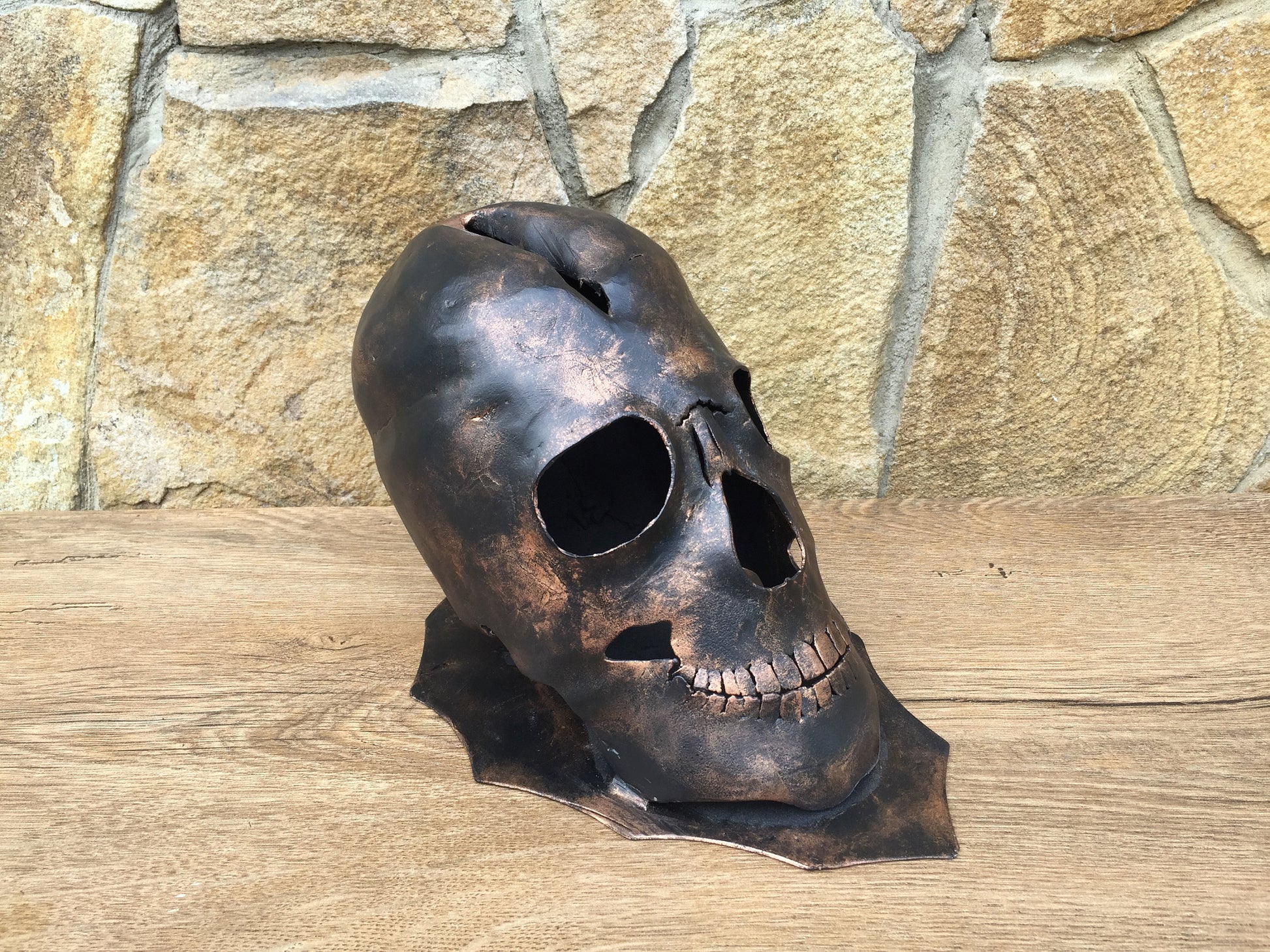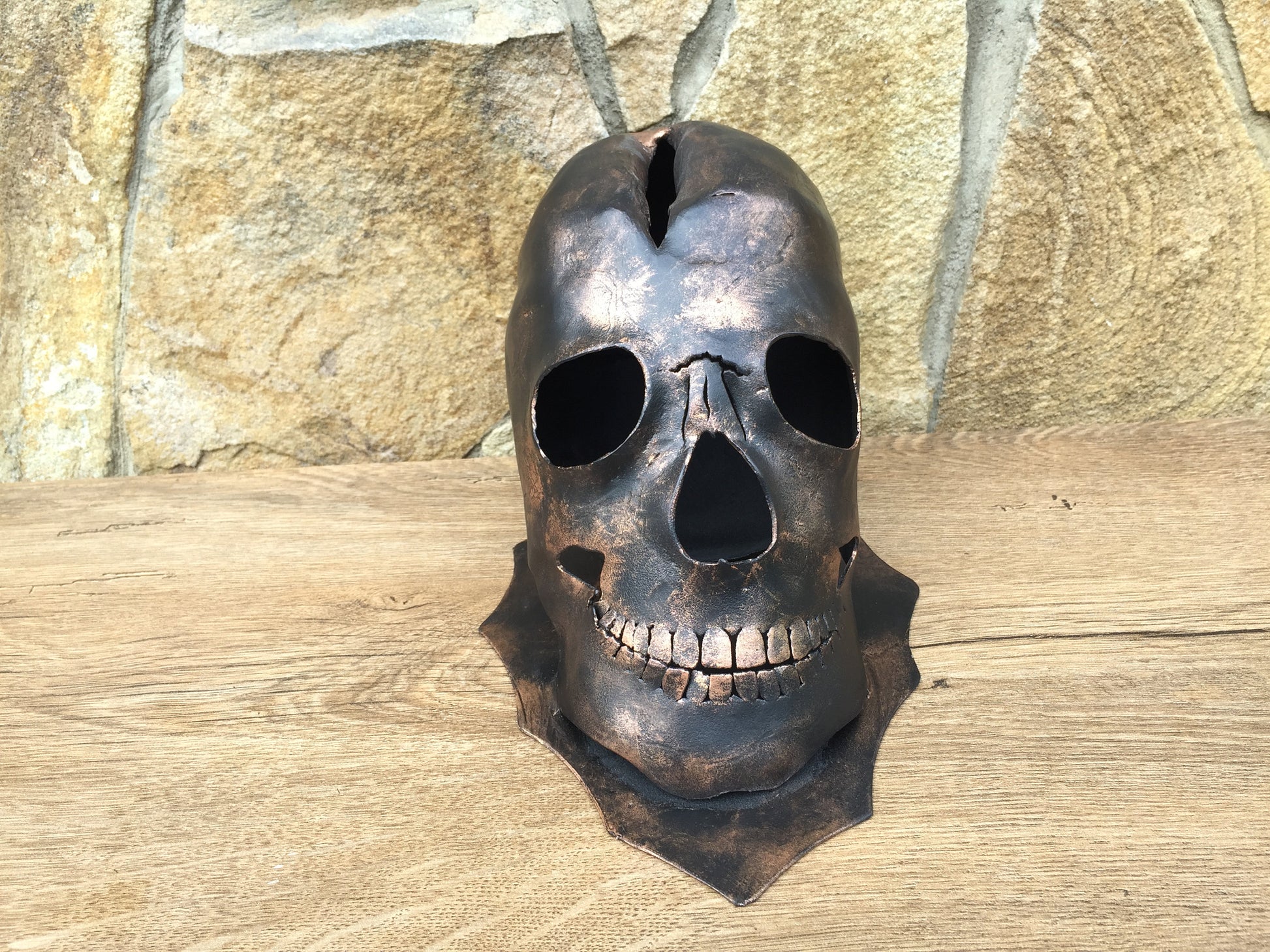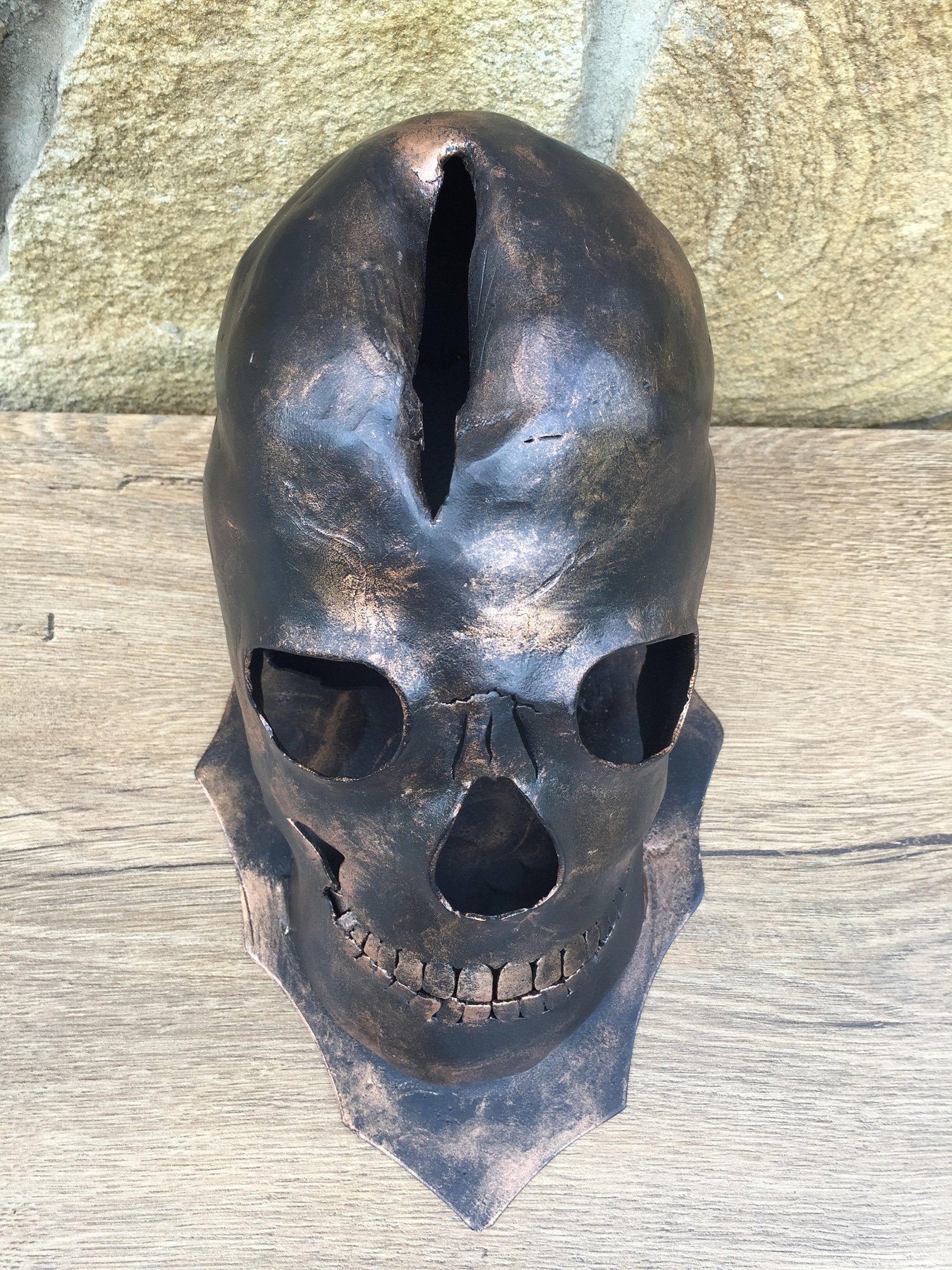 Here is an axe holder in a view of a skull. You can place the axe into a slot in the skull. It look very decorative. The skull looks very realistic!