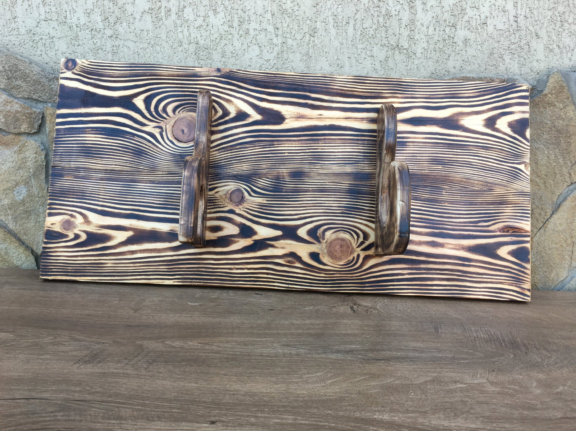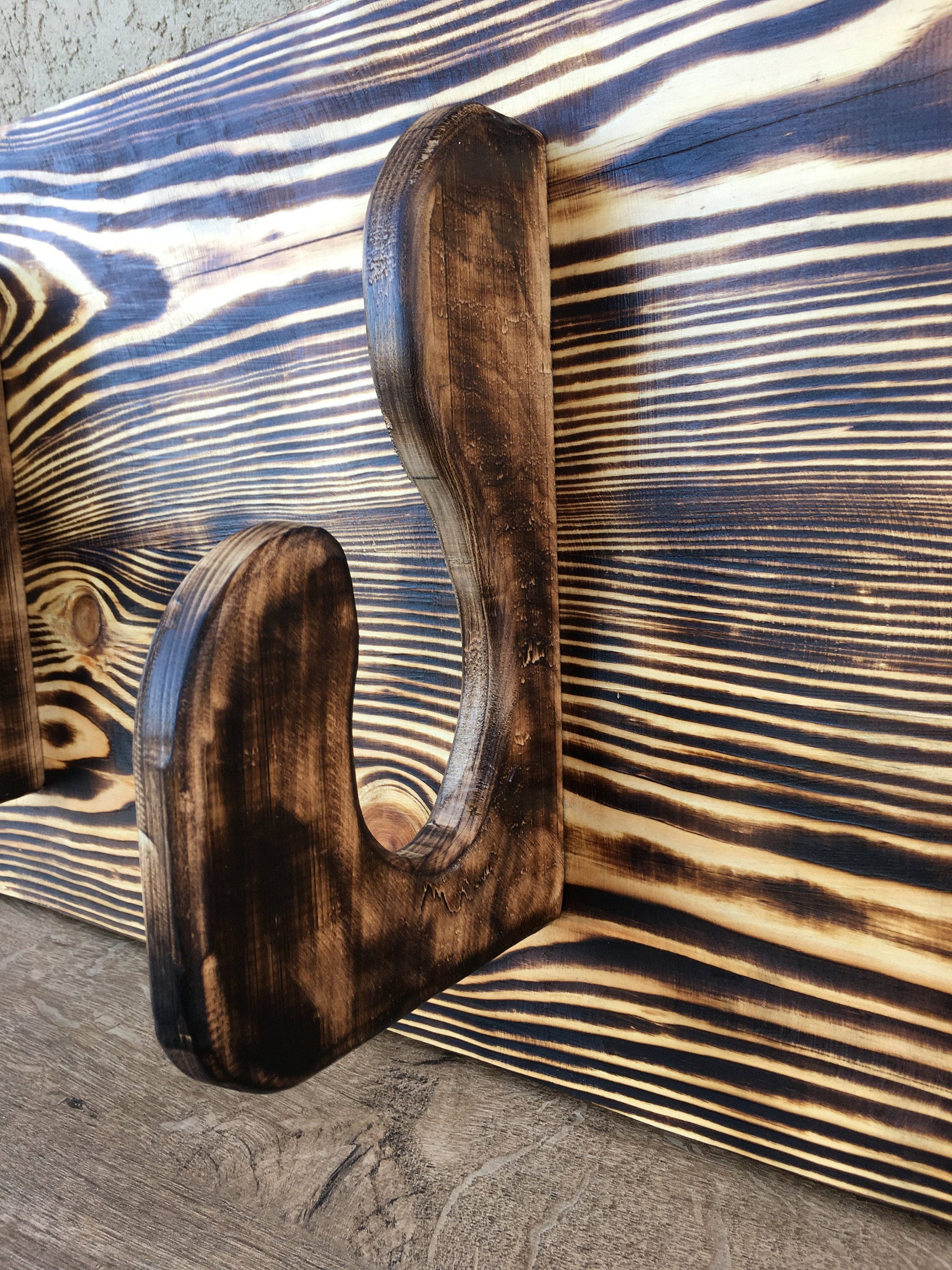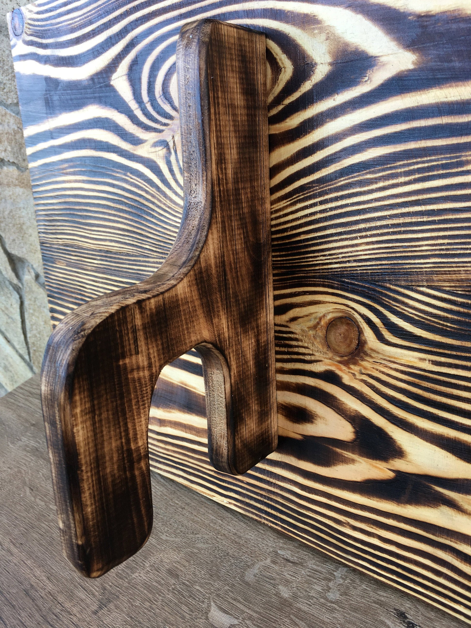 Looking for an unusual axe holder? Here it is! It will be a cool gift for a man who has an axe but still does not have the axe holder. This axe holder was burnt a bit thanks to what it has a nice colors of brown (from bight brown till dark brown color).