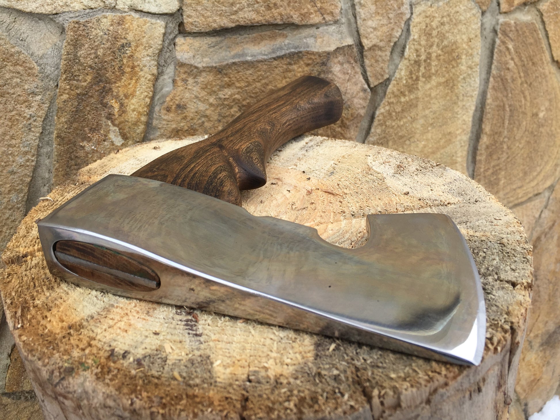 AXE WITH A MIRROR SHINY AXE HEAD IN A WOODEN BOX WITH ENGRAVING