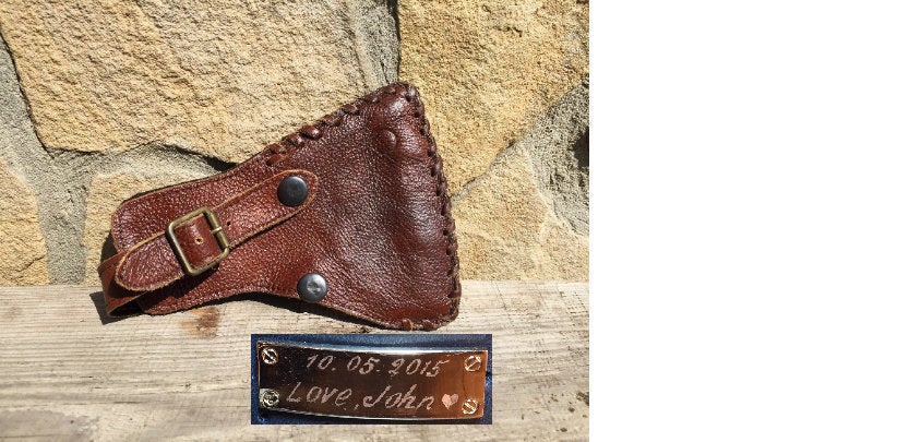 Here is a hand made leather sheath which can be adjusted to the sizes of your axe. It can be personalized on the metal plate which will be attached to the sheath. It is made from a premium quality leather.