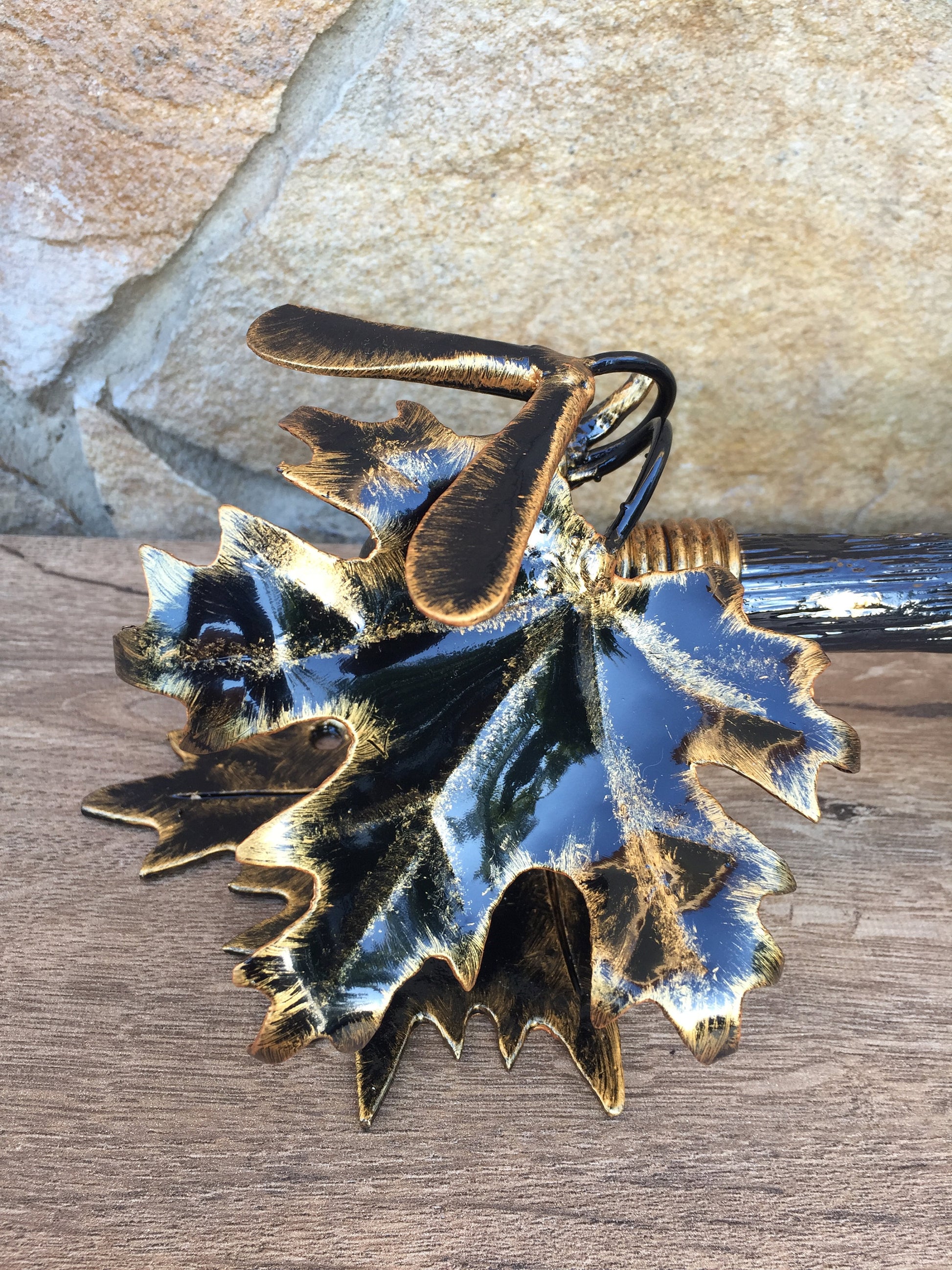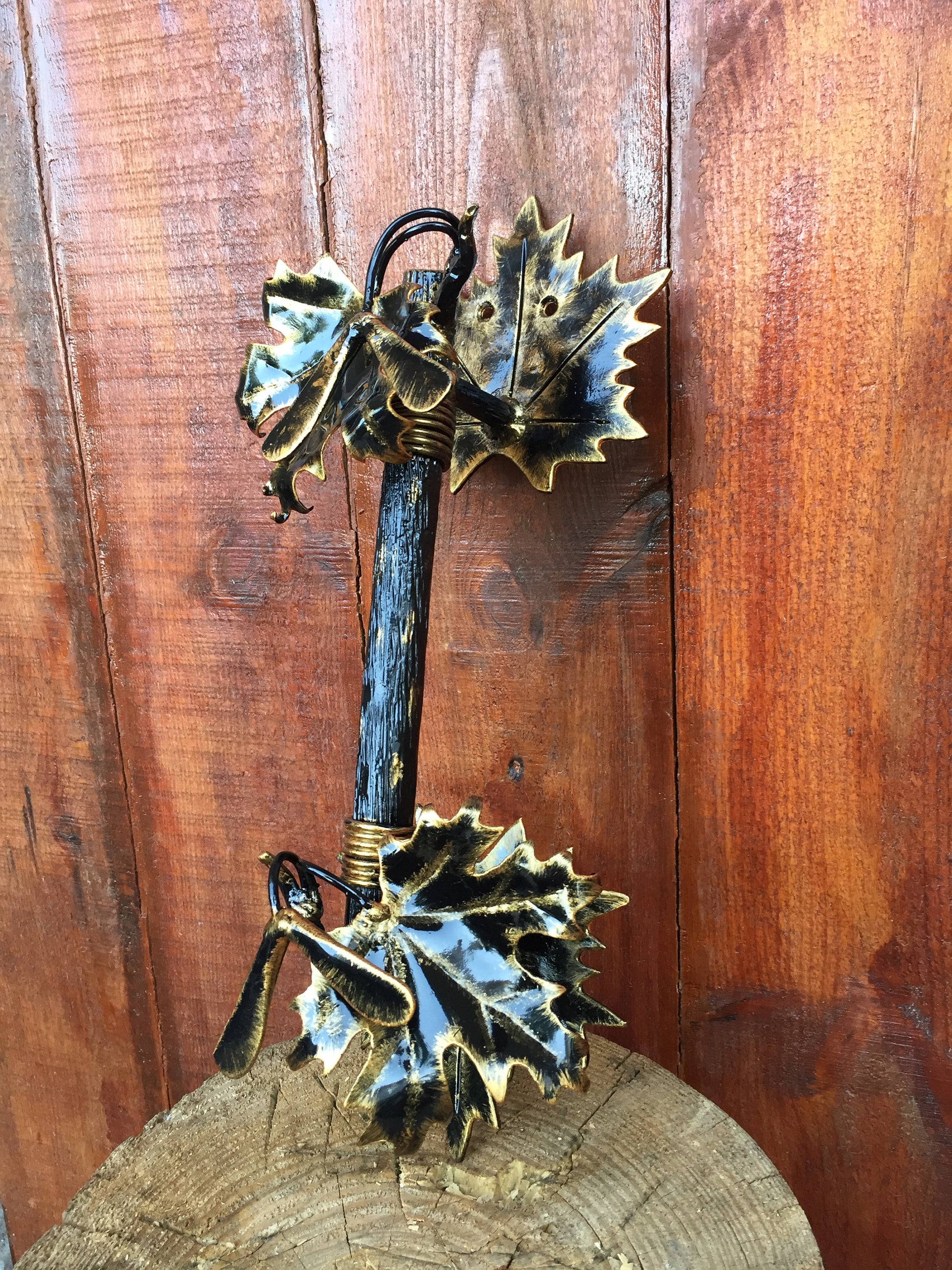Here is a forged hand made door handle in a view of a maple leaves and maple seeds which will give much more beauty to your home and outlines its exterior/interior features. It is handmade, art forged. A functional piece of art!