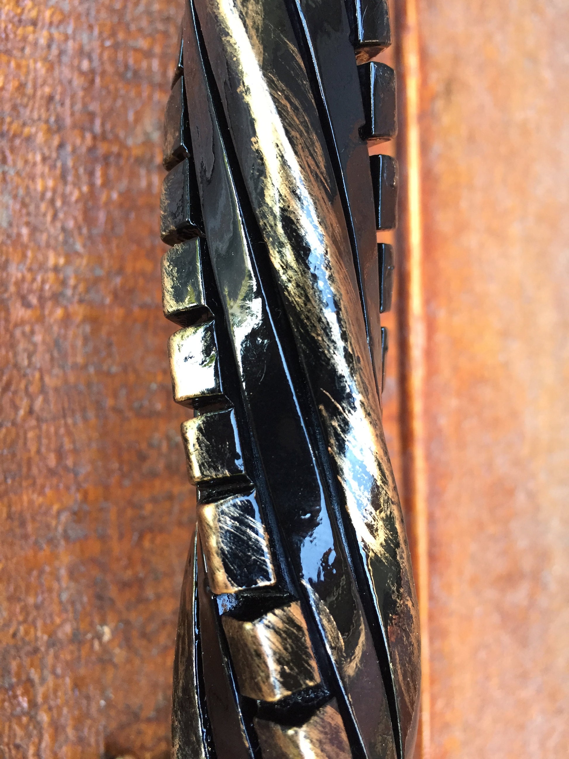 Colour: black with some gold patina.