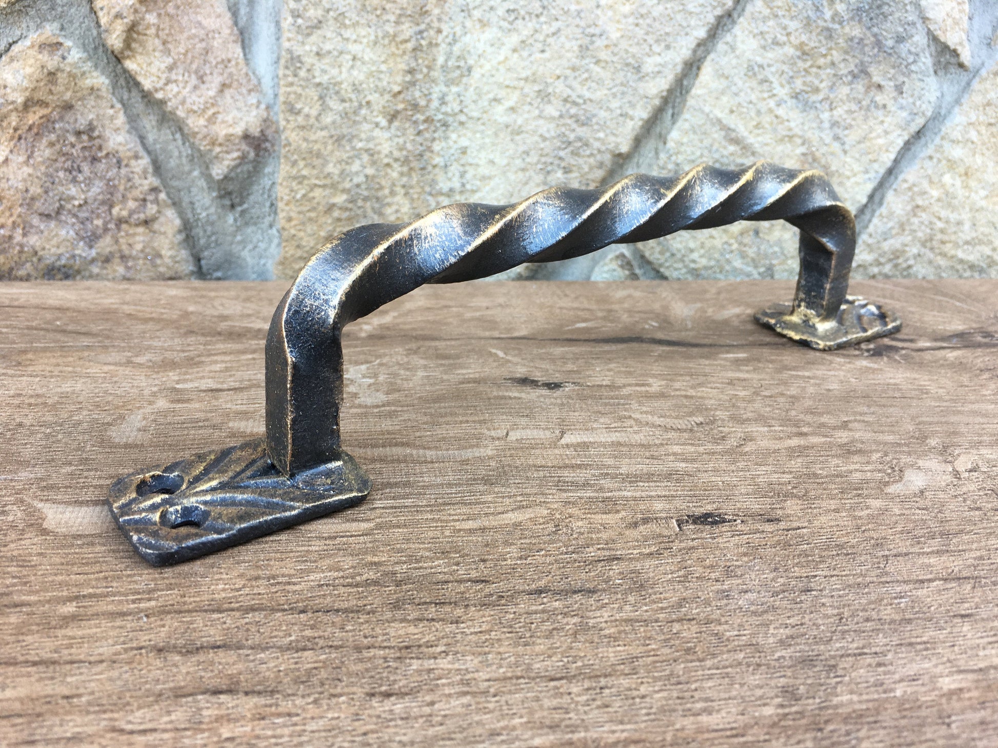 Here is a forged hand made door handle in a view of a twisted metal which will give much more beauty to your home and outlines its exterior/interior features. It is handmade, art forged, forging art. The door handle will not rust or stain and therefore will not require any significant maintenance or routine cleaning. Simply wipe clean with a damp non-abrasive cloth.