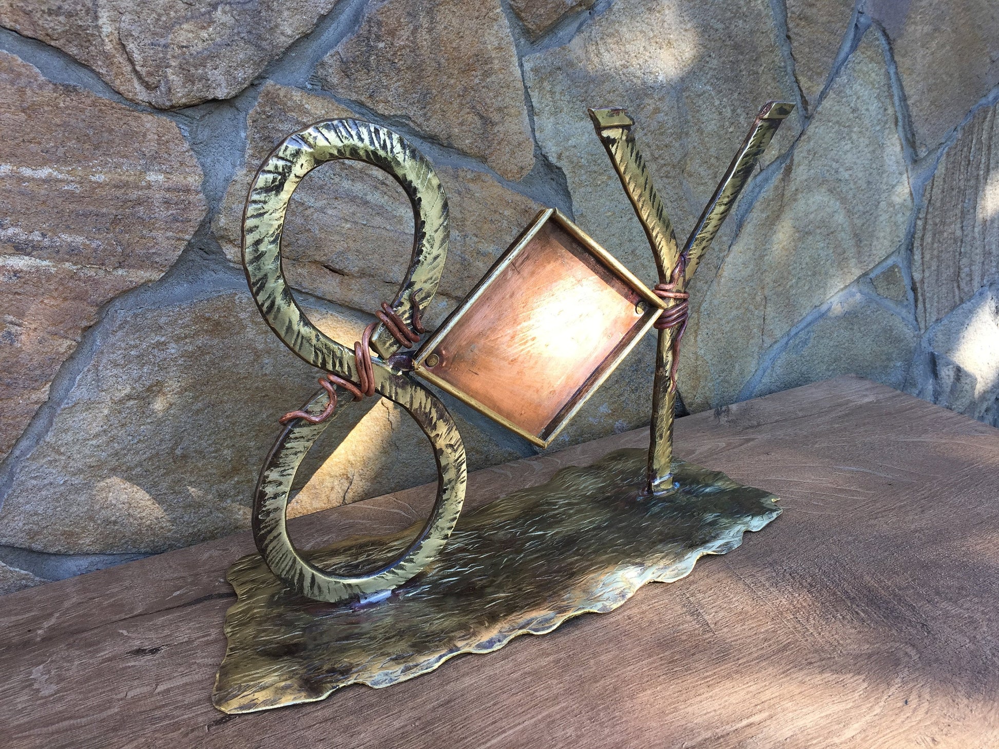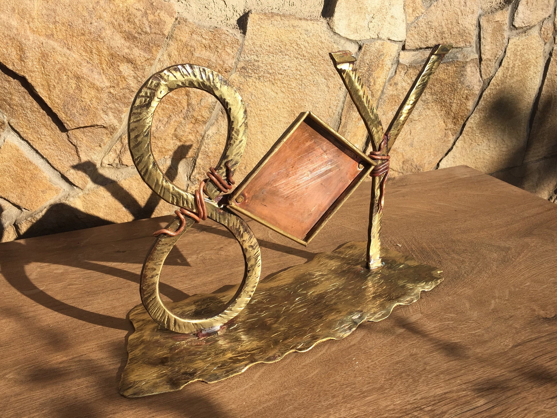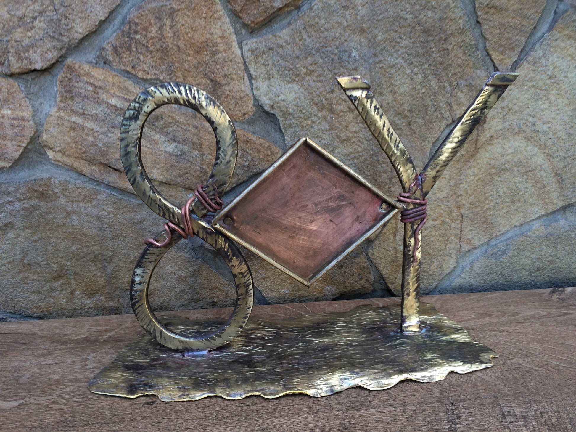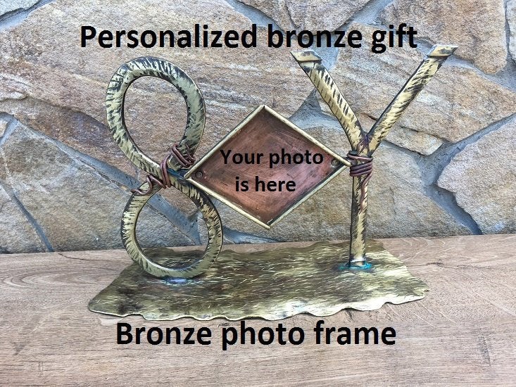 Here is a nice hand forged bronze photo frame. You will put a photo in a rombus between a number 8 and a letter Y (number 8 means bronze anniversary, letter Y means years). A nice gift for a wedding, 8th wedding anniversary (bronze anniversary), for expressing love, for engagement, Valentine's Day and many other gifting occasions! It will last forever.
