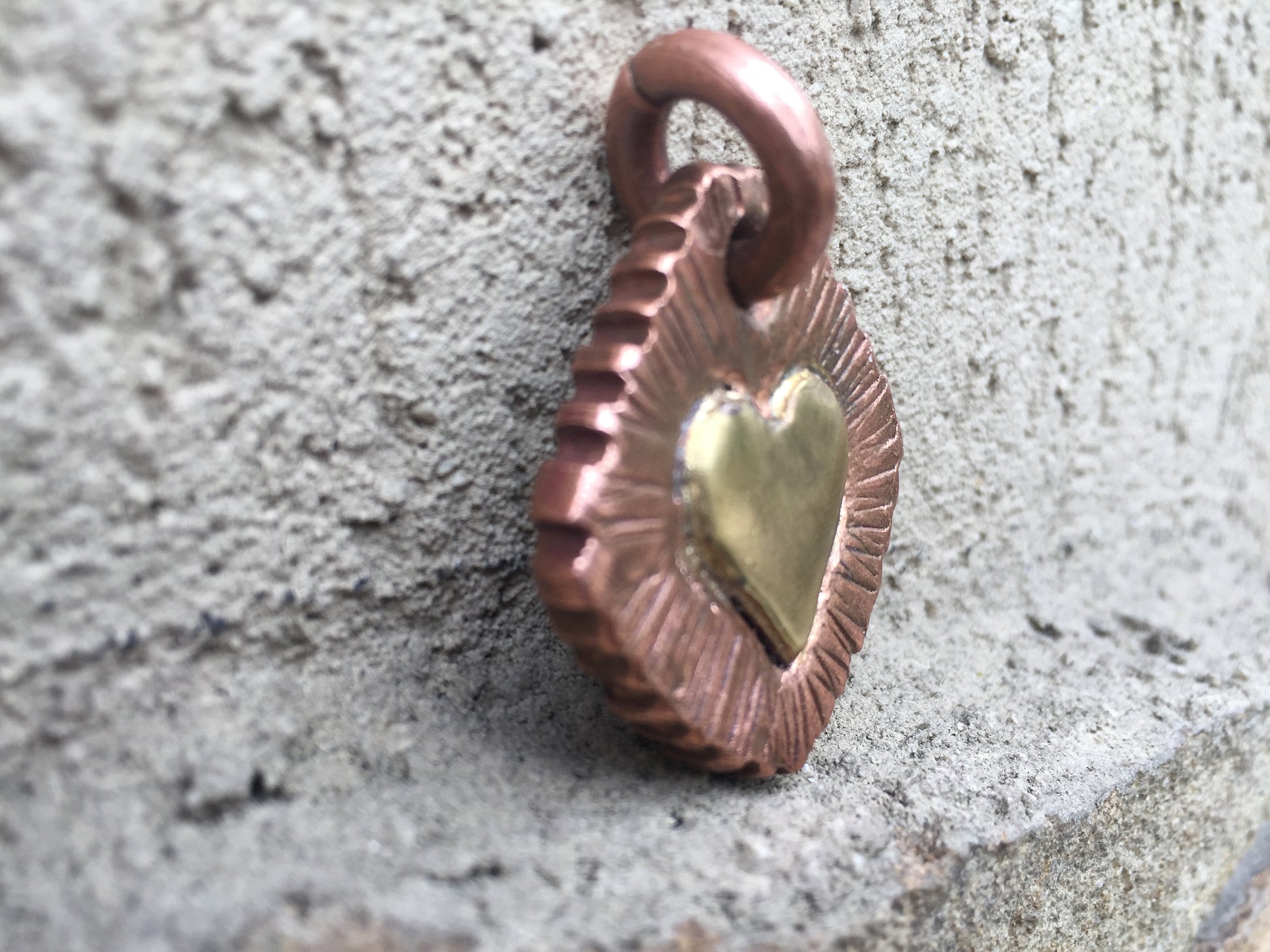 Here is a nice hand hammered bronze key chain / necklace (in a copper frame). A nice gift for a wedding, 8th wedding anniversary (bronze anniversary), for expressing love, for engagement, Valentine's Day and many other gifting occasions! It can be used as a keychain or a necklace. It has engraved/carved bronze heart in the center. It can be engraved with a word and a date on its backside to make it personal.