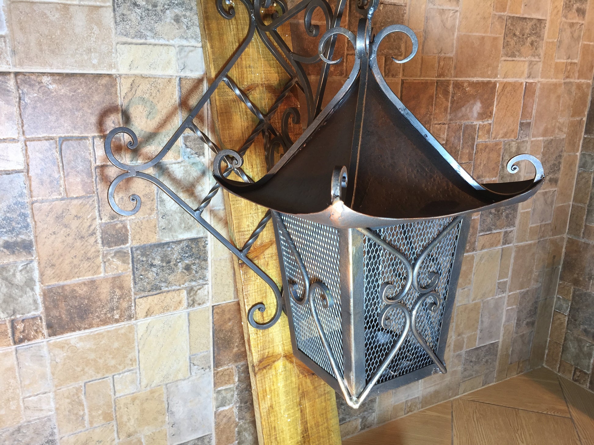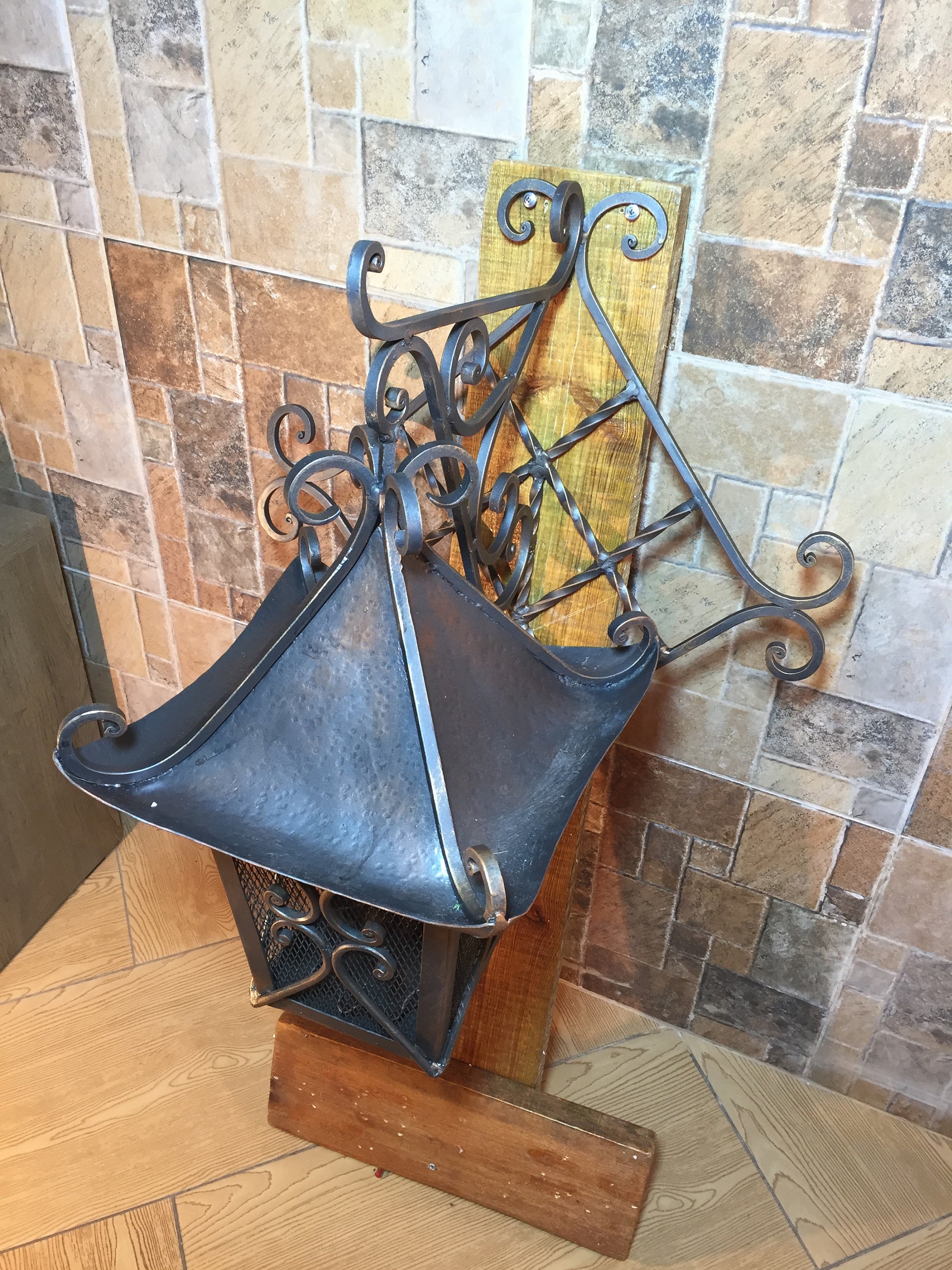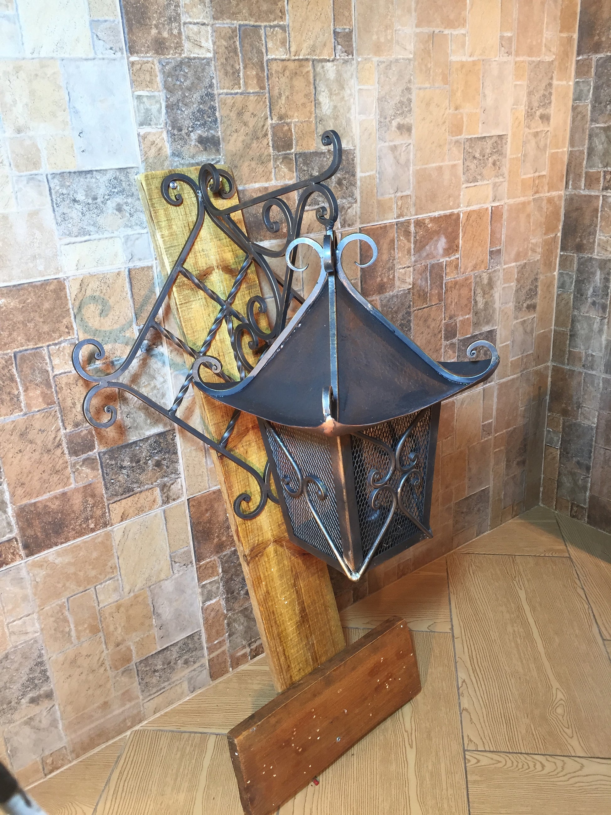 A candle holder can be not only a simple candle holder but a masterpiece which decorates your house and outlines your interior features. Here is a hand made forged candle holder in a view of a lantern which looks very festive.