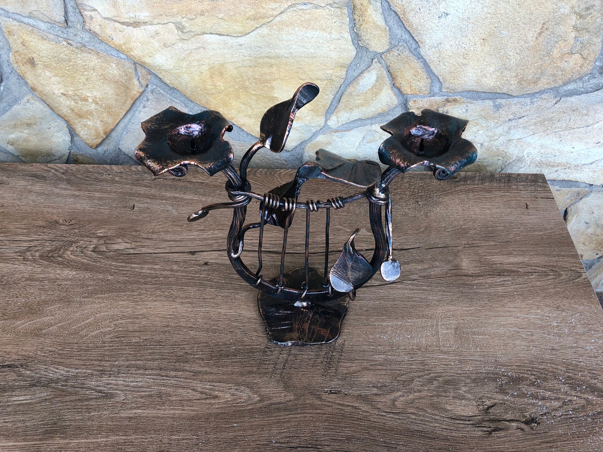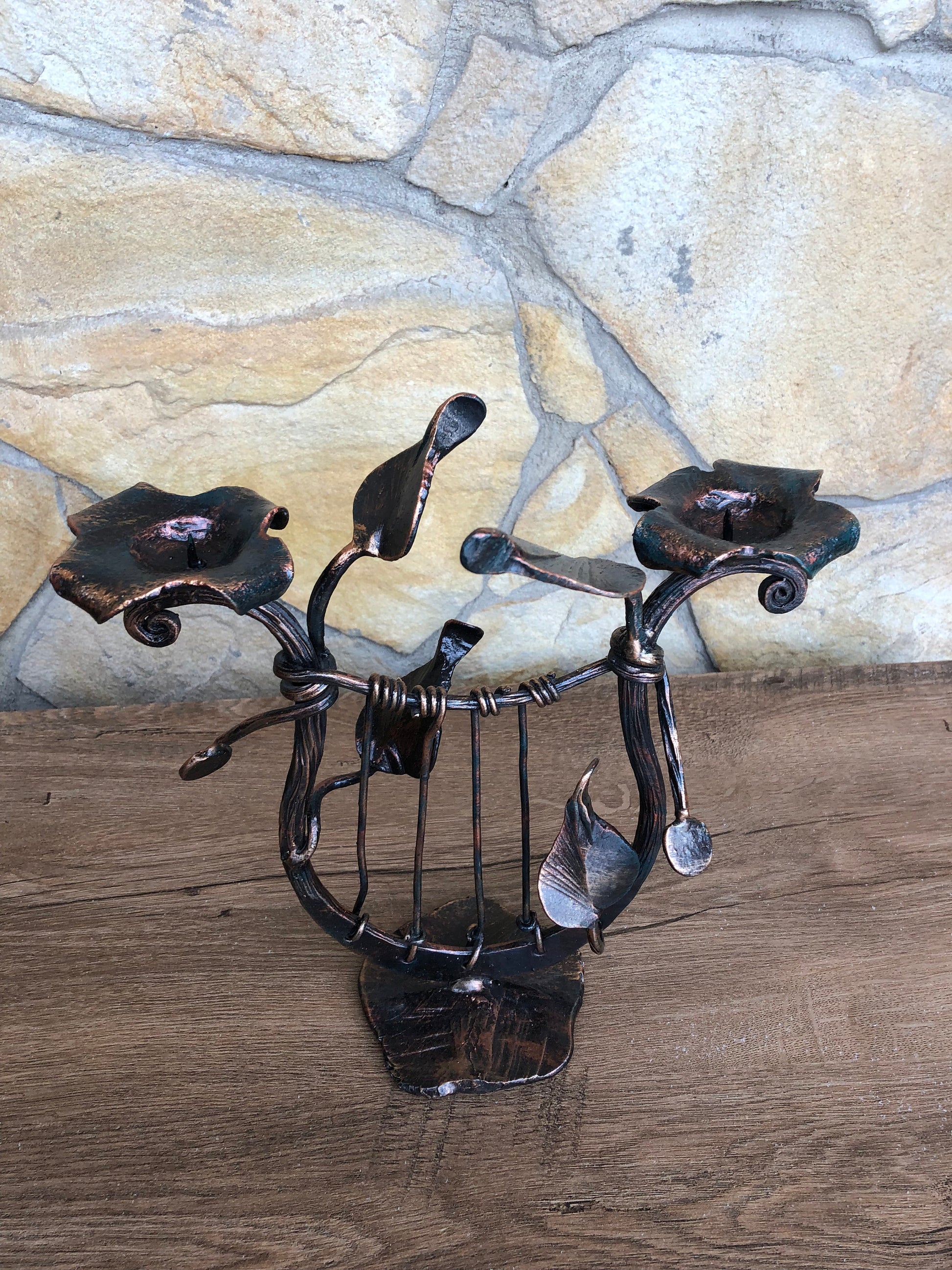 A candle holder can be not only a simple candle holder but a masterpiece which decorates your house and outlines your interior features. Here is a hand made forged candle holder in view of a music instrument "Lira".