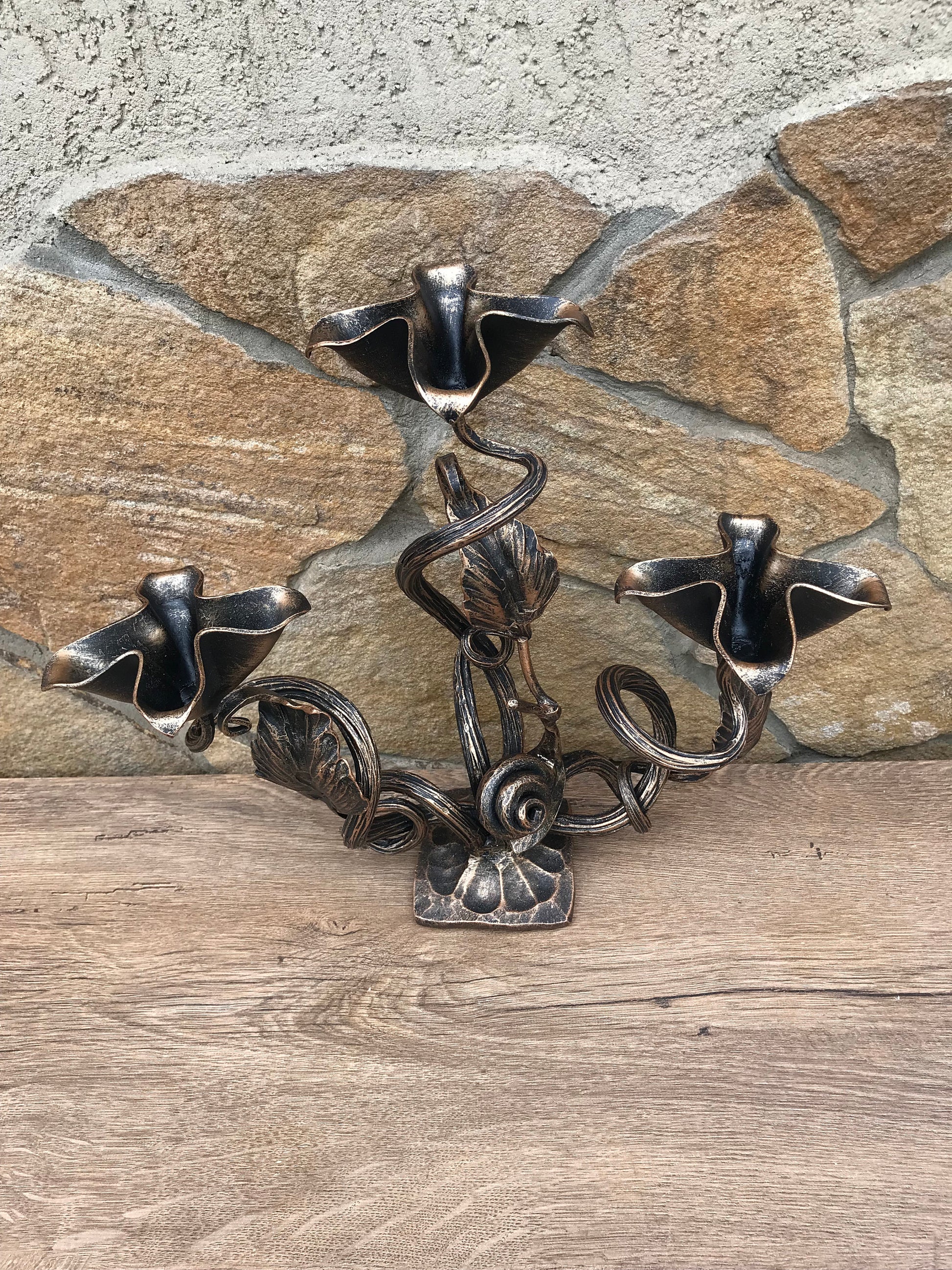 A candle holder can be not only a simple candle holder but a masterpiece which decorates your house and outlines your interior features. Here is a hand forged candle holder for 3 candles.