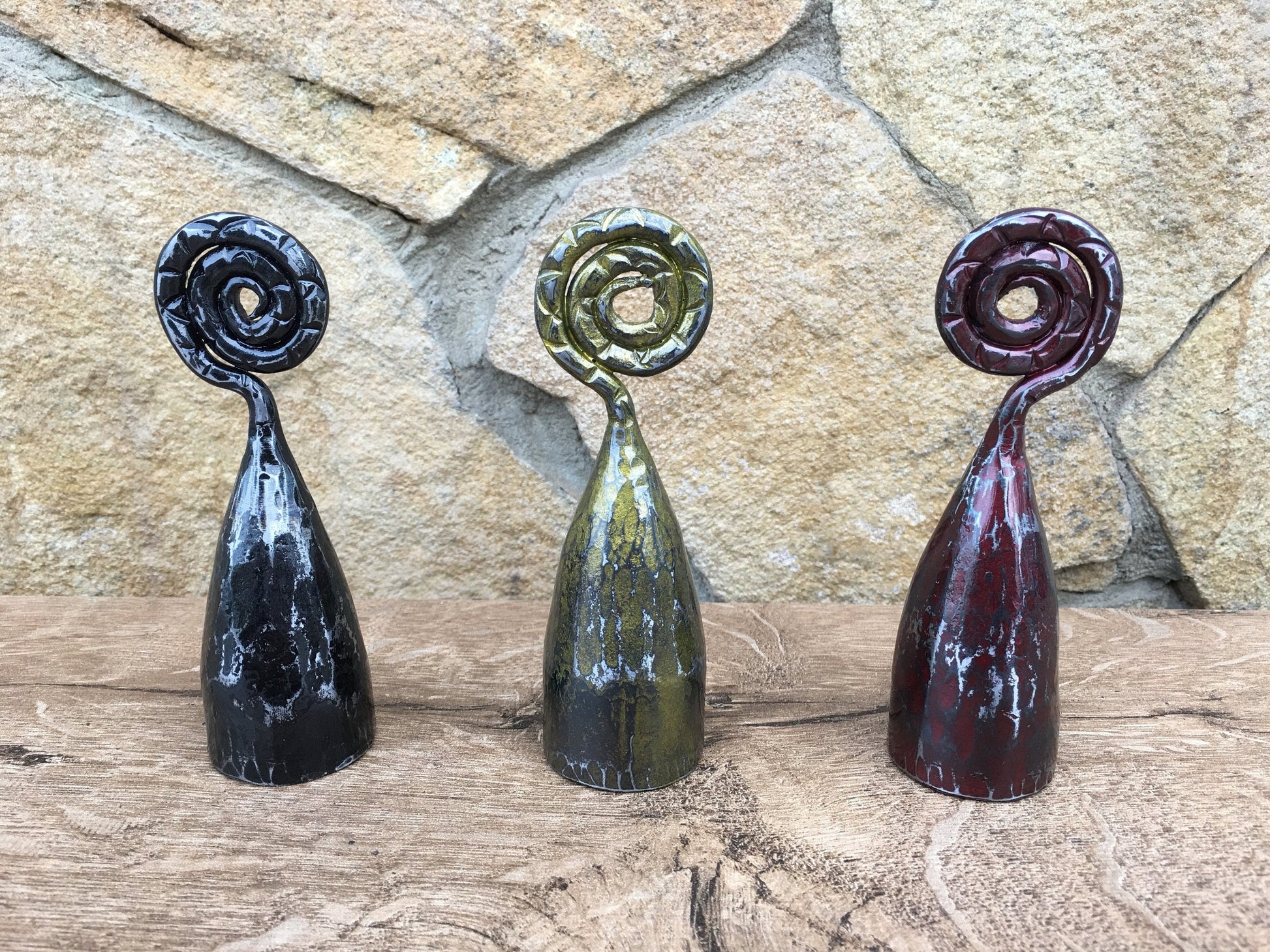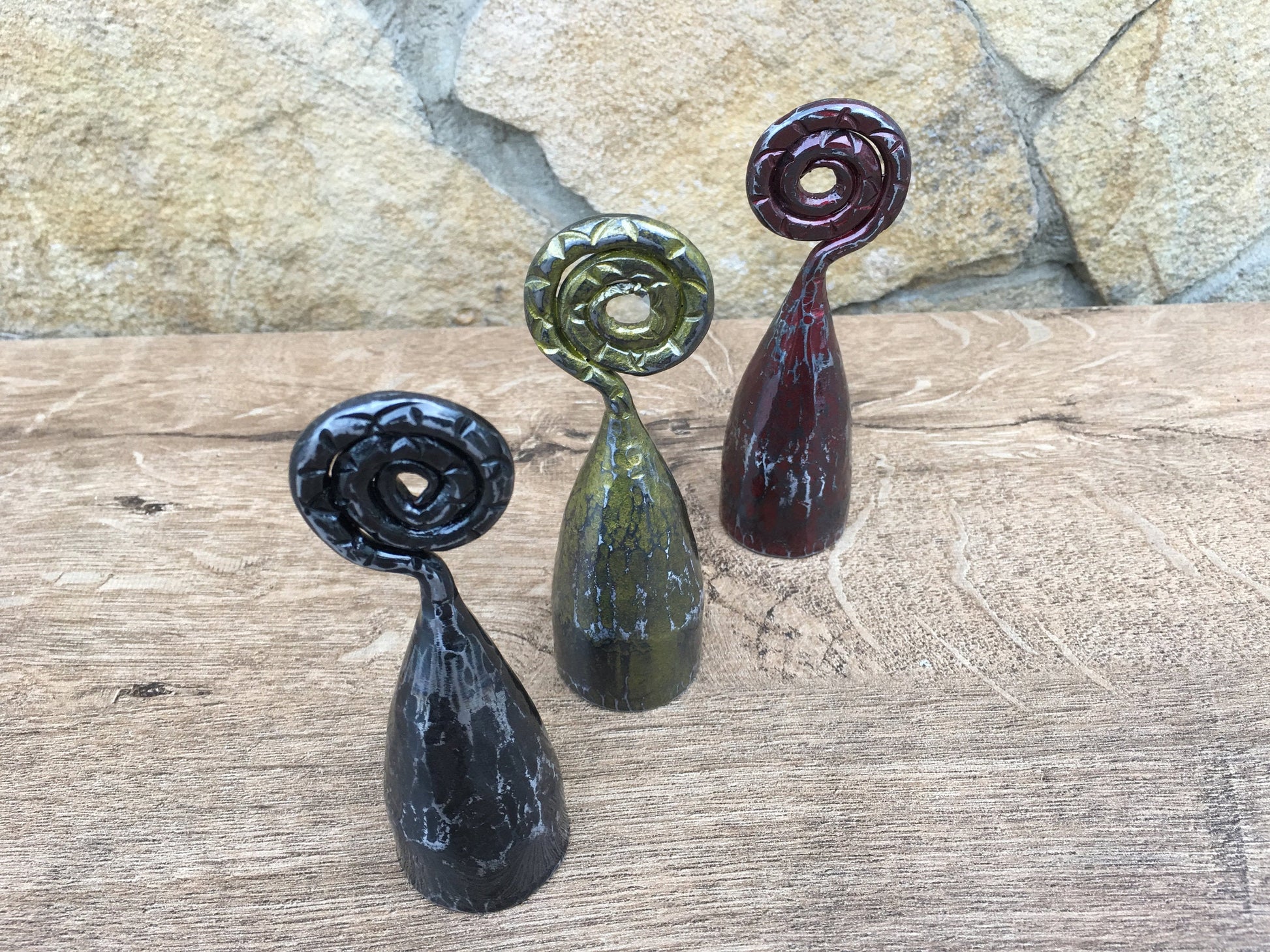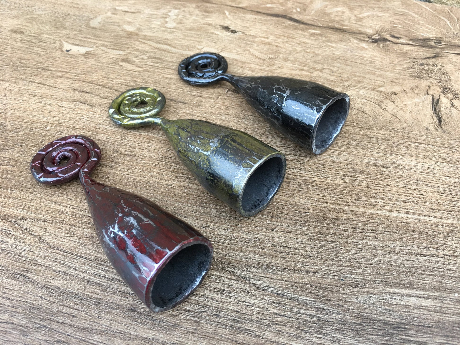 Are you looking for a nice candle snuffer? Gifting occasion? Or just a home decor? Here is a set of three hand forged candle snuffers with scrolled handles. It looks very festive and decorative! It deserves to be a cool gift! It is a functional piece of art!