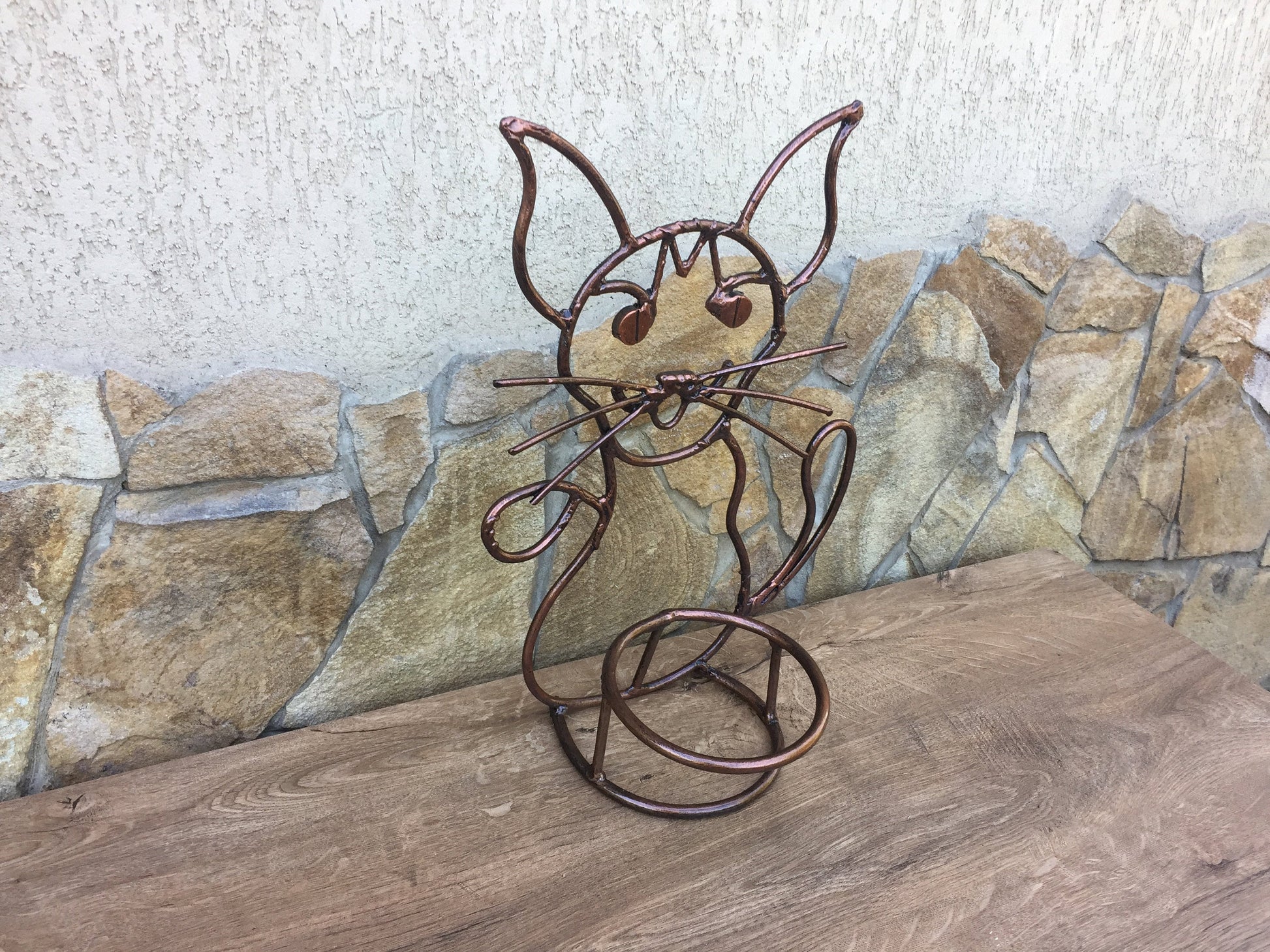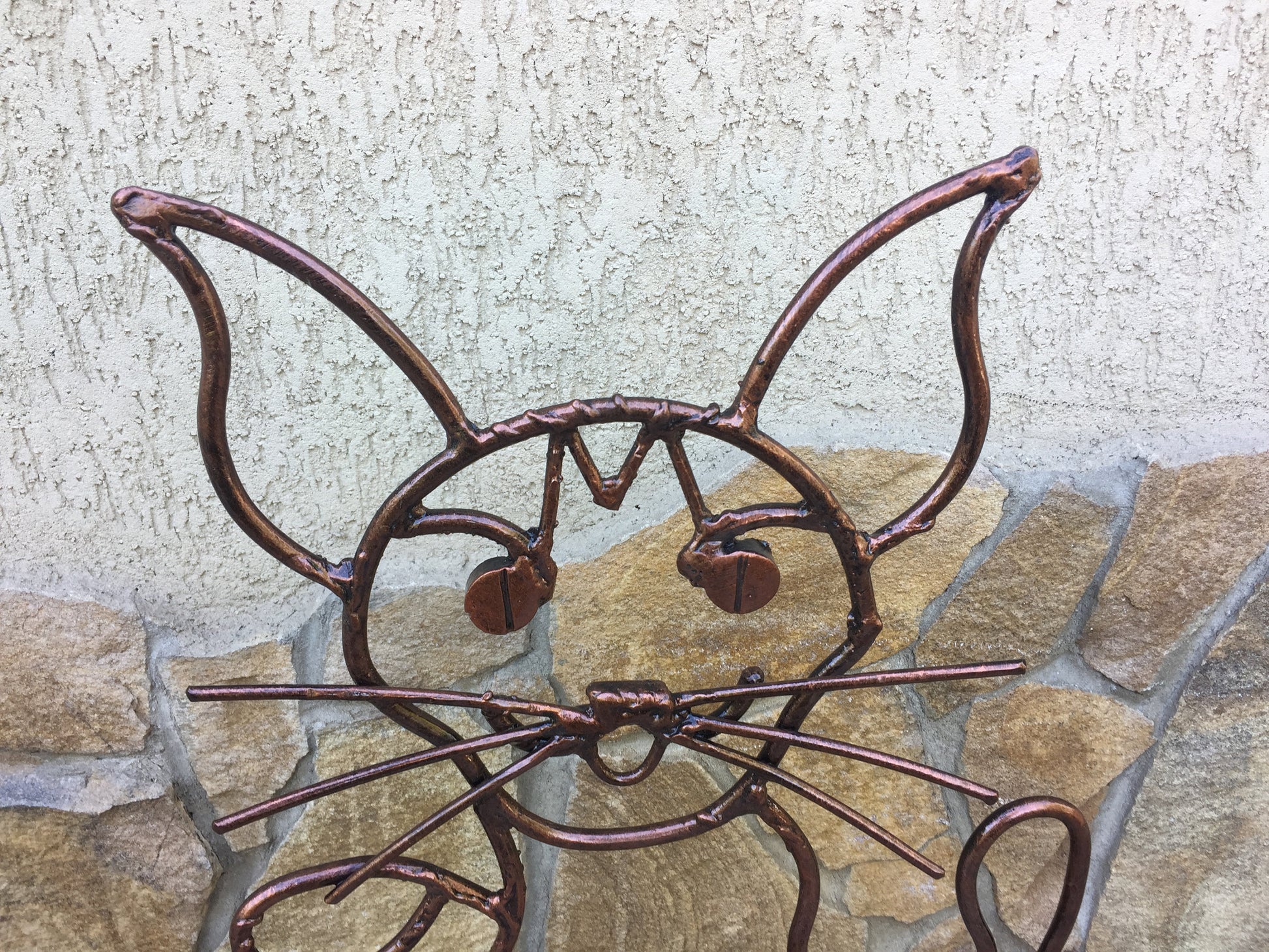 A pet bowl holder can be not a usual bowl holder but a masterpiece which can decorate your home and outlines the features of your home interior/exterior. Here is a hand forged cat bowl tray holder, hand made, in a view of a nice cat (boy-cat). You will not find anything similar to it. It is very decorative! It will last forever.