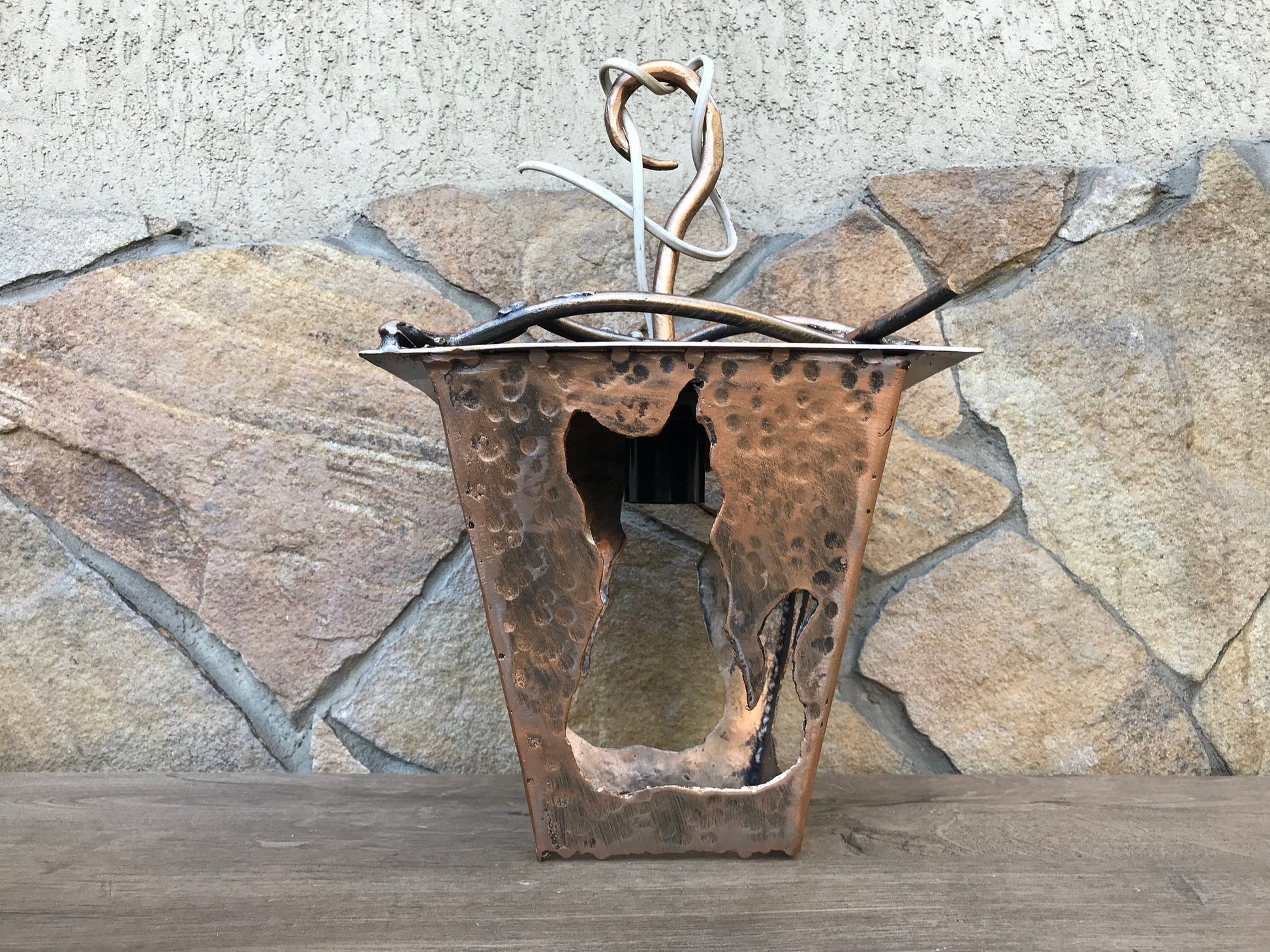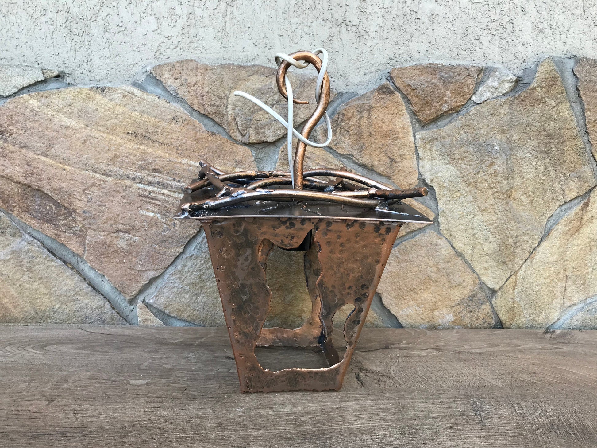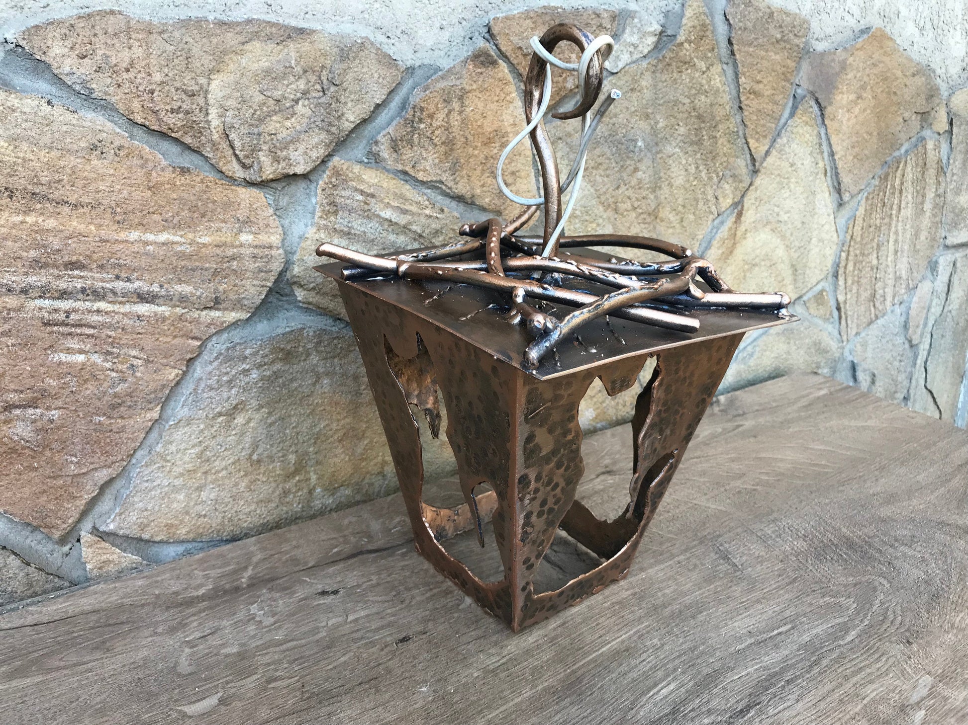 A celieng/wall lamp can be not a usual lamp but a masterpiece which can decorate your home and outlines the features of your home interior. Here is a hand forged wall sconce. The side walls are with a cat cut. It is can go with a wall hook in order to fix it to a wall. You will not find anything similar to it. It is very decorative!