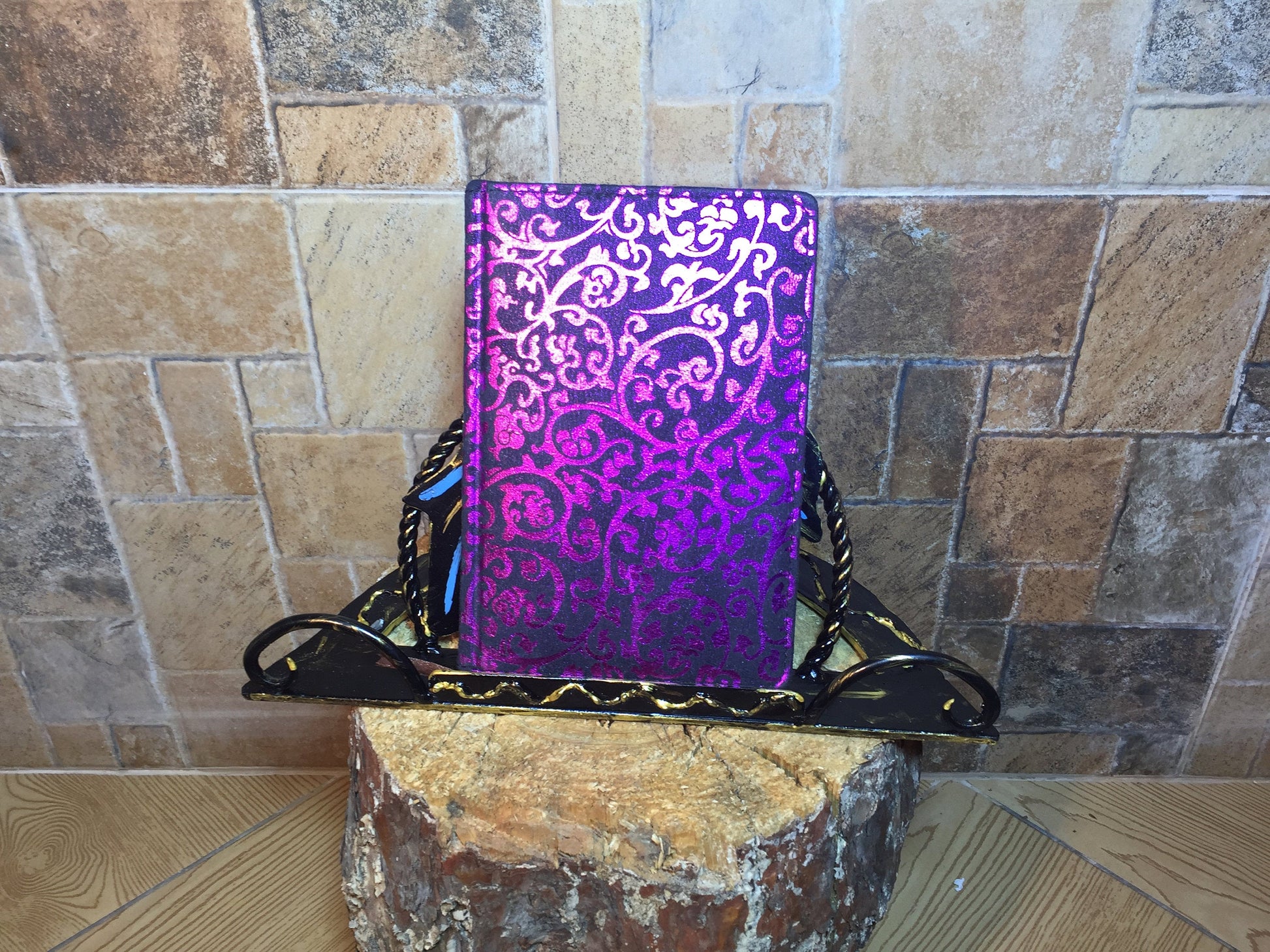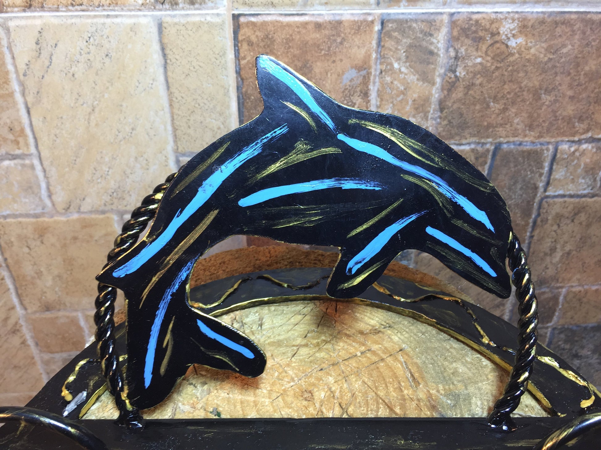 Hand forged cell phone holder, note-book holder, I-Pad holder. Very nice element to your interior. Hand made. It can be used also as a kitchen book holder, recipe holder, cookbook holder. It is a functional piece of art in a view of a dolphin.