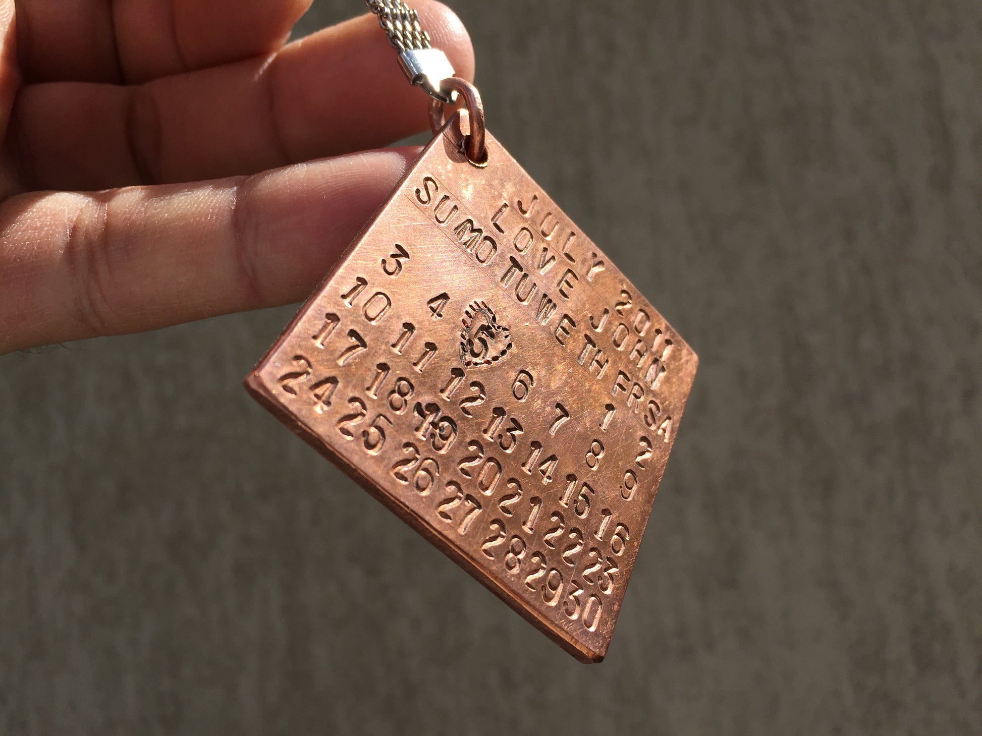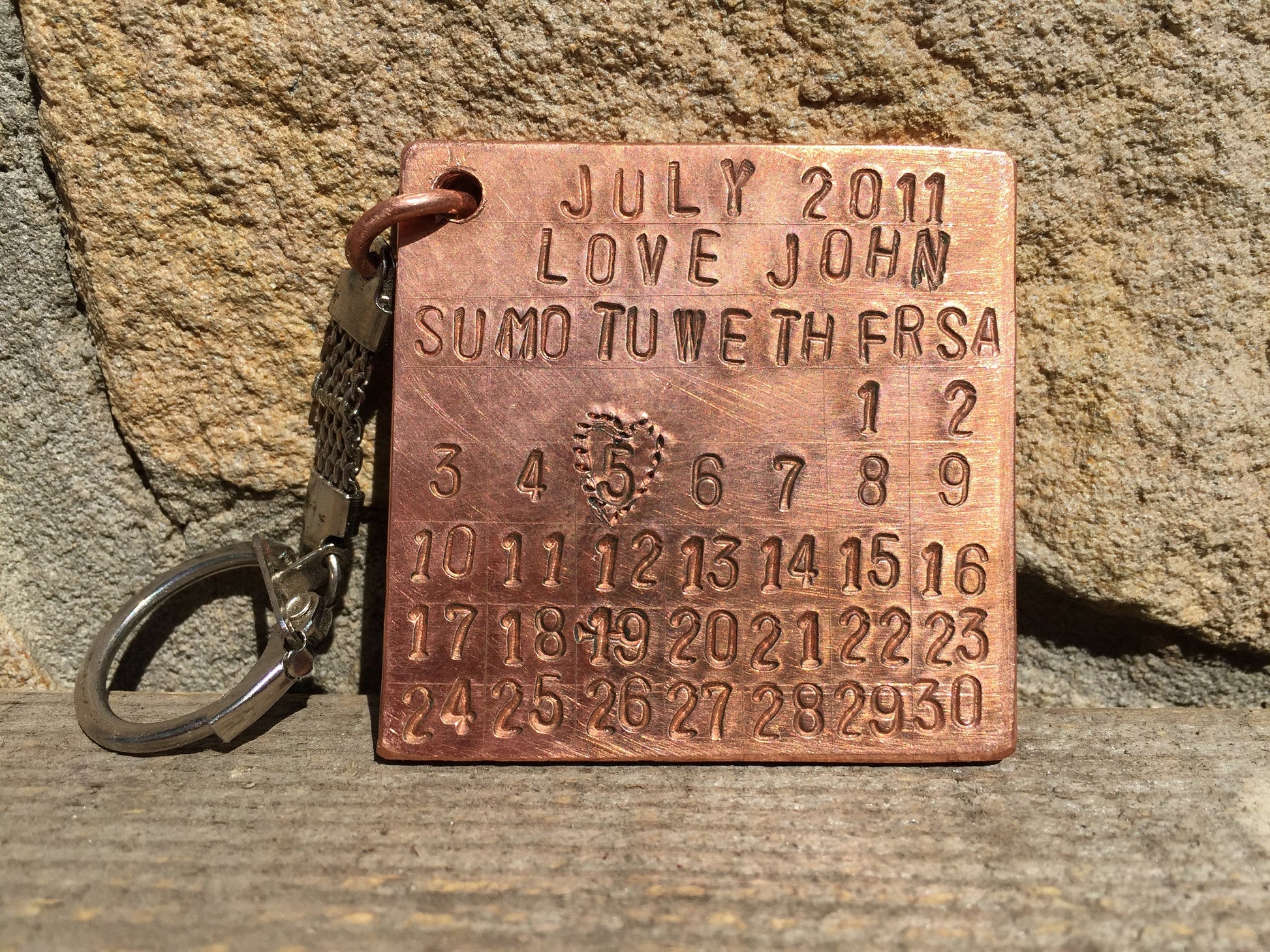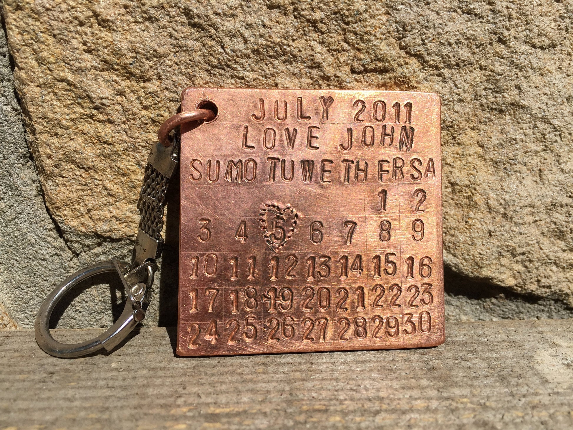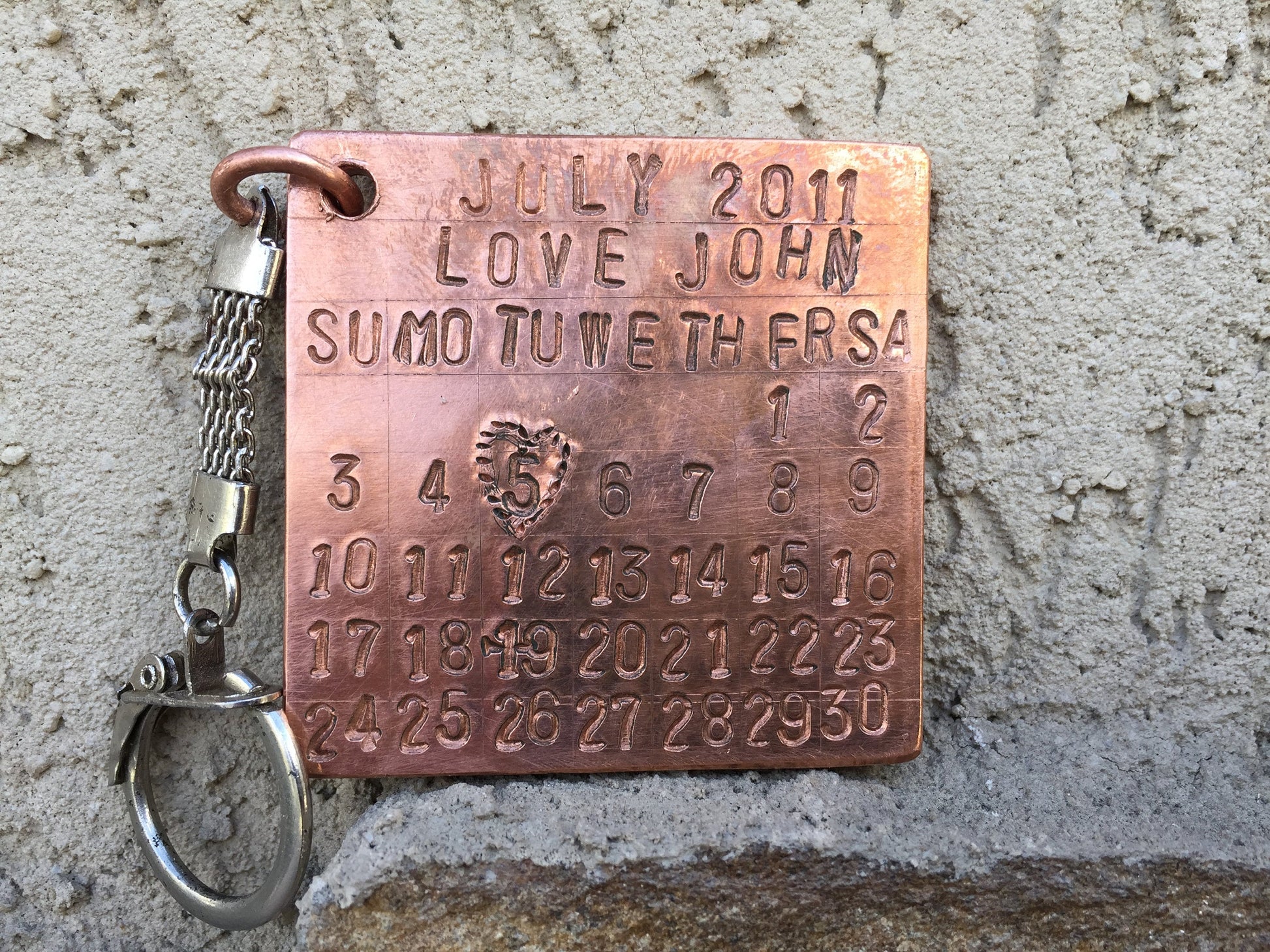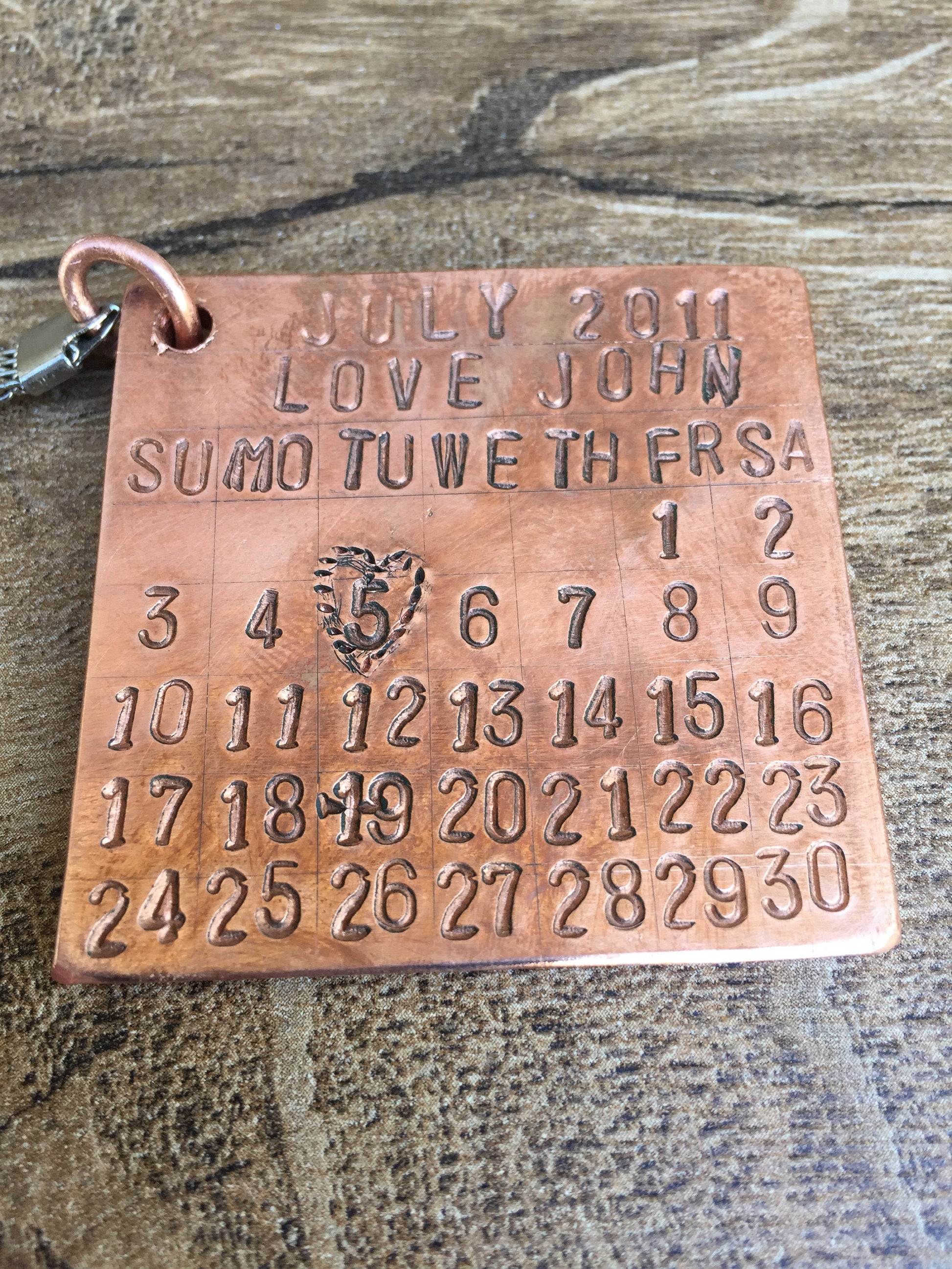 Here is a nice hand made copper gift with the outlined date of the copper anniversary. A nice present for a wedding, 7th wedding anniversary (copper anniversary), for expressing love, for engagement, Valentine's Day and some other gifting occasions!