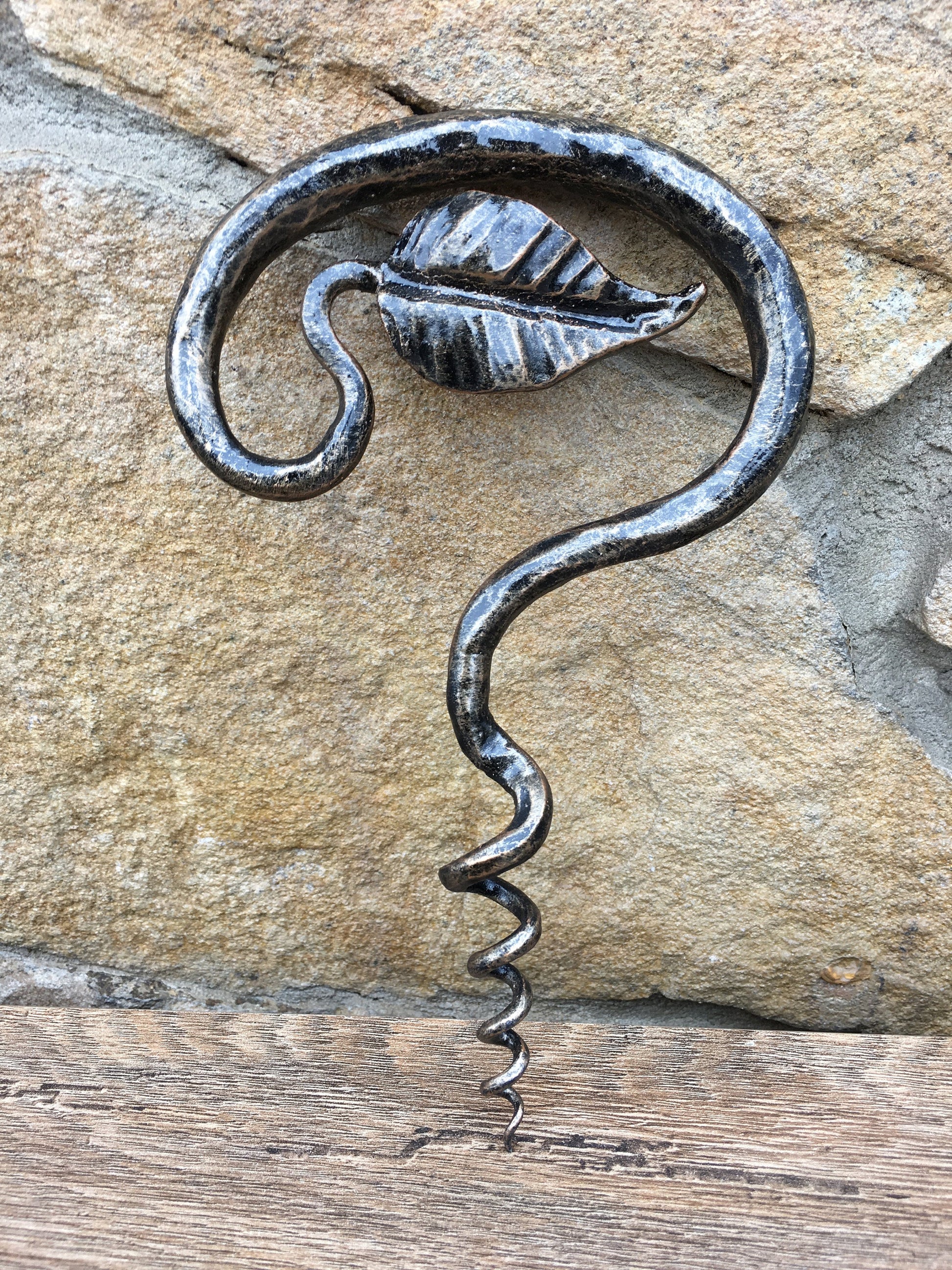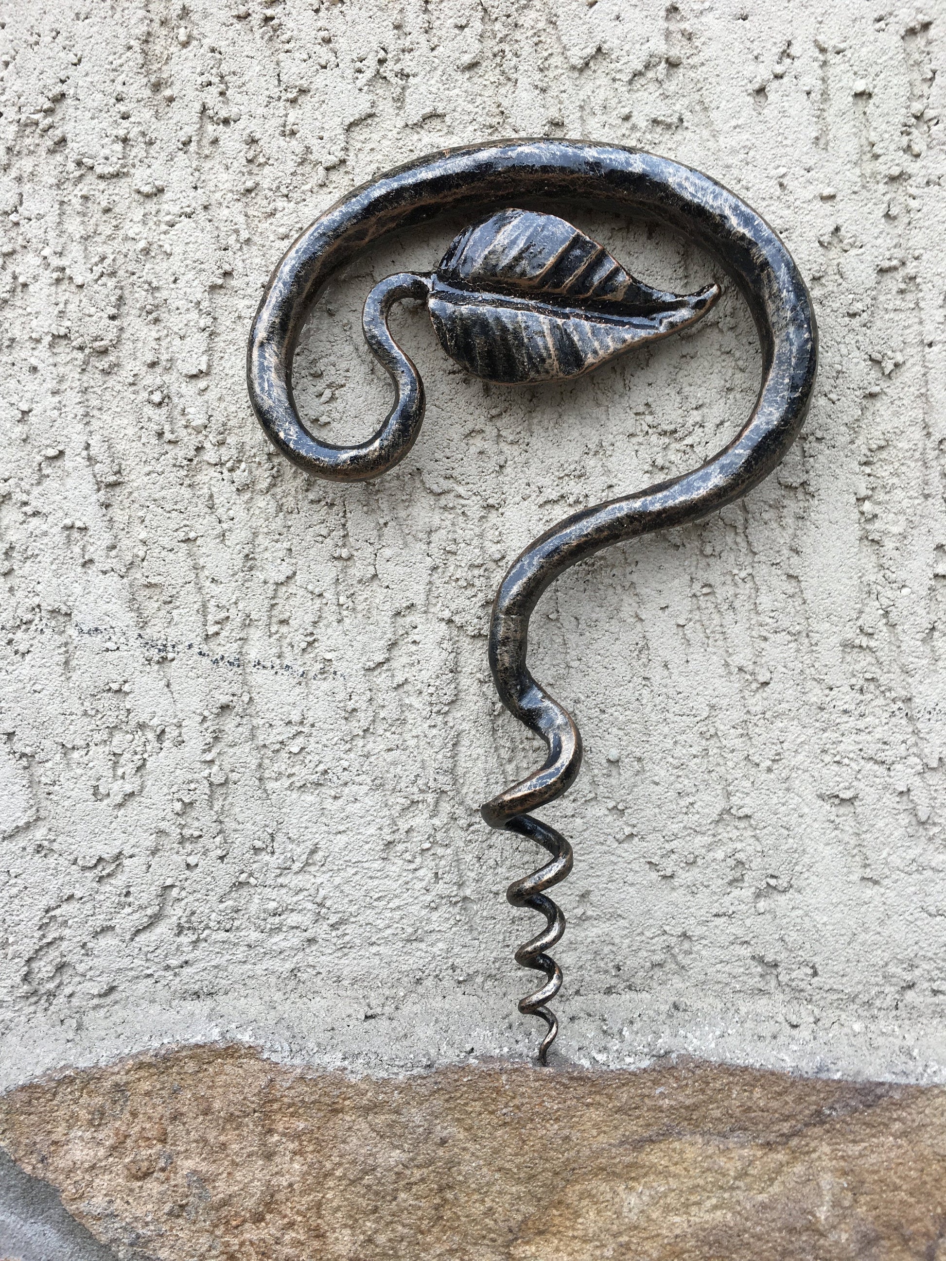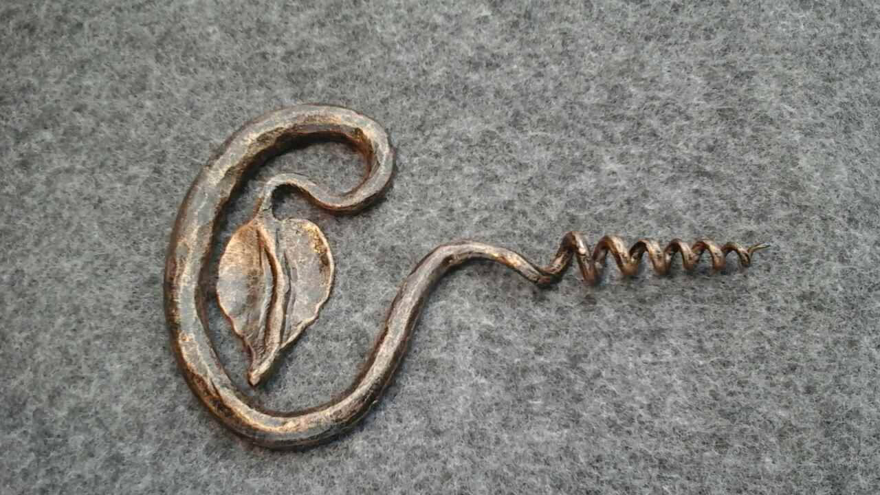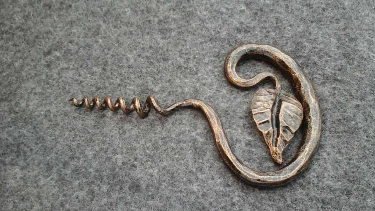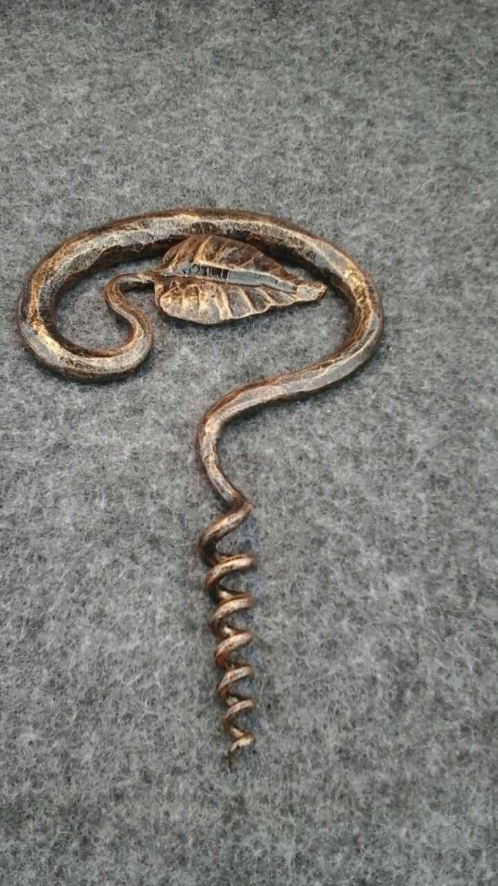 Here is a forged hand made corkscrew (with a leaf) which gives much more beauty to your home and outlines its interior features. It is handmade, art forged, art made.