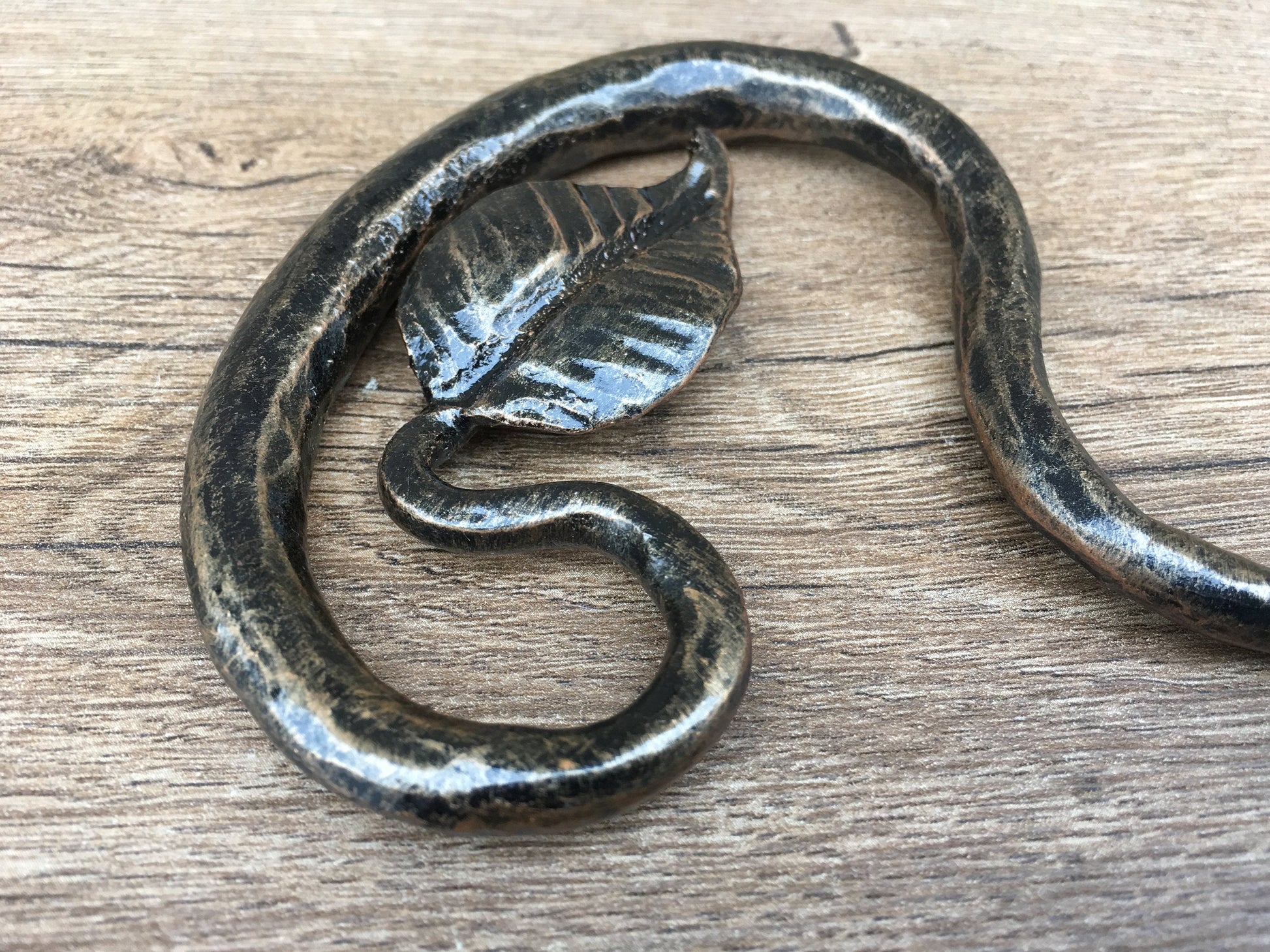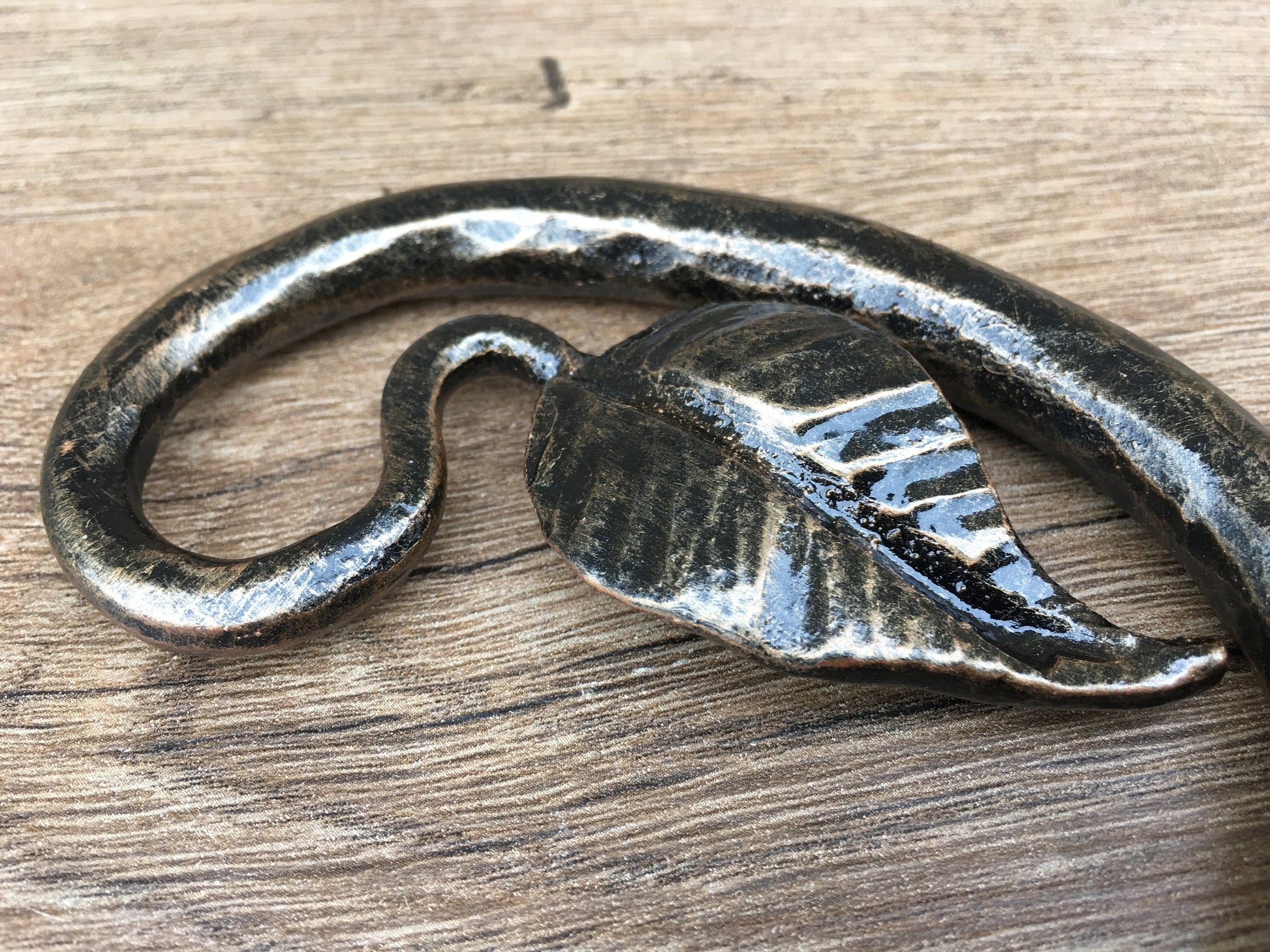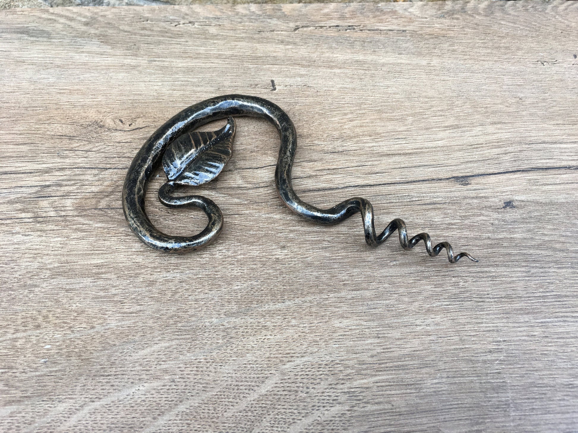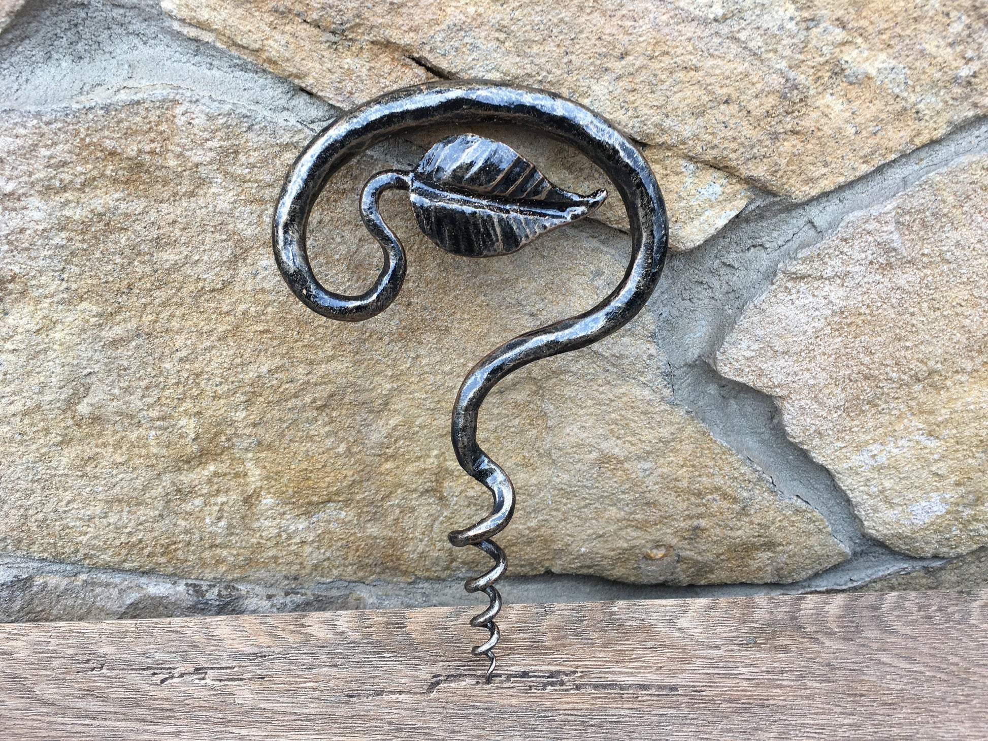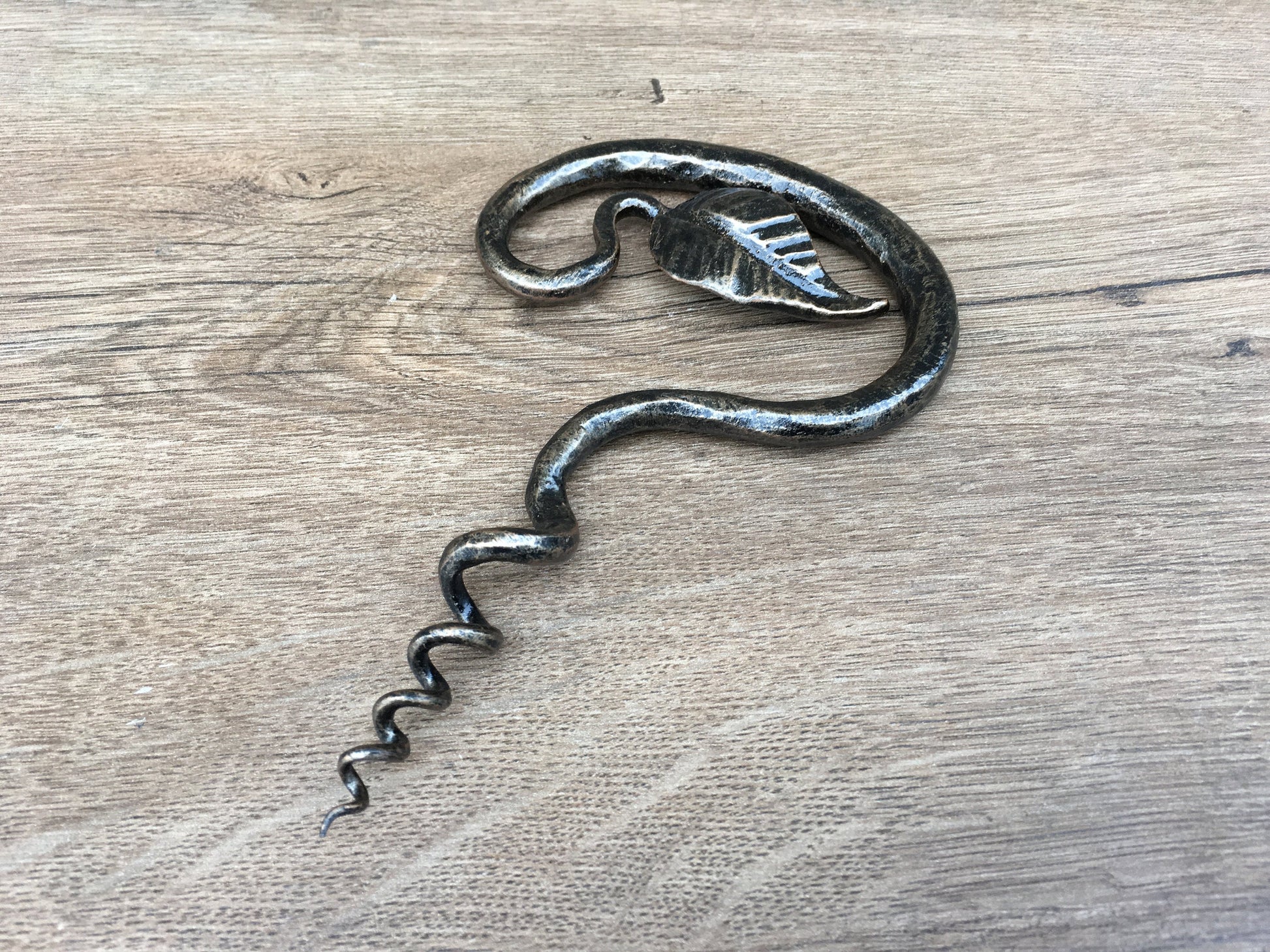 Here is a forged hand made corkscrew (with a leaf) which gives much more beauty to your home and outlines its interior features. It is handmade, art forged, art made.