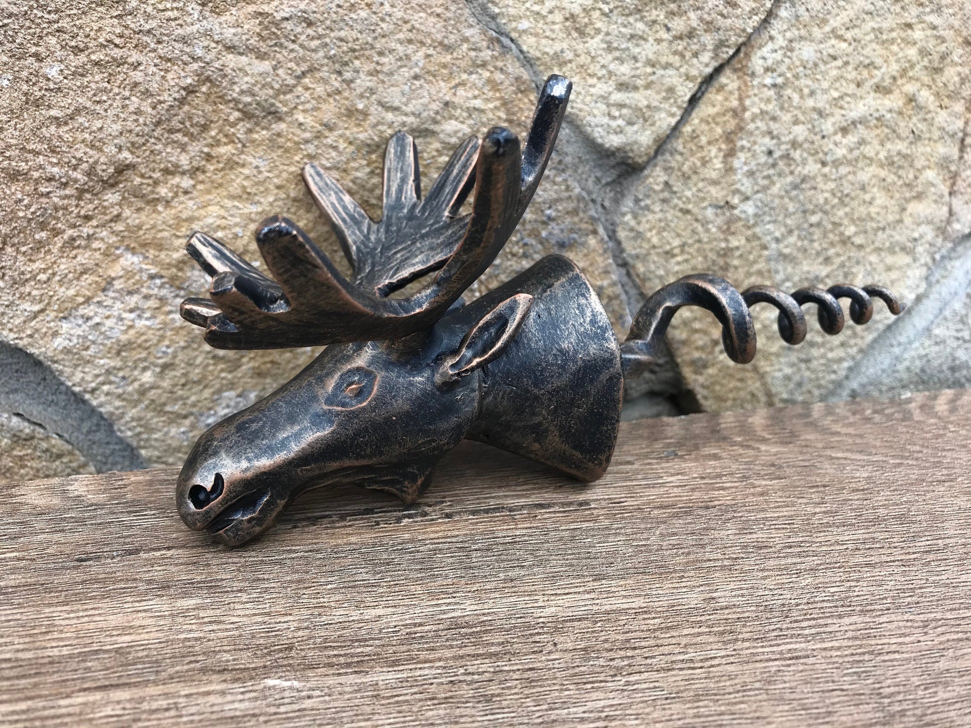 Corkscrew, cork screw, moose, antlers, moose decor, bottle opener, iron gift for him, wine lover gift, wine accessory, BBQ gift,kitchen gift