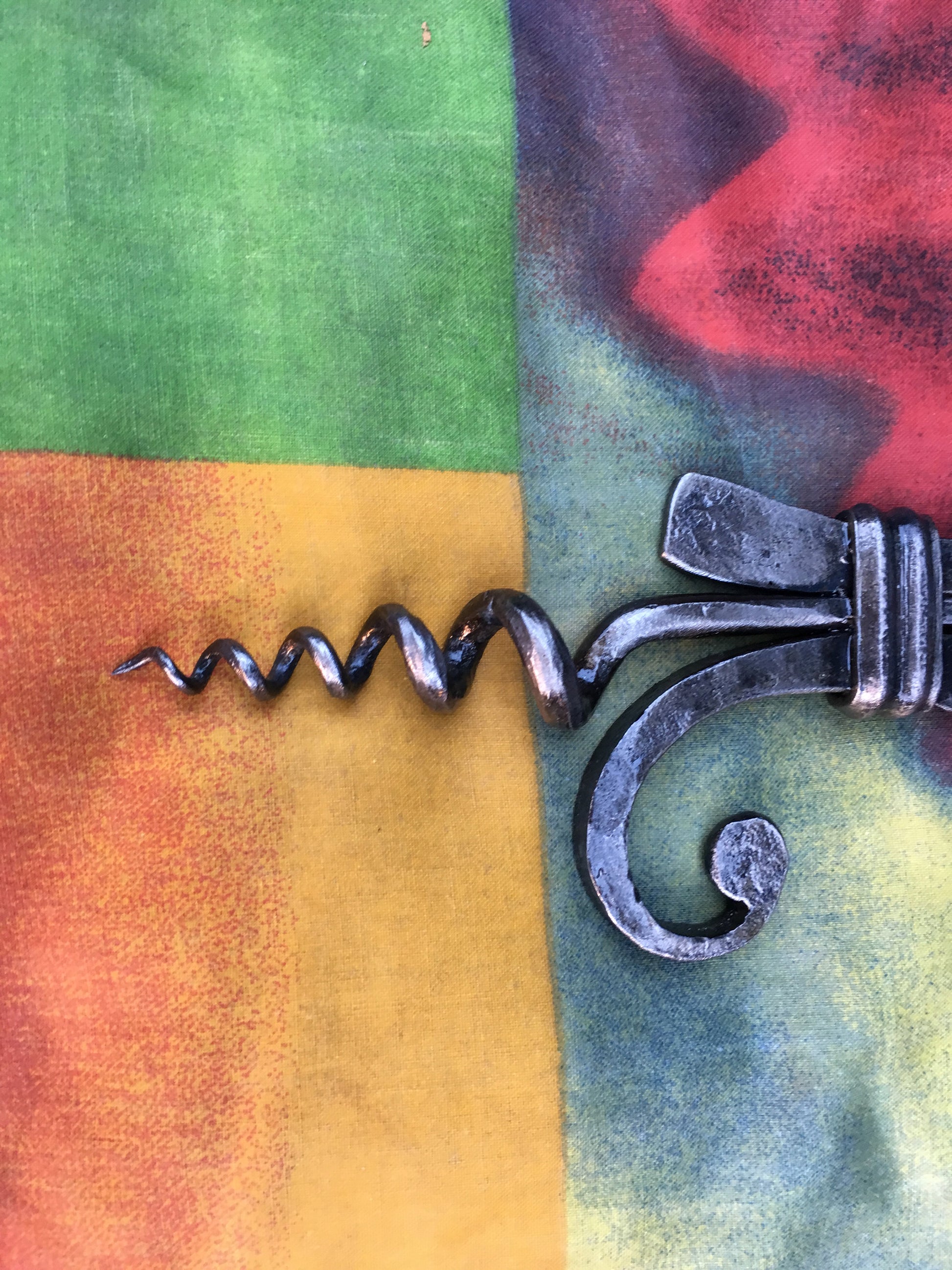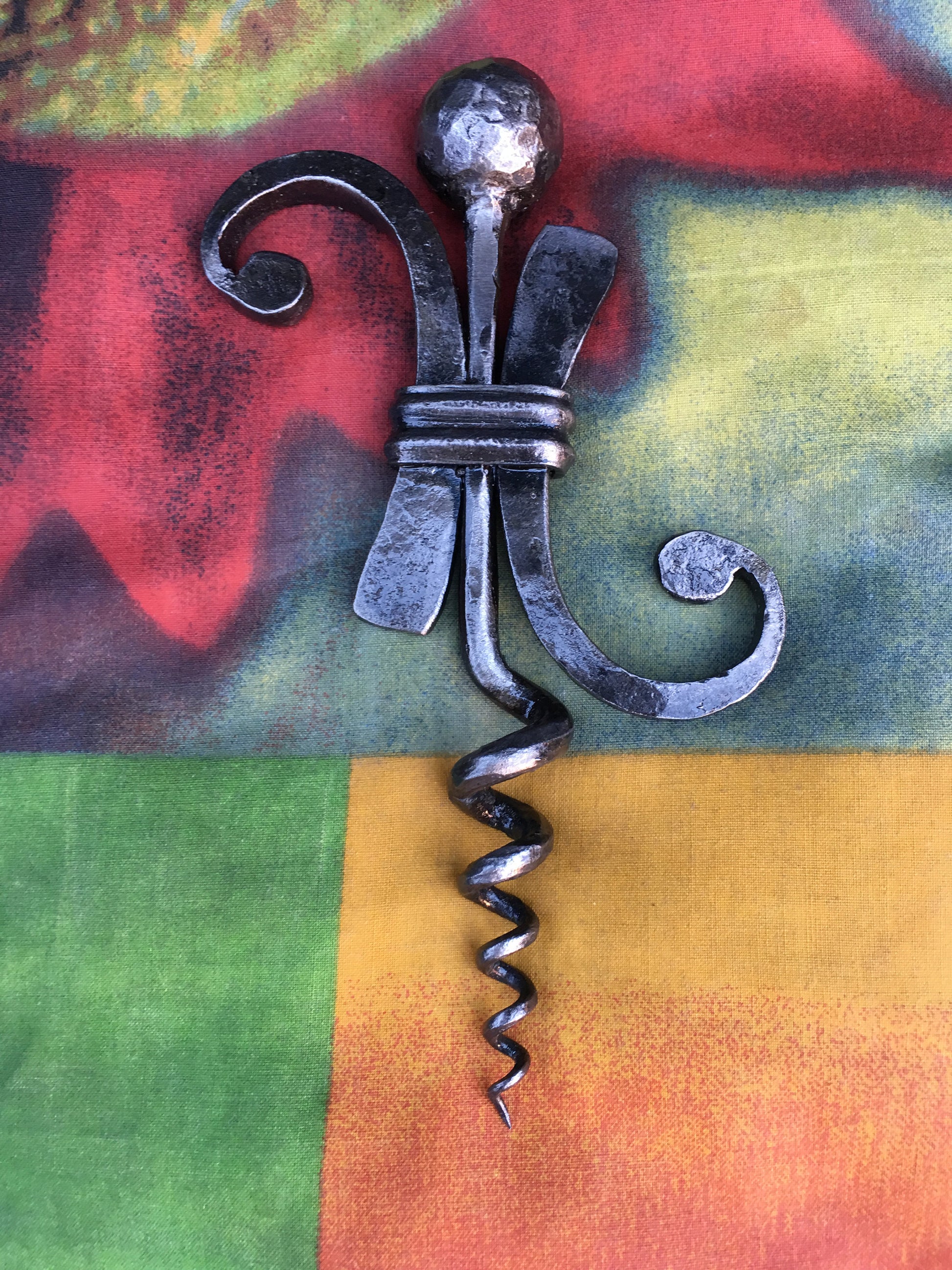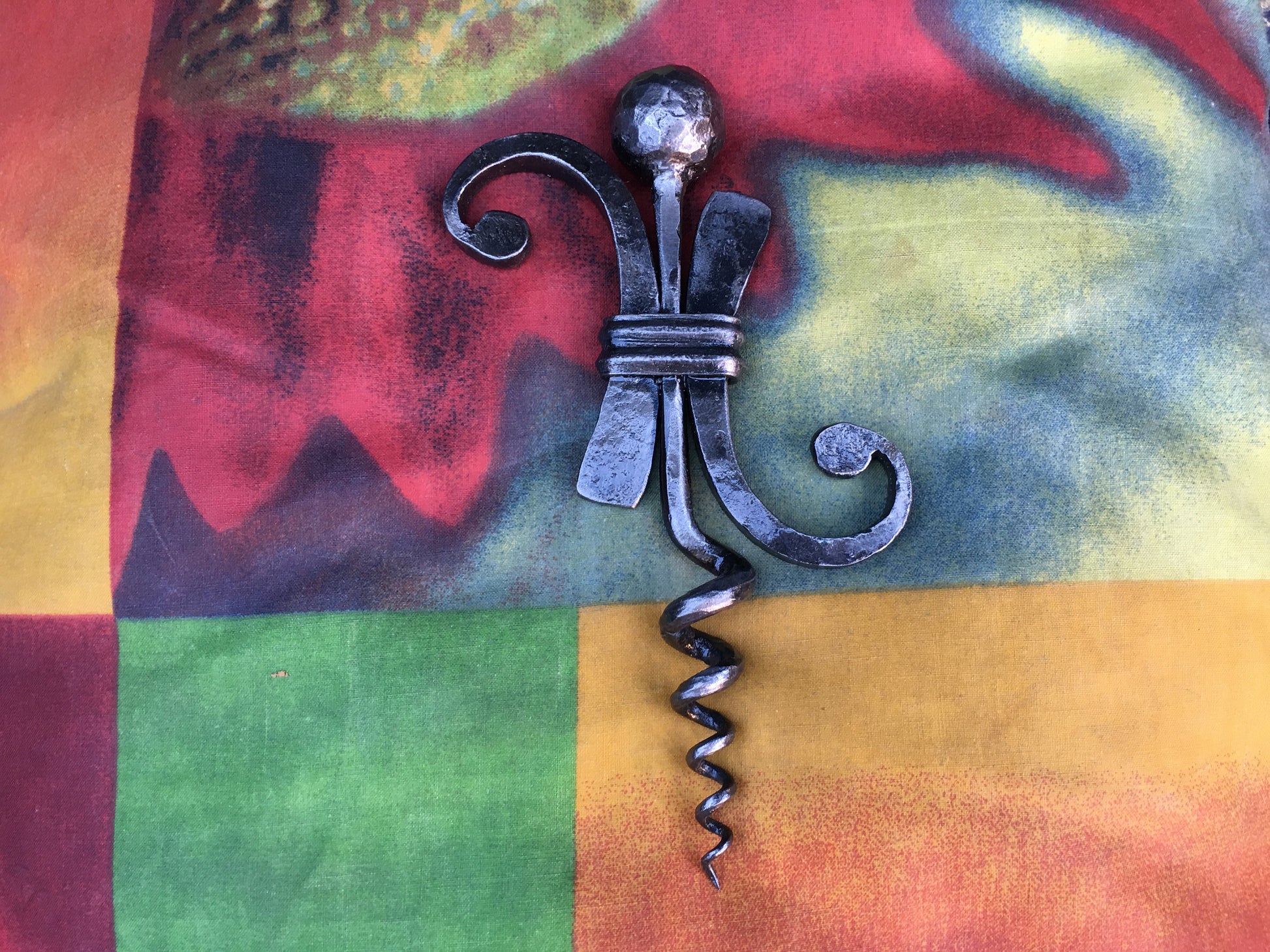 Here is a hand forged corkscrew in a very nice view which gives much more beauty to your home and outlines its interior features. It is handmade, art forged, art made.