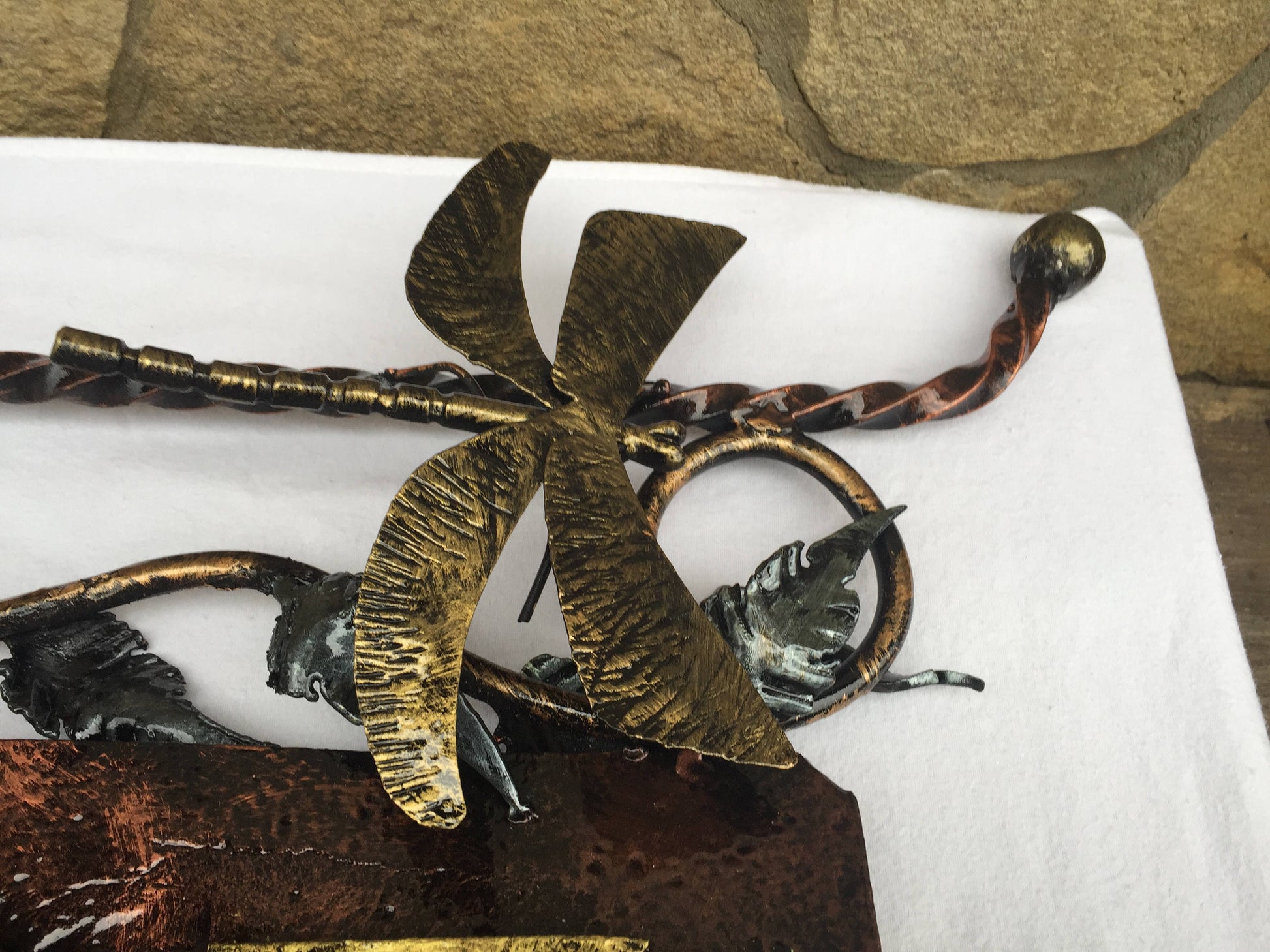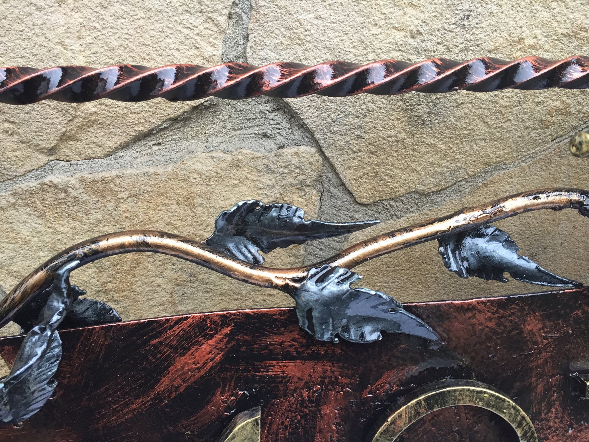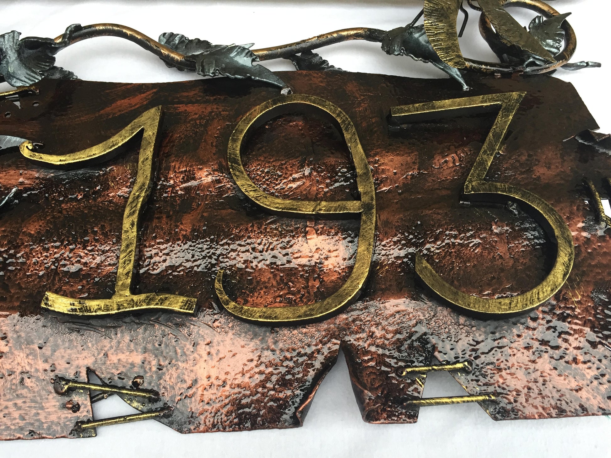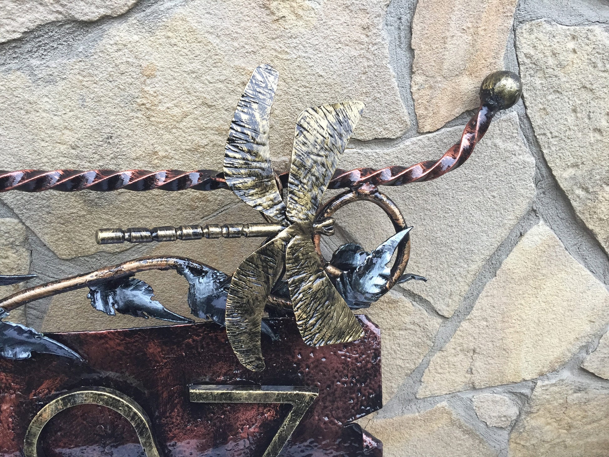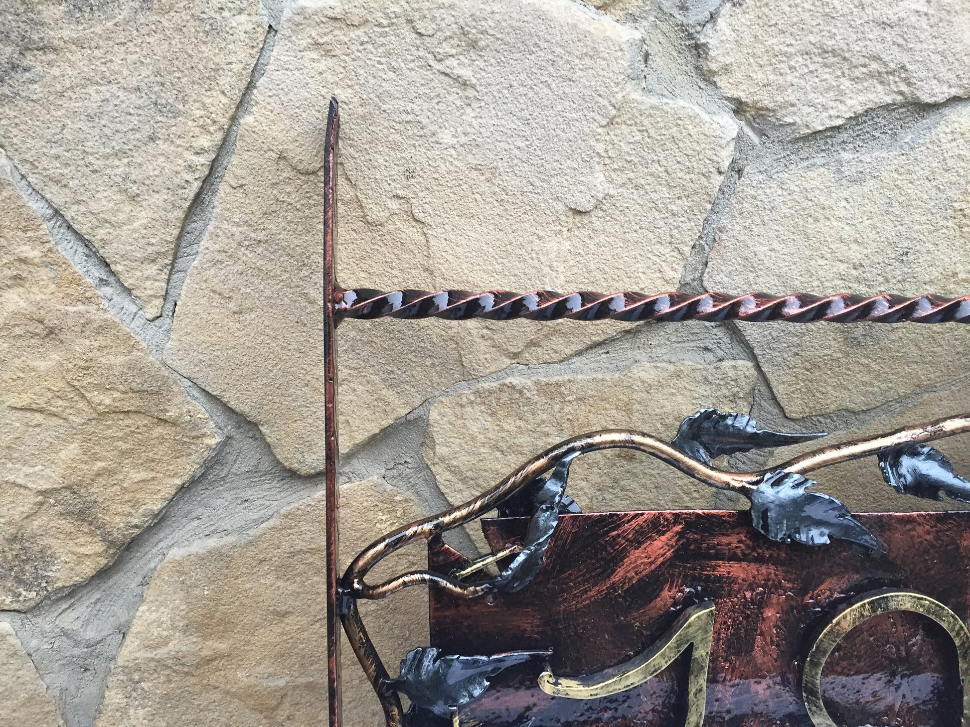Here is an address sign decor which gives much more beauty to your house and outlines its the exterior features. It is done in a view of a branch with leaves. In some parts it is torn and needled - looks very decorative. It is handmade, art forged. It is a functional piece of art! You will be unique with such an address plaque!
