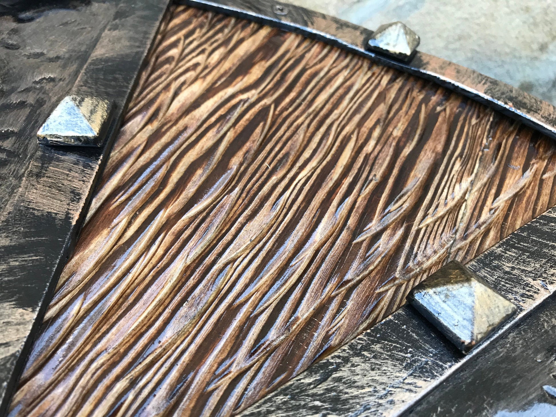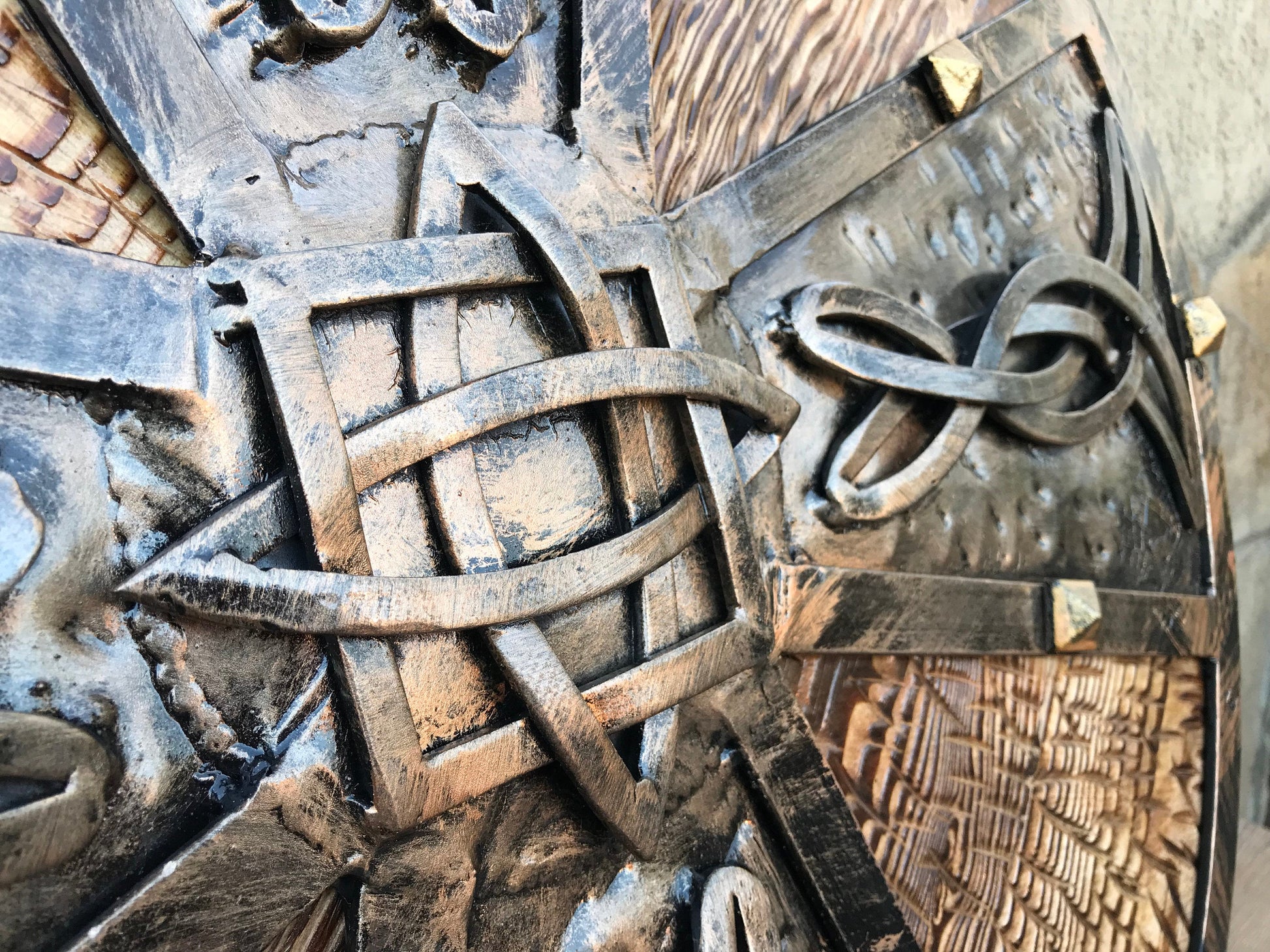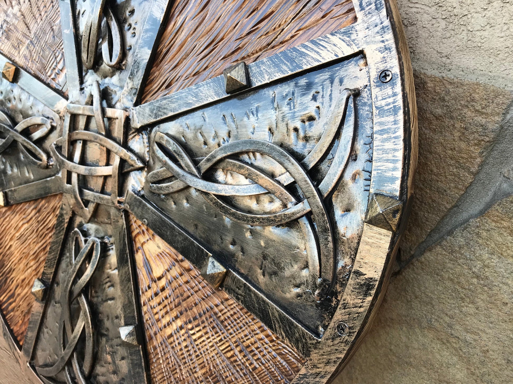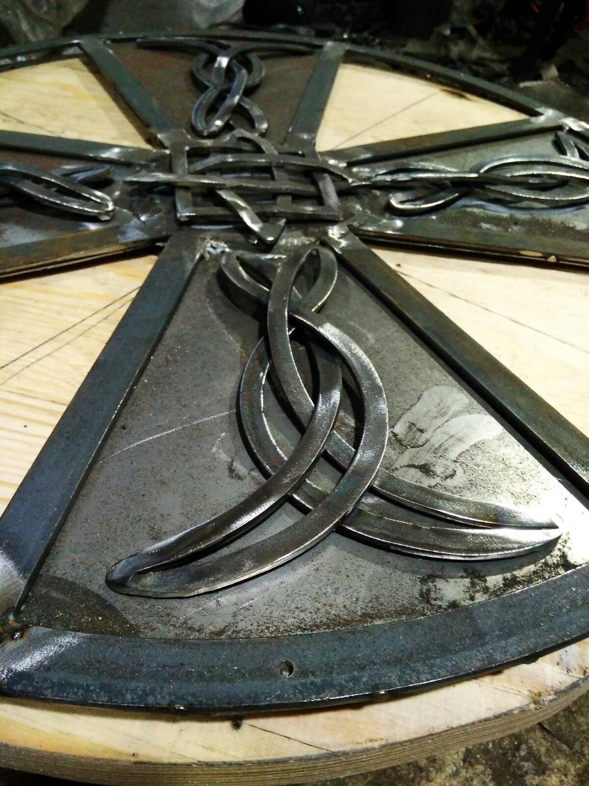 Looking for an unusual hand crafted shield? Here it is! A shield with hand forged elements (Celtic knots).
