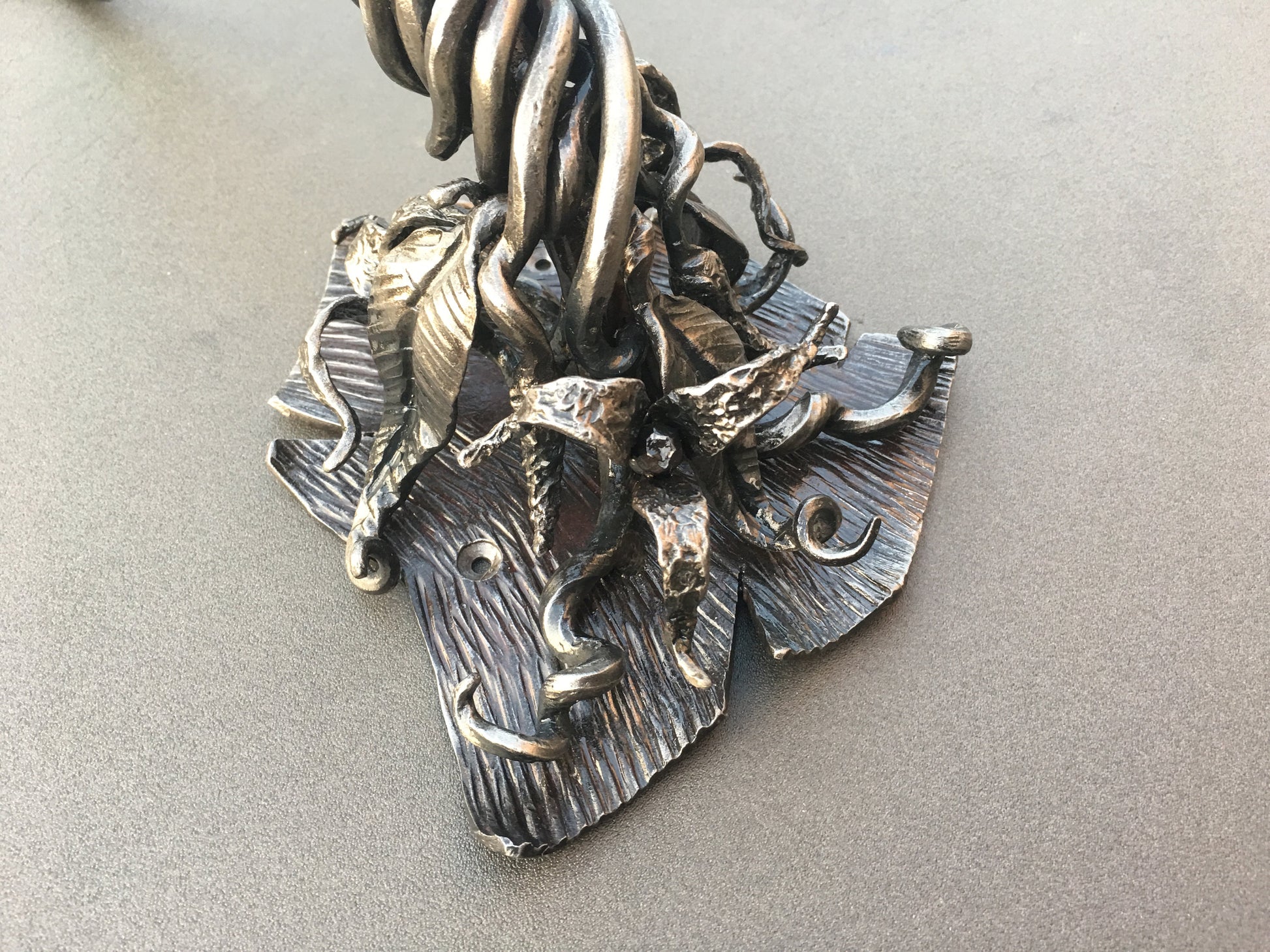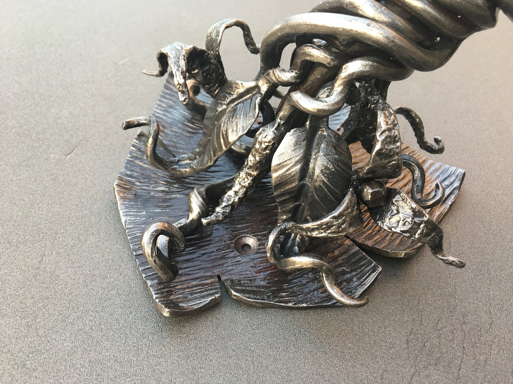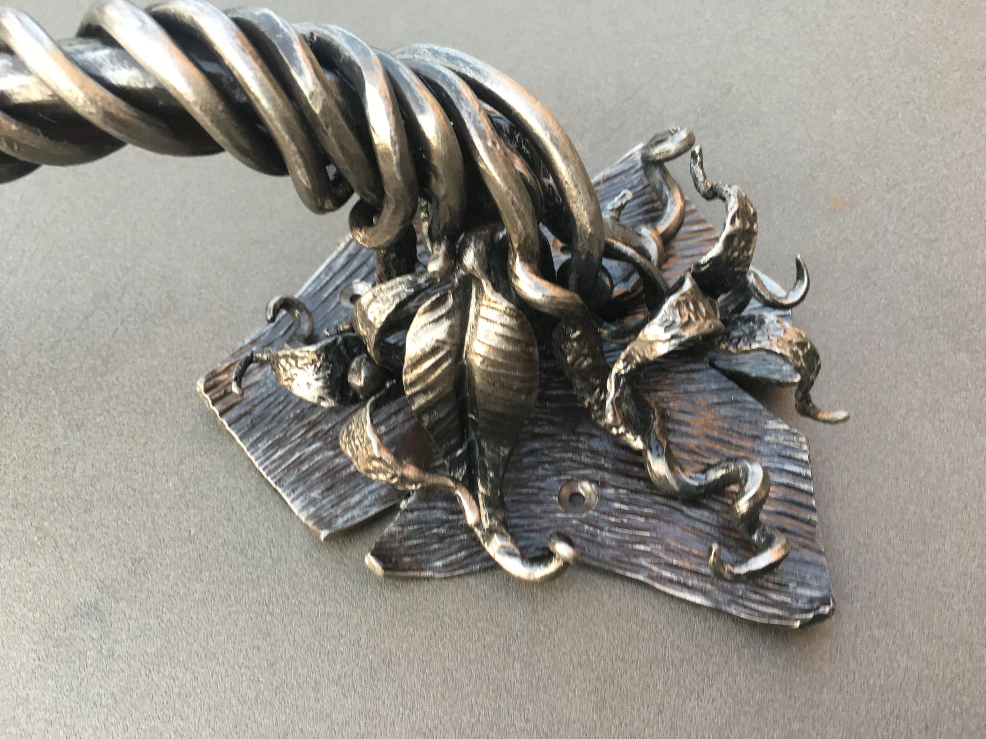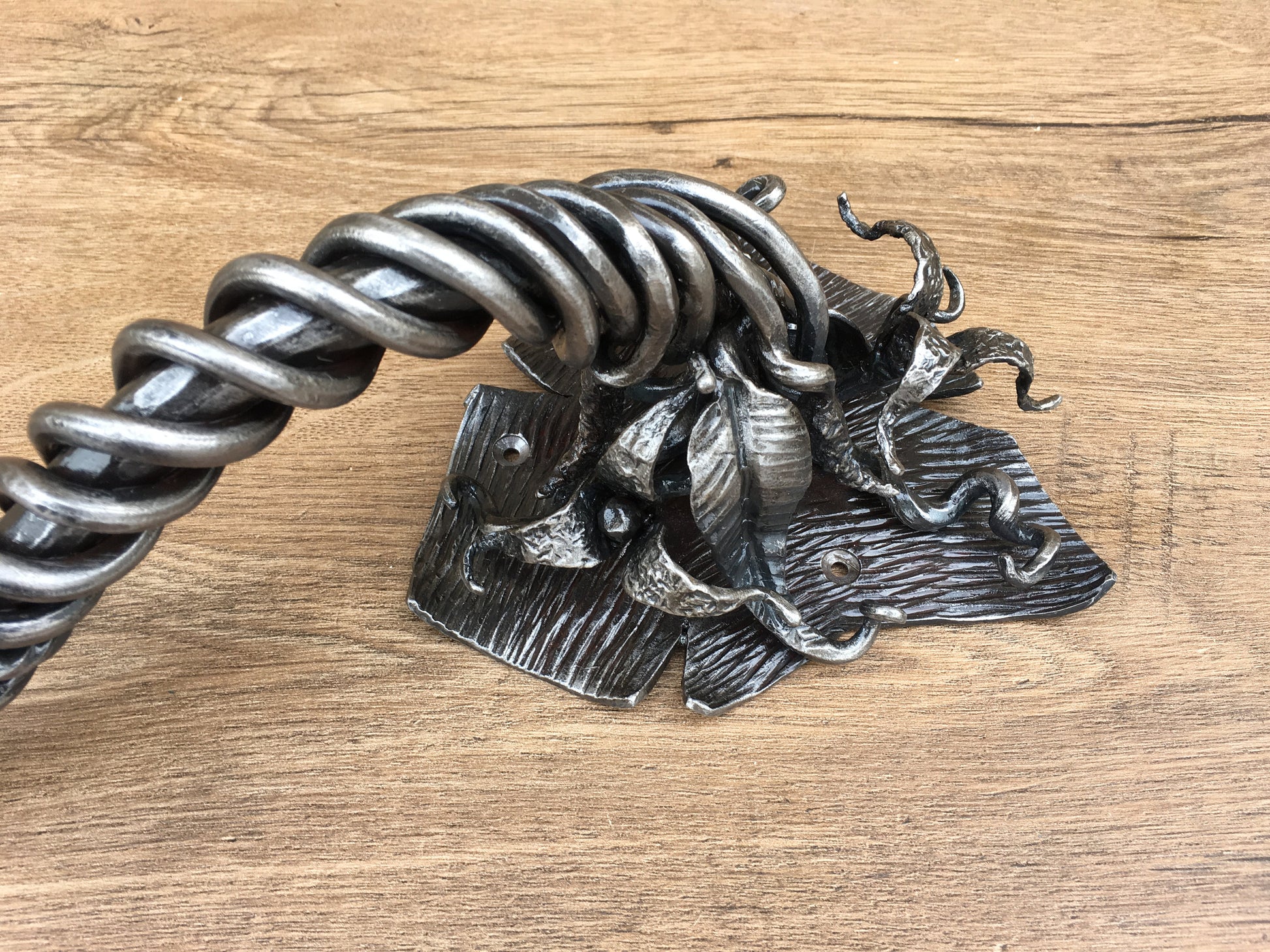 Here is a hand forged door handle in a view of a branch with leaves and catkins, small flowers which will give much more beauty to your home and outlines its exterior/interior features. It is handmade, art forged. A functional piece of art!