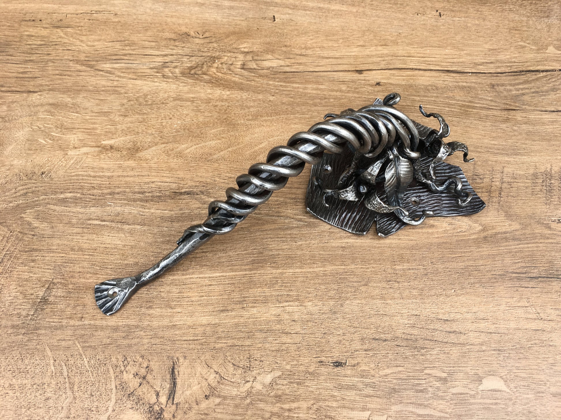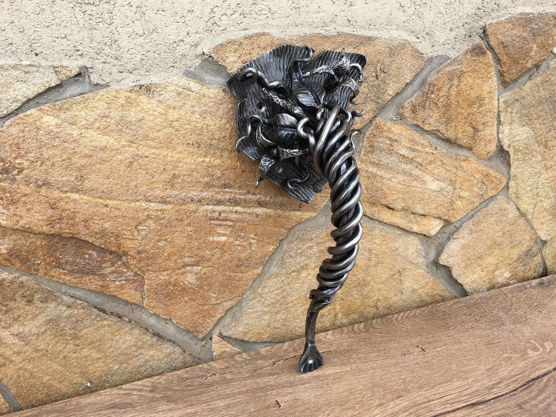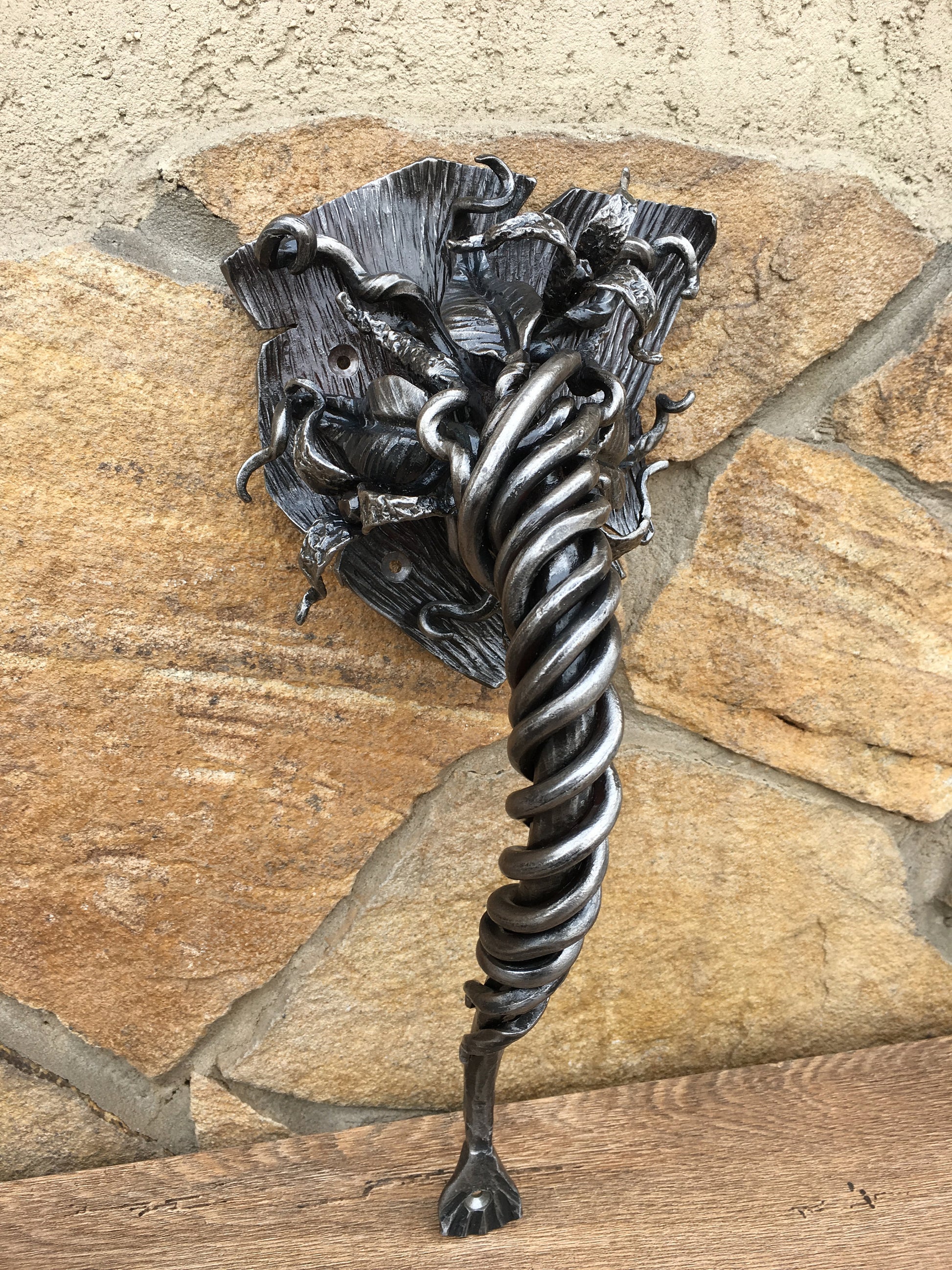 My Fine Art custom door pulls are created from labor intensive tried and tested techniques. Each custom pull is fired by coal and anvil hammered into shape by the hands of my master blacksmiths. All of my custom door handles are made from solid hand forged wrought iron with a natural patina (I never use faux paint or power coating). Available in any size, style, and finish, my Custom Door Pulls can be custom fabricated in any design you can dream up. Order from my online listings the most suitable door pull for further customization or send in your own drawings or photos or send me the preferred description to get started. Order your custom door handles blacksmithed to fine art standards wrought iron, knobs, knockers and door pulls in any style and design – limited by only your imagination – from “Forged Commodities”. Custom designed door pulls and handles created by the hands of Ukrainian craftsmen to age old black smithing tradition. “Dream” designer door pulls, knockers & custom handles by “Forged Commodities” – we ship worldwide.