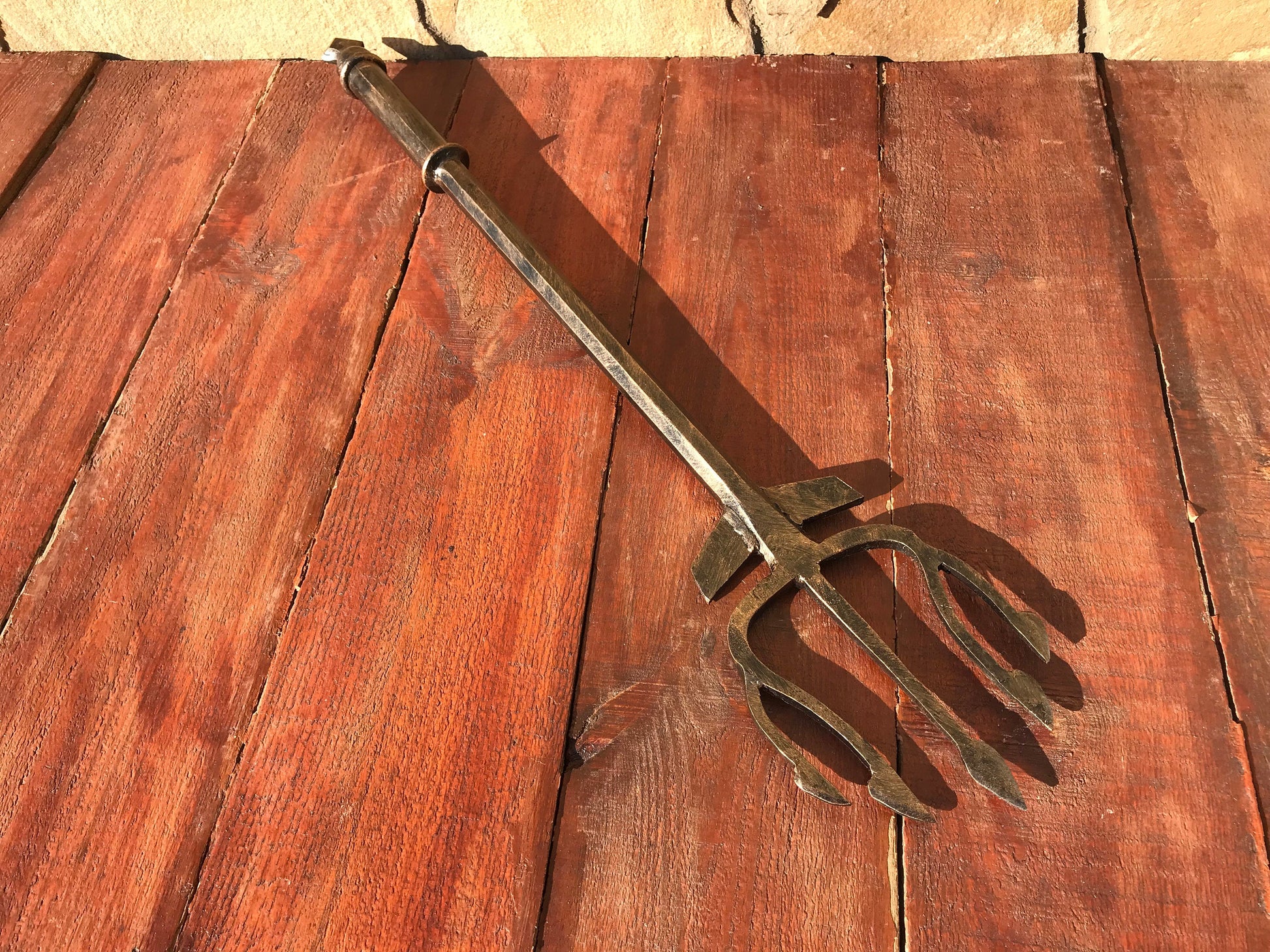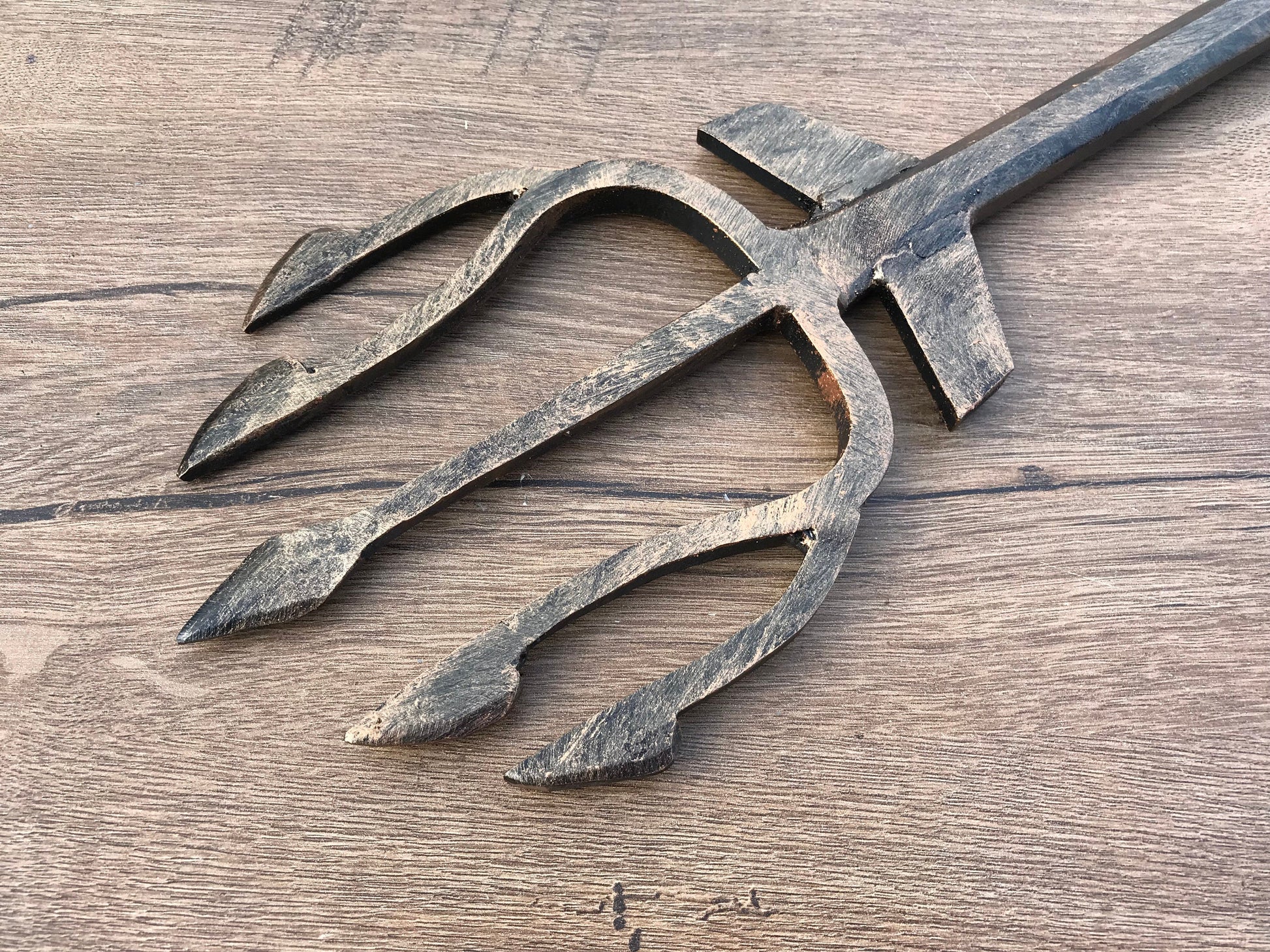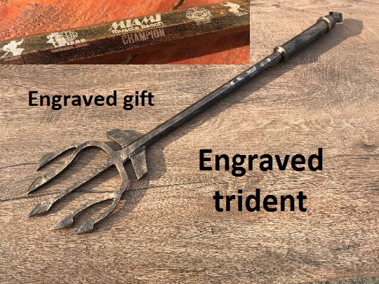 Here is a hand forged trident with an engraved handle. You can use it in a cosplay or as a home decor.