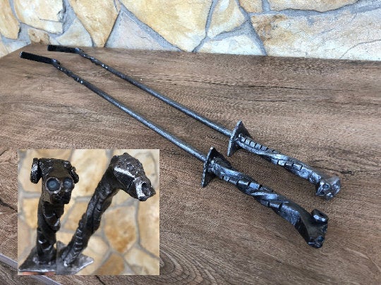 Are you looking for a nice gift for a man or a functional piece of art for your home? Here is a set of 2 hand forged fire pokers.