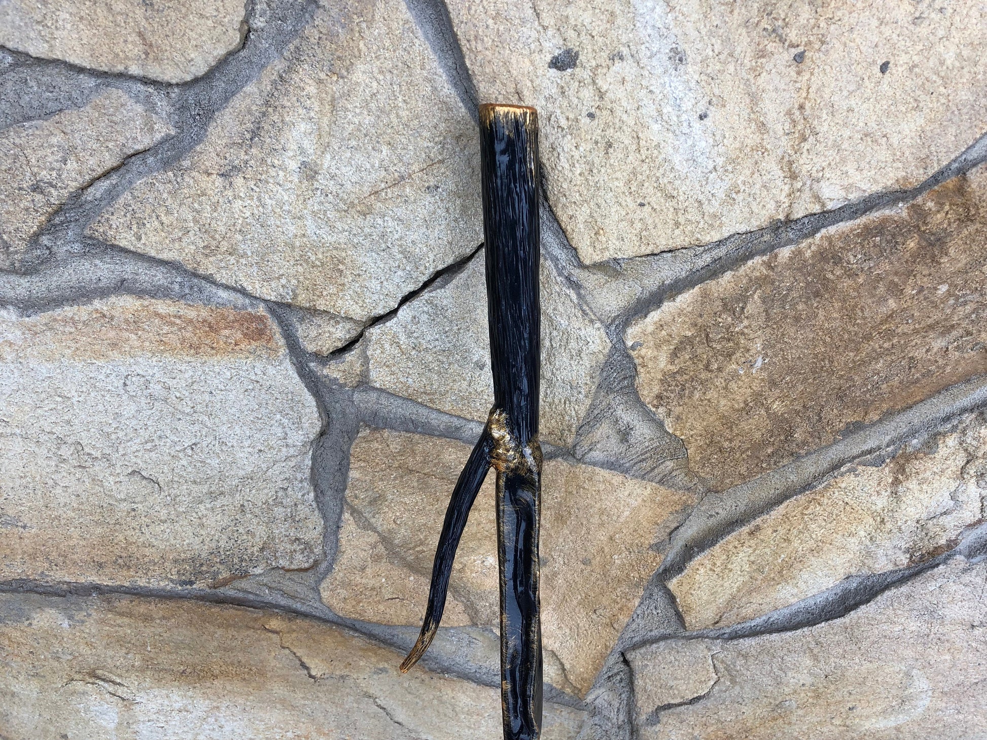 A forging art made and very elegant forged fire poker. It can be used for open fires, log burners and fire pits.