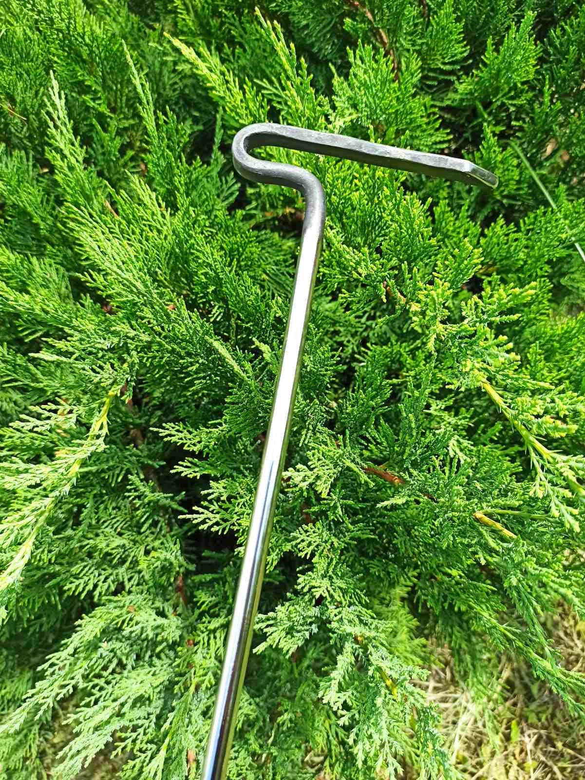 A forging art made and very elegant hand forged fire poker made of stainless steel. It can be used for open fires, log burners and fire pits.
