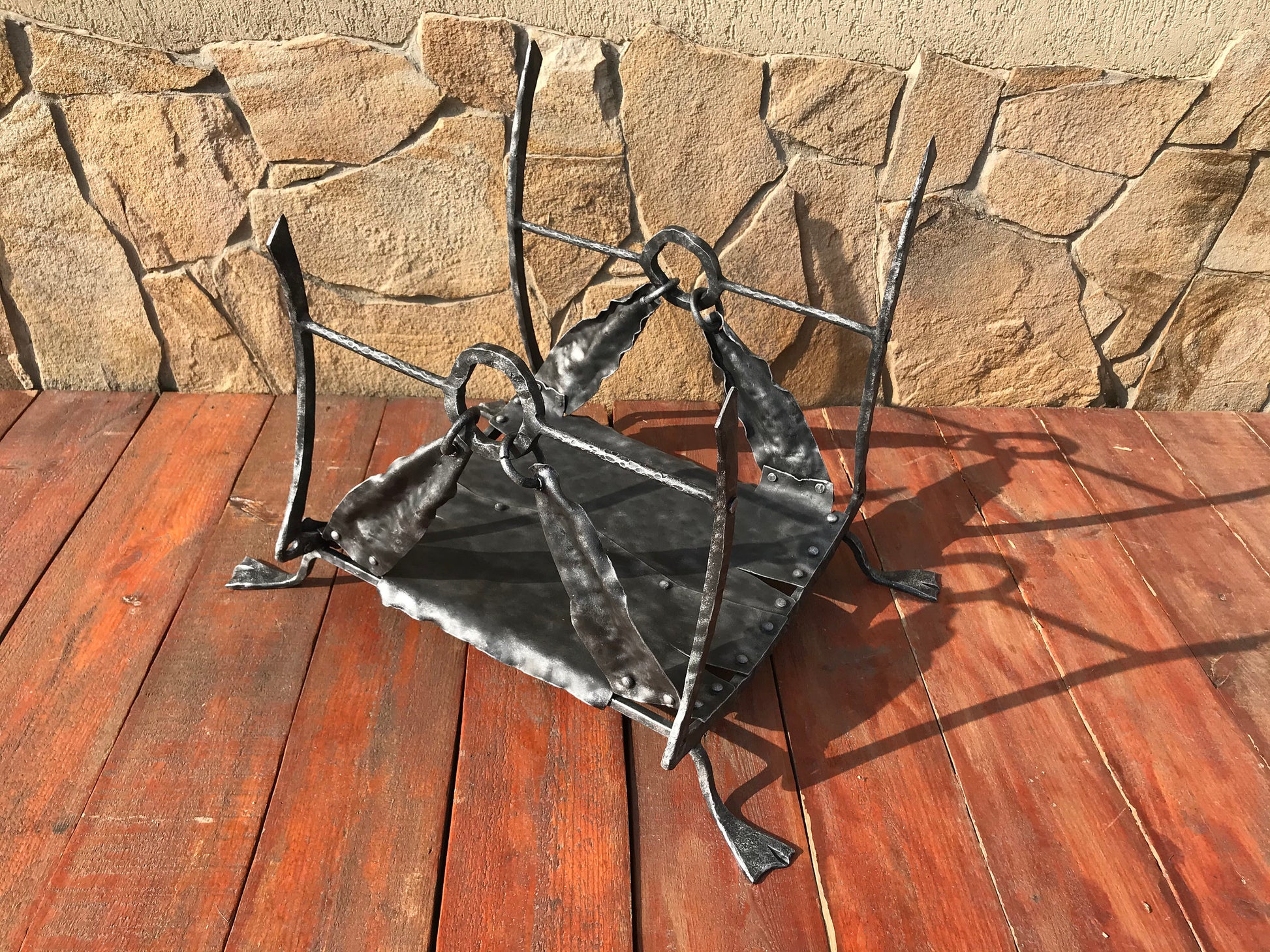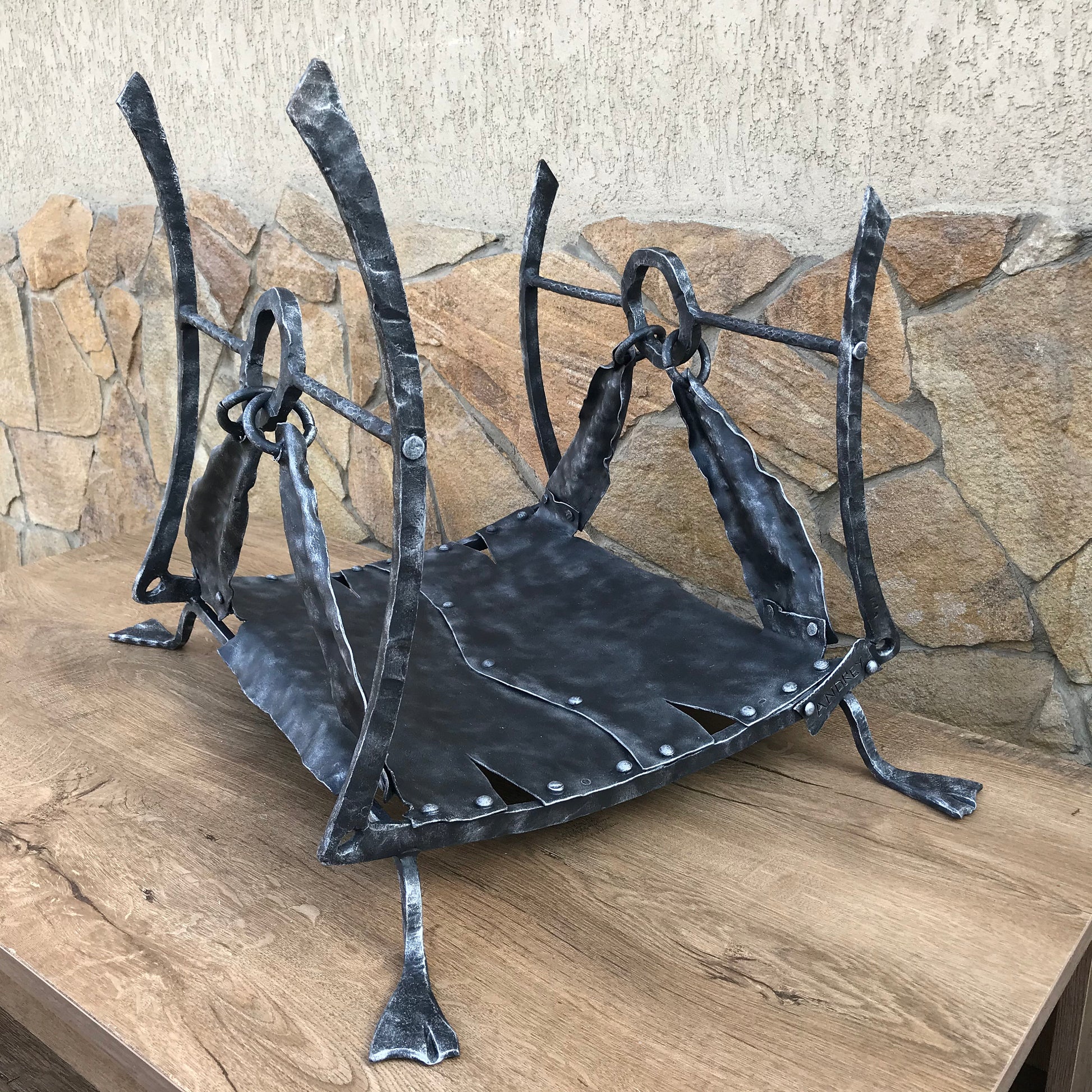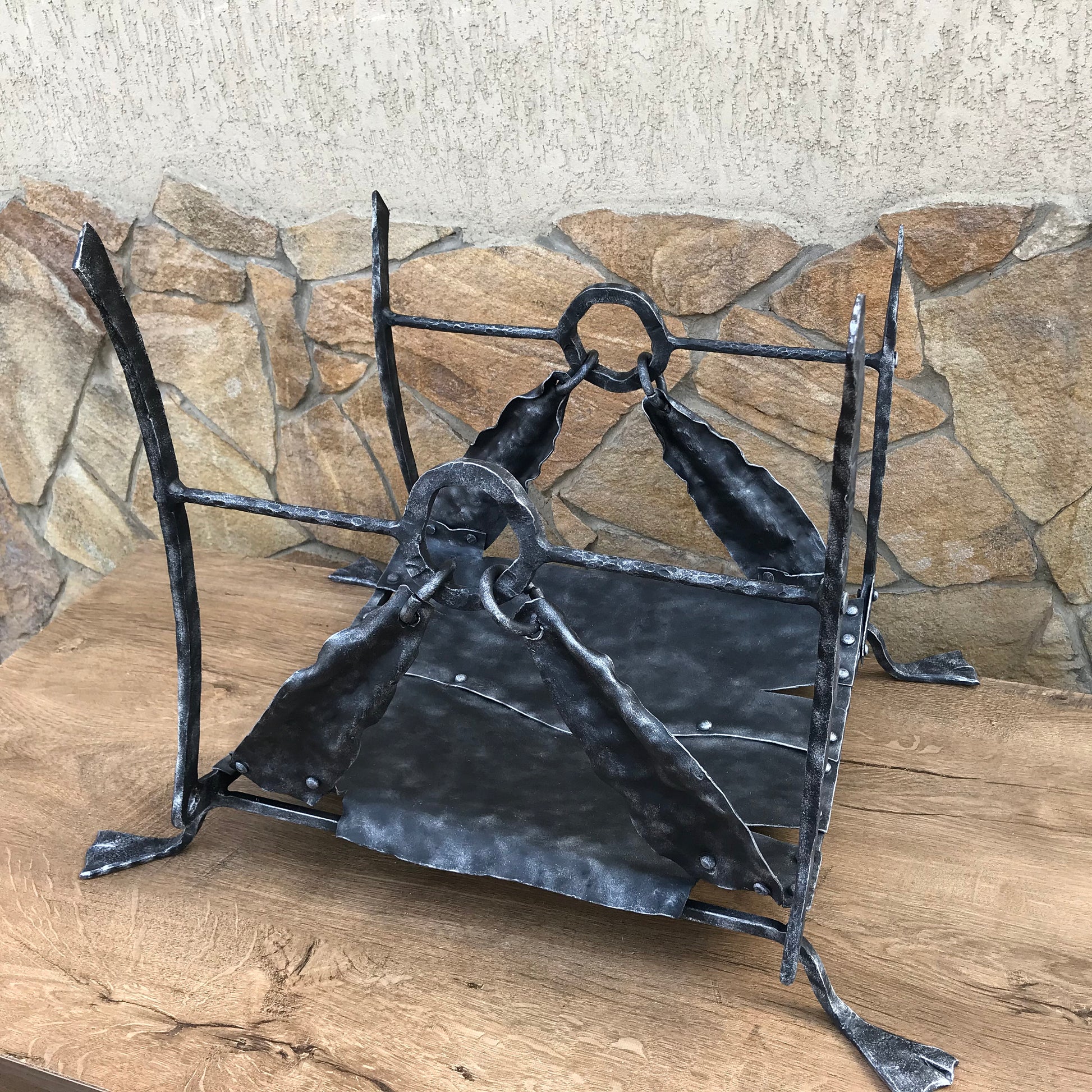 Are you looking for a nice gift? for a nice functional piece of art? Here is a hand forged firewood holder (log rack) in a medieval style.