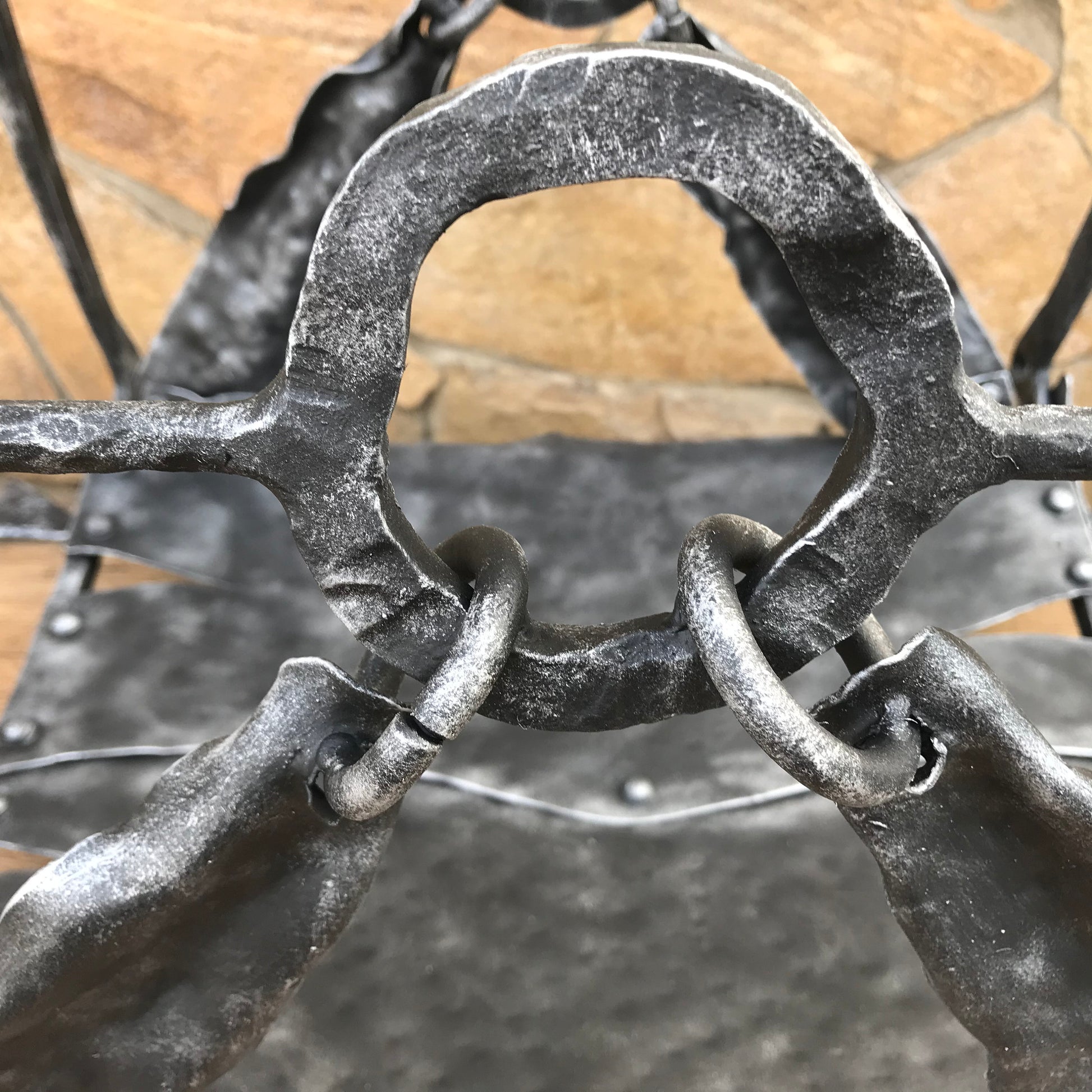 A lovely decorative hand forged a log holder done in the technique of the artistic forging is perfect for holding plenty of logs. It might be a good addition to your medieval style man cave / fireplace.