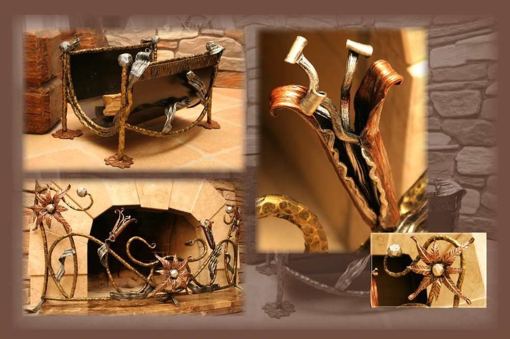 Are you looking for a nice fireplace grate? firewood holder? for a nice functional piece of art? Here is a set of 2 pcs: fireplace grate and firewood holder in the same style with unusual flowers. They look awesome.