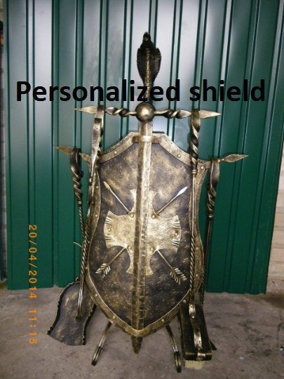 Fireplace tools, medieval shield, medieval viking, fireplace tool set, medieval clothing, fireplace, fireplace decor, LARP armor, SCA armor