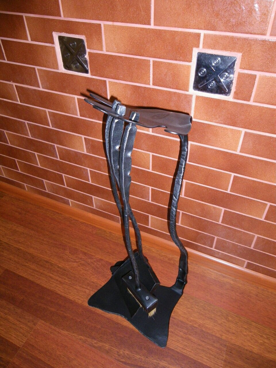 Fireplace forged accessories set can be added additionally (a nice poker, shovel, brush and a stand to hang them all), if needed.