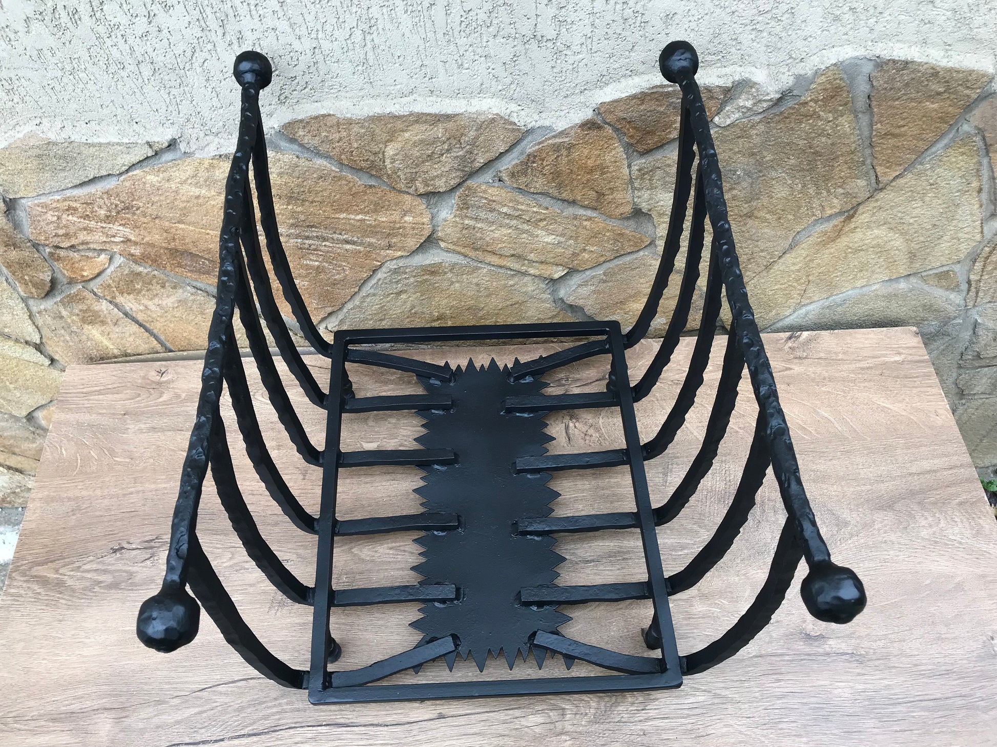 Firewood holder can be not only usual firewood rack but a masterpiece which decorates your home and outlines the interior features of your house and a symbol of prestige, comfort and warmth. Here is a hand forged firewood holder in a rustic style. An evening at the home at a fireplace in the circle of family will help to relax, relieve fatigue, and charge you with a useful sound energy.