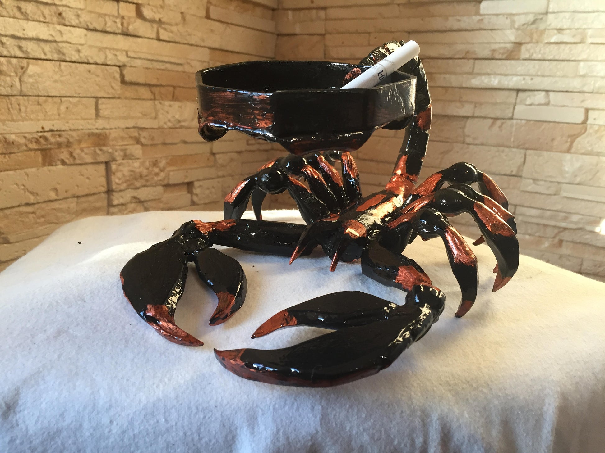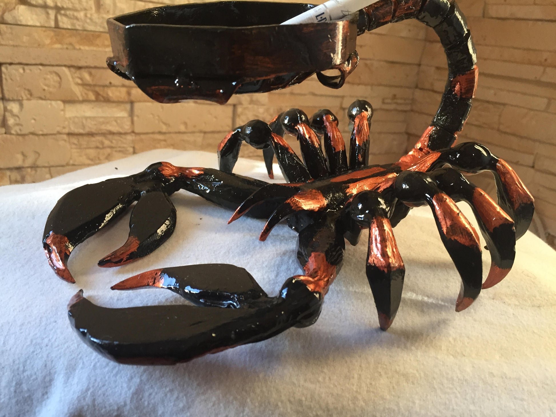 An ashtray can be not a usual ash tray but a masterpiece which decorates your house and outlines the features of your interior. Here is a forged ashtray in a style of a nice scorpion. It looks really like a real scorpion. A blacksmith handed over to this composition sharply the exact features of a real scorpion. The scorpion is very expressive with nice muscles made of steel.