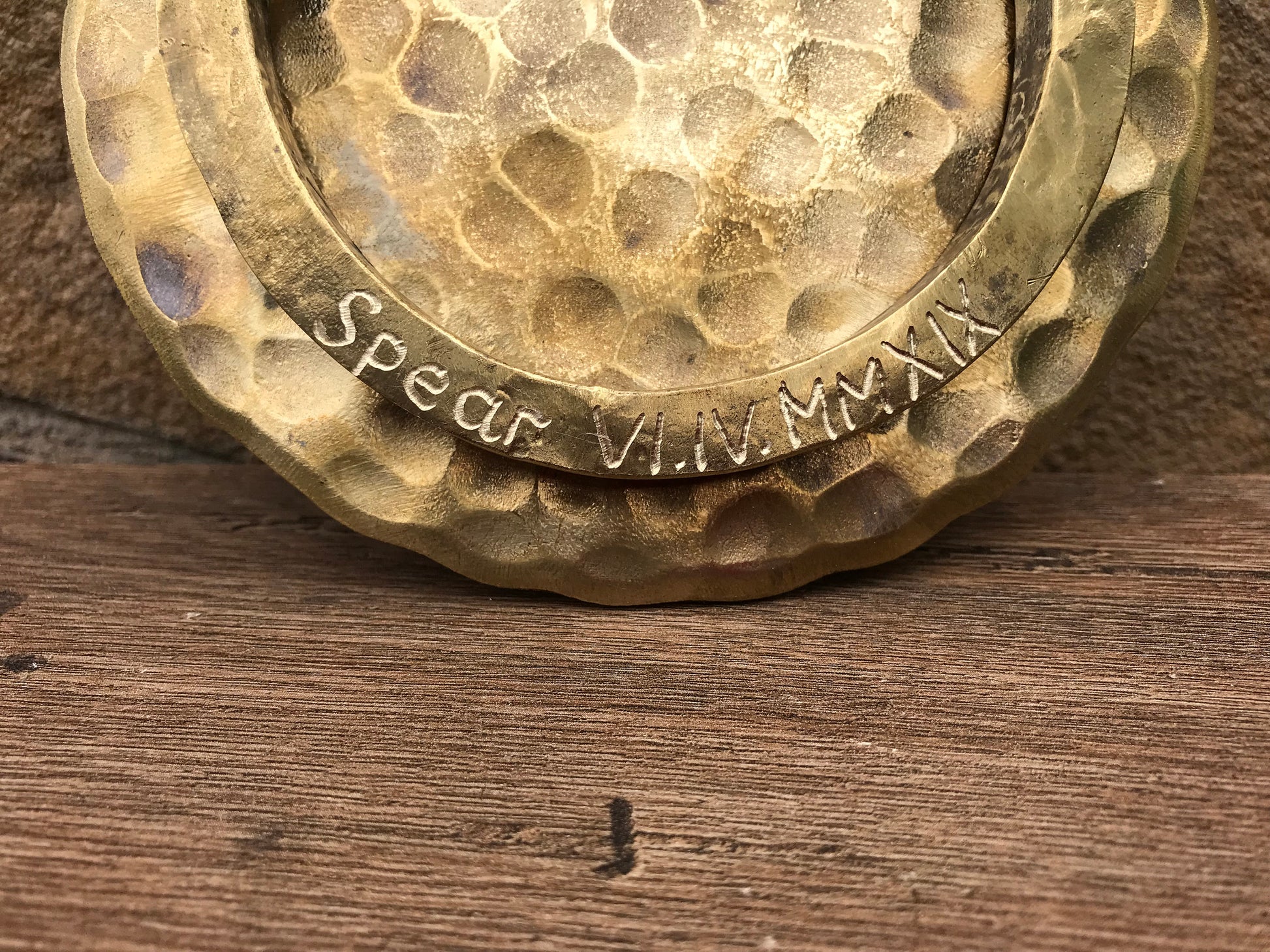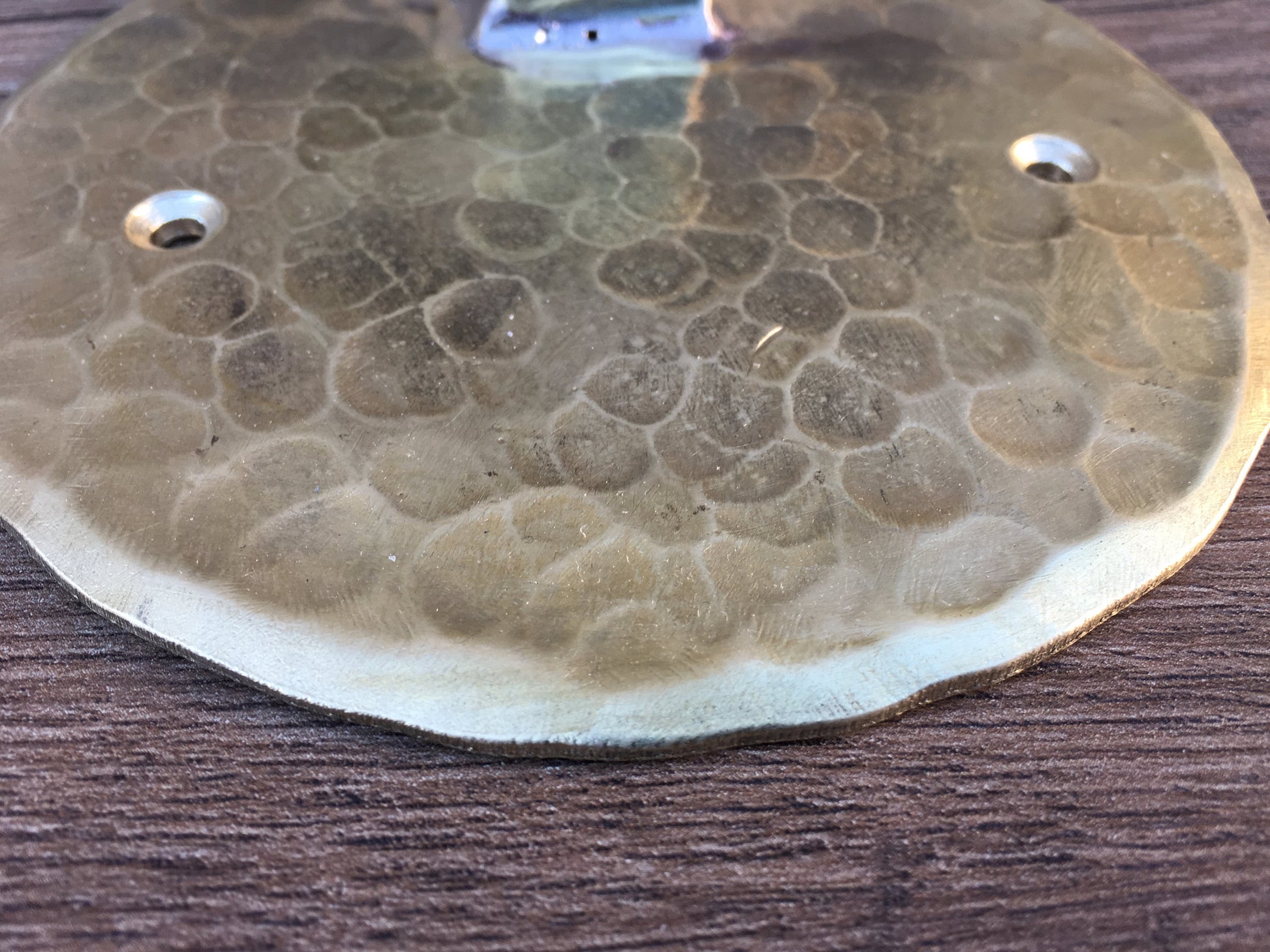 Here is a hand forged door knocker made of bronze which gives much more beauty to your home and outlines its exterior features. The door puller will not rust since it is from a bronze. Its back plate is nicely hand hammered that gives additional beauty to this item.