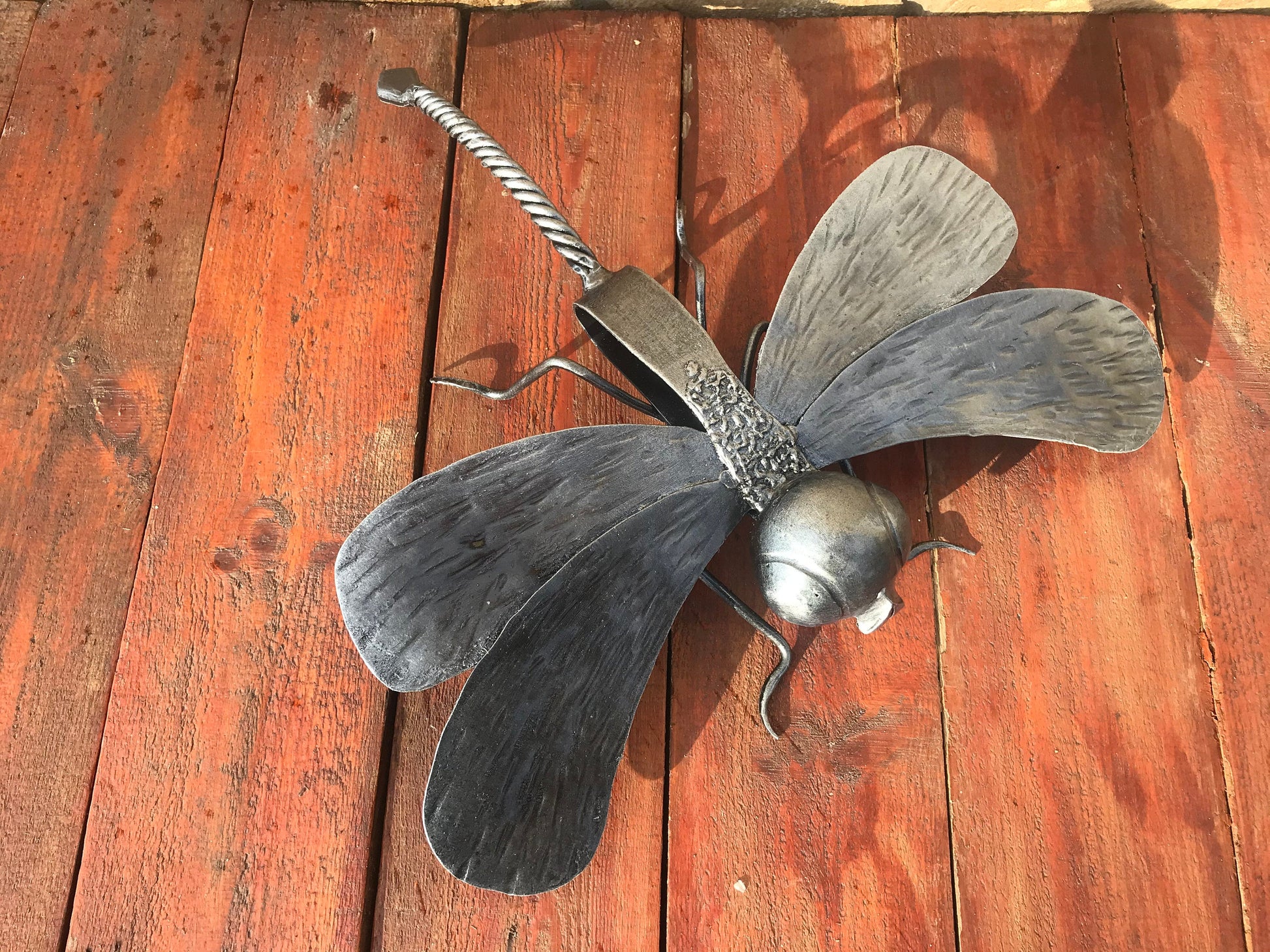 Hand forged dragonfly, dragonfly, iron gift, iron anniversary, insects, insect art, insect costume, outdoor gift, garden decor, yard art,axe