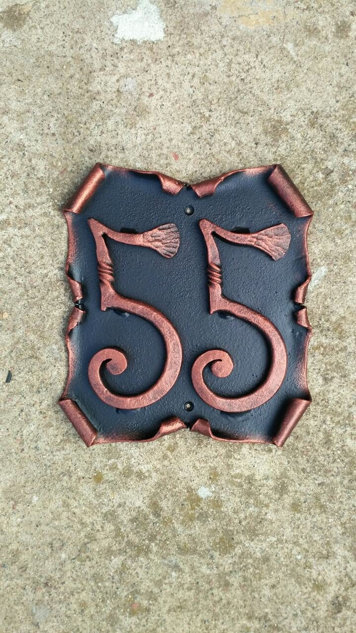 Here is a hand forged house number sign which gives much more beauty to your house and outlines its the exterior features. It is handmade, art forged.