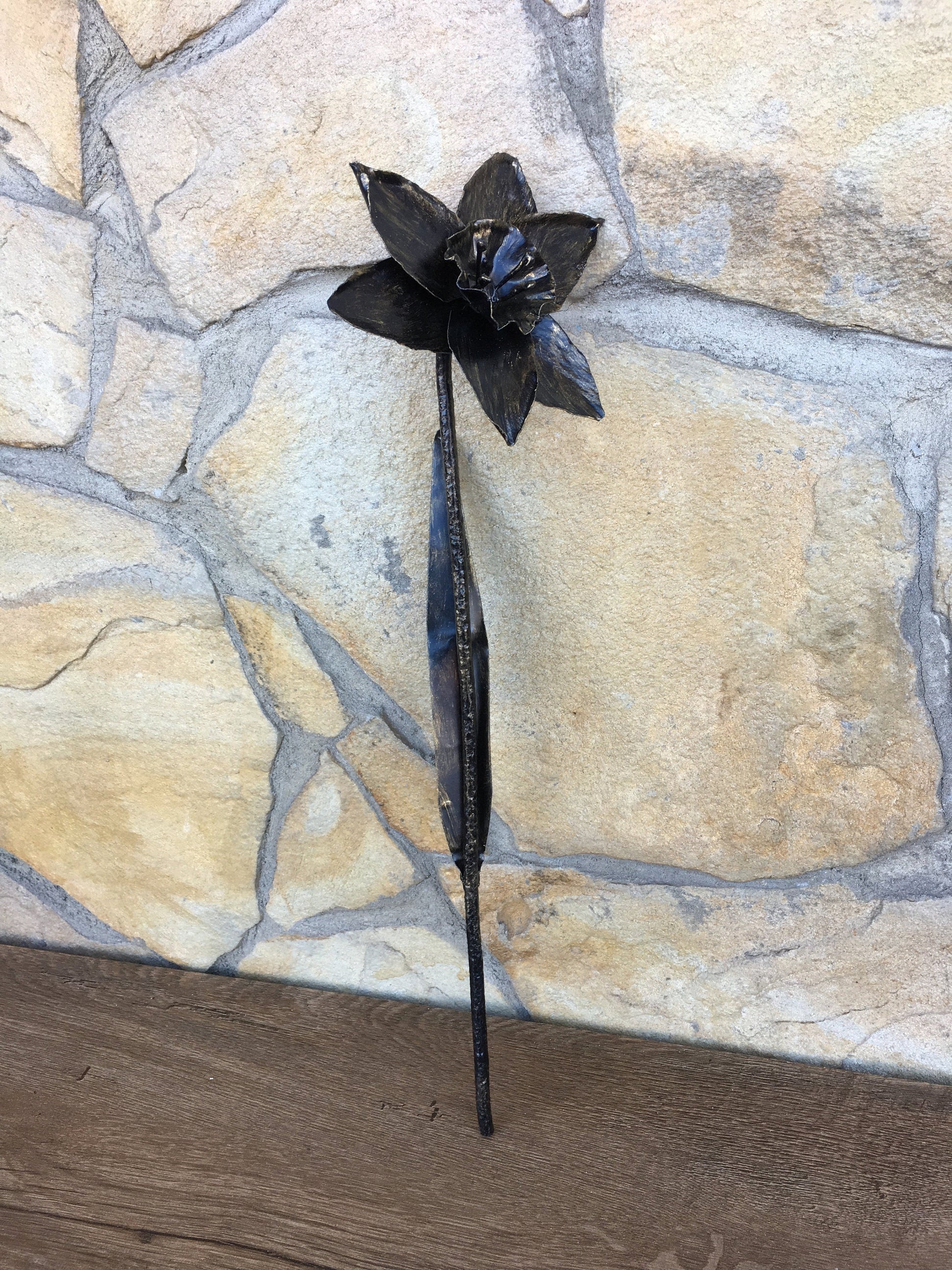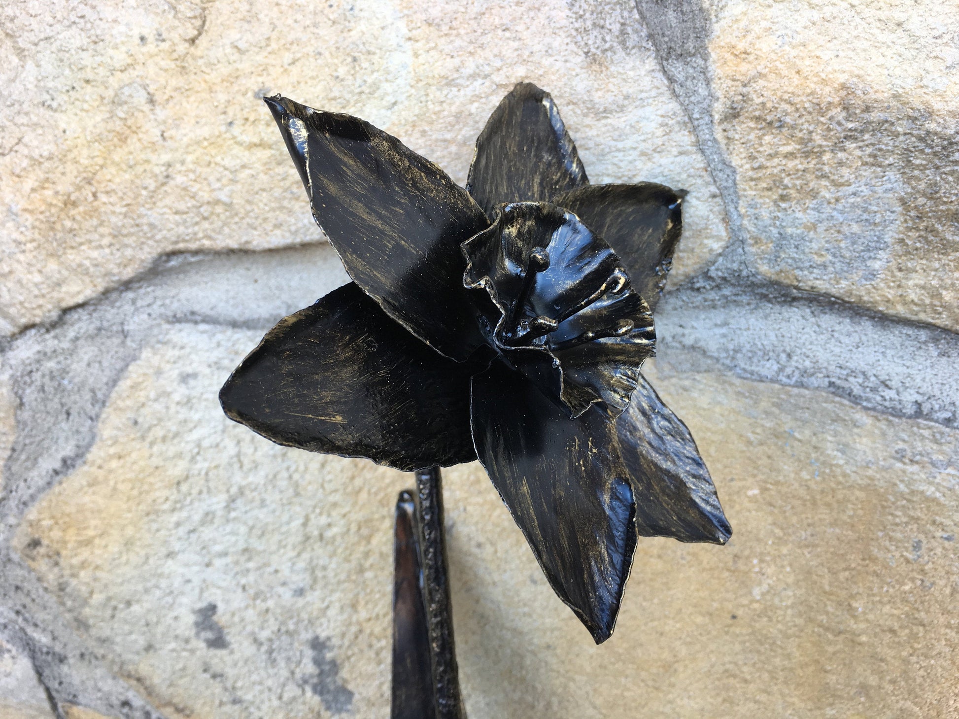 Hand forged narcissus, metal narcissus, iron narcissus, iron sculpture, iron anniversary gift for her, iron rose, metal rose, iron flower